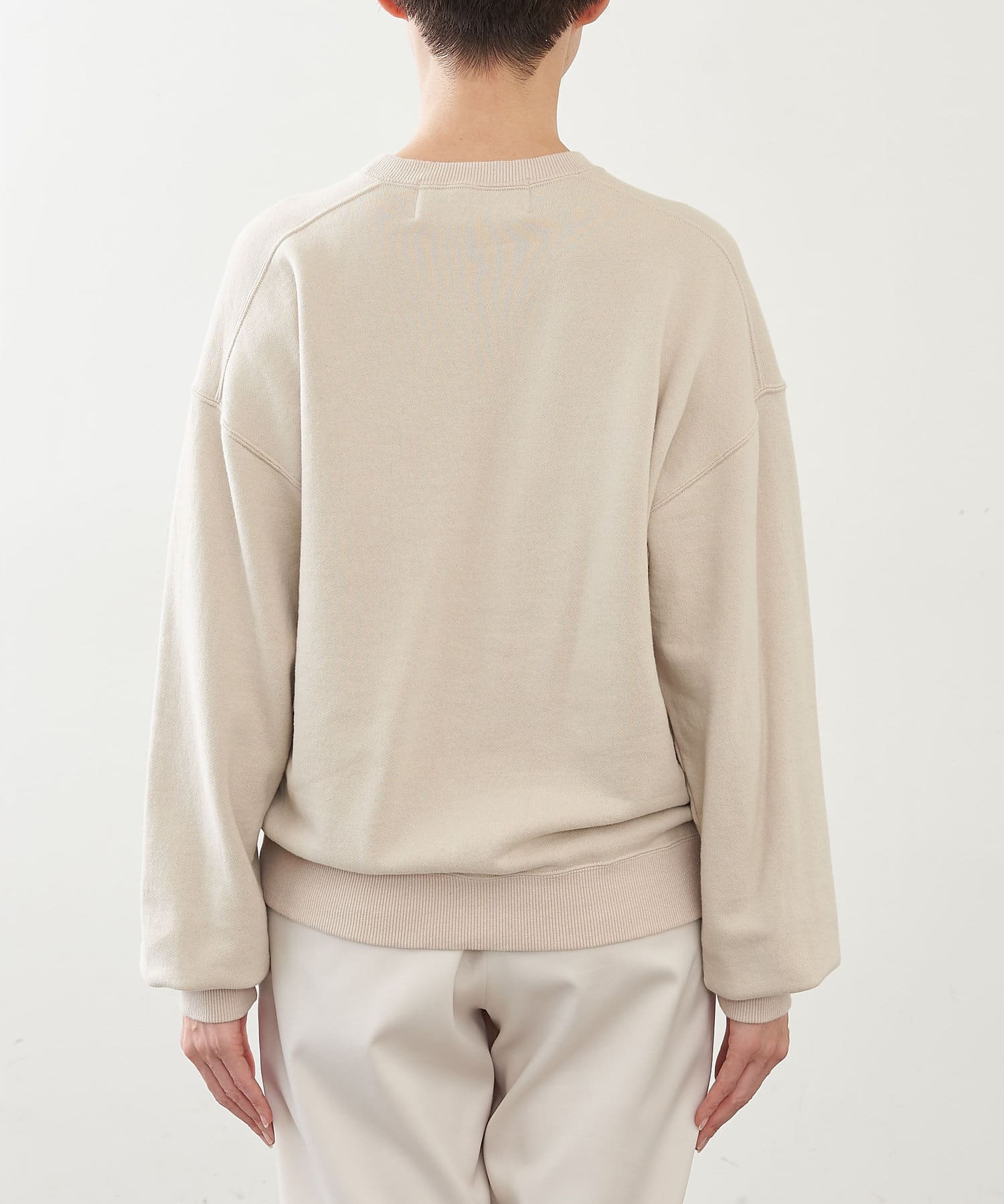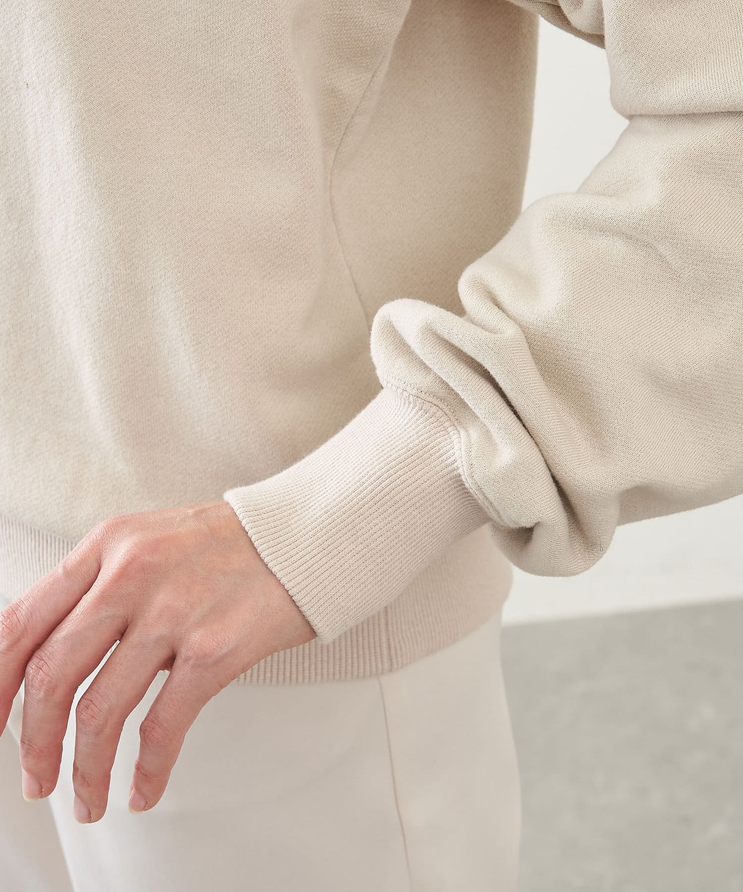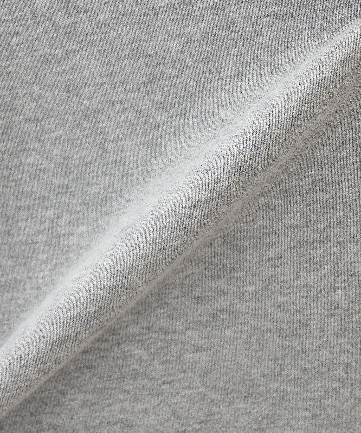 裏のループに無撚糸を這わせる事により、もちっととした肉感と極上の柔らかい風合いを出した、滑らかな肌触りの裏毛生地。