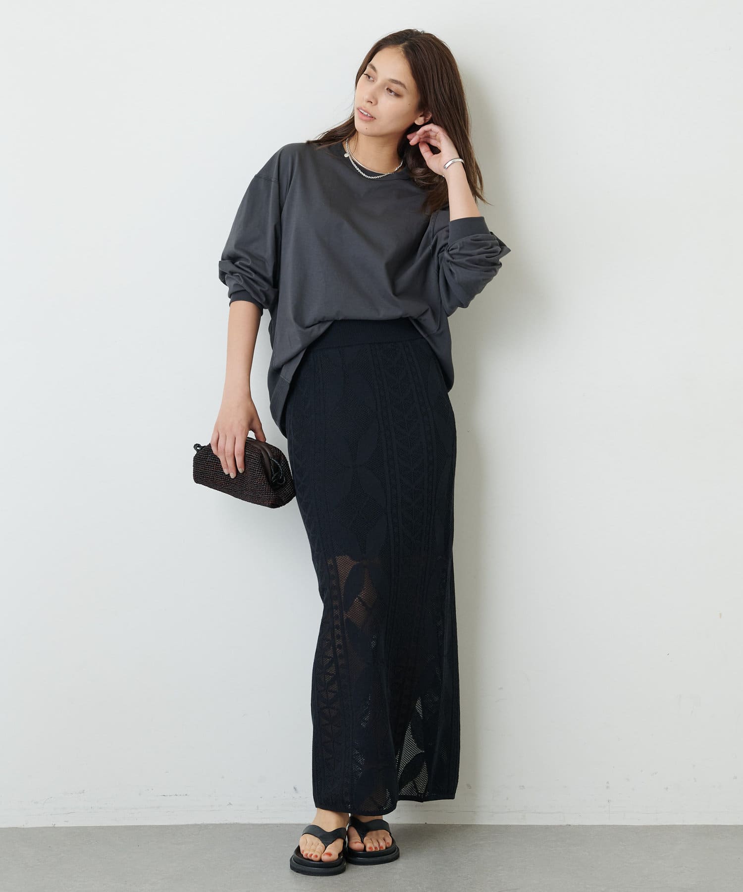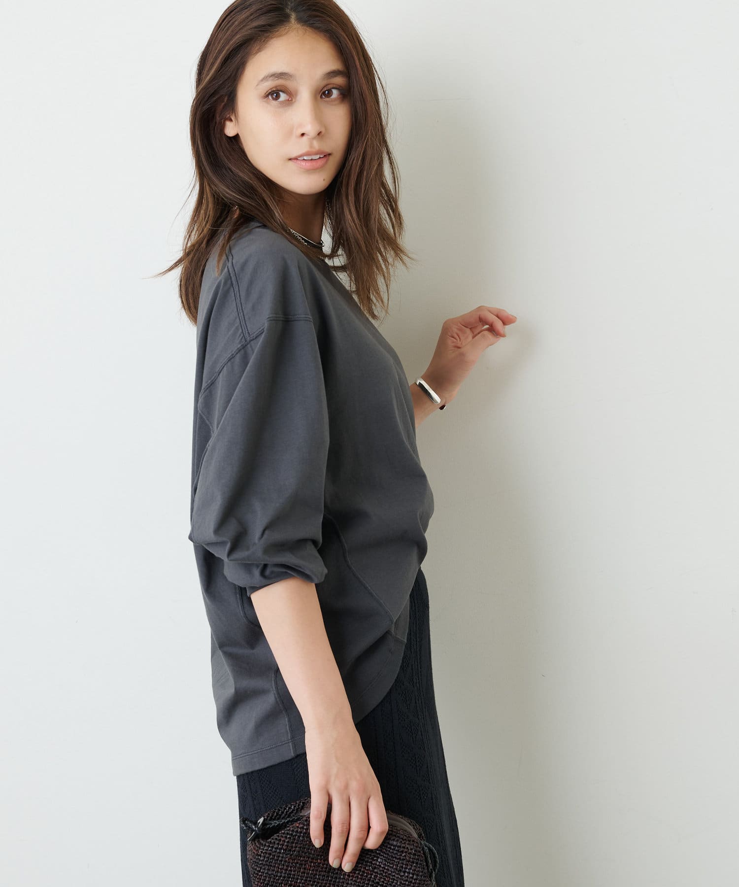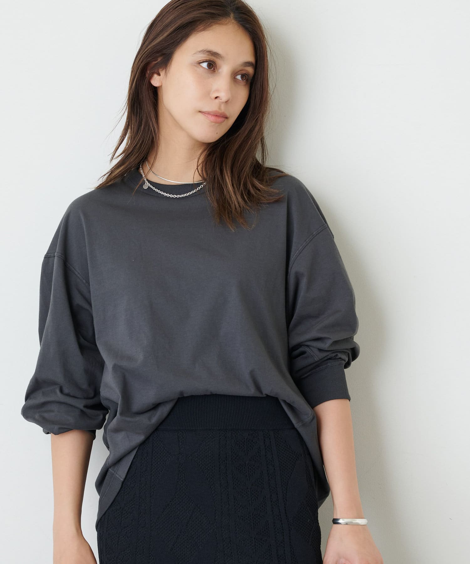 チャコールグレー:カジュアルシックに着こなせるチャコールグレー。