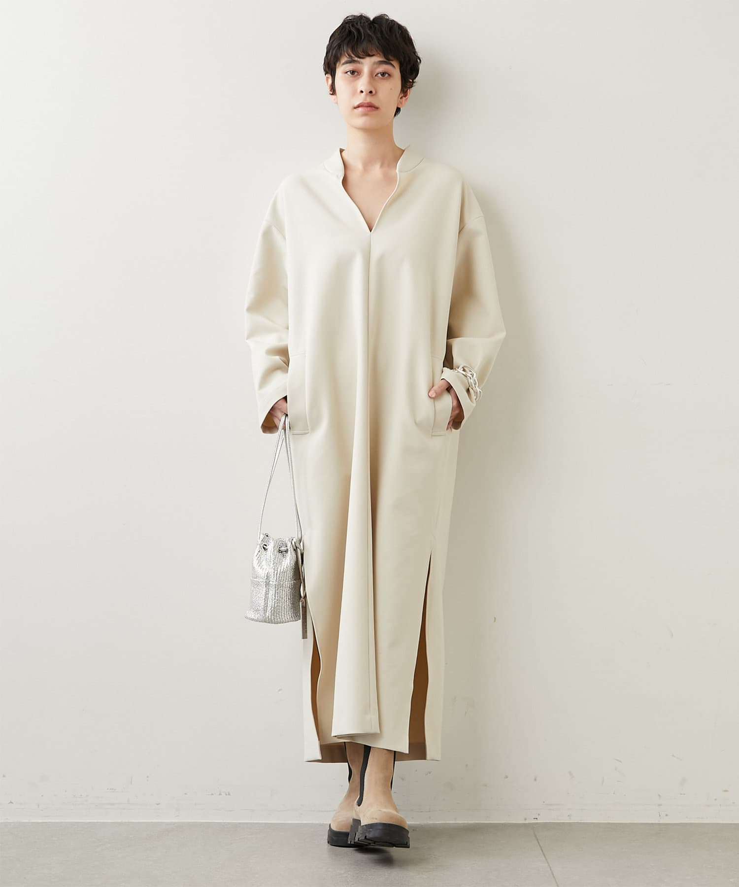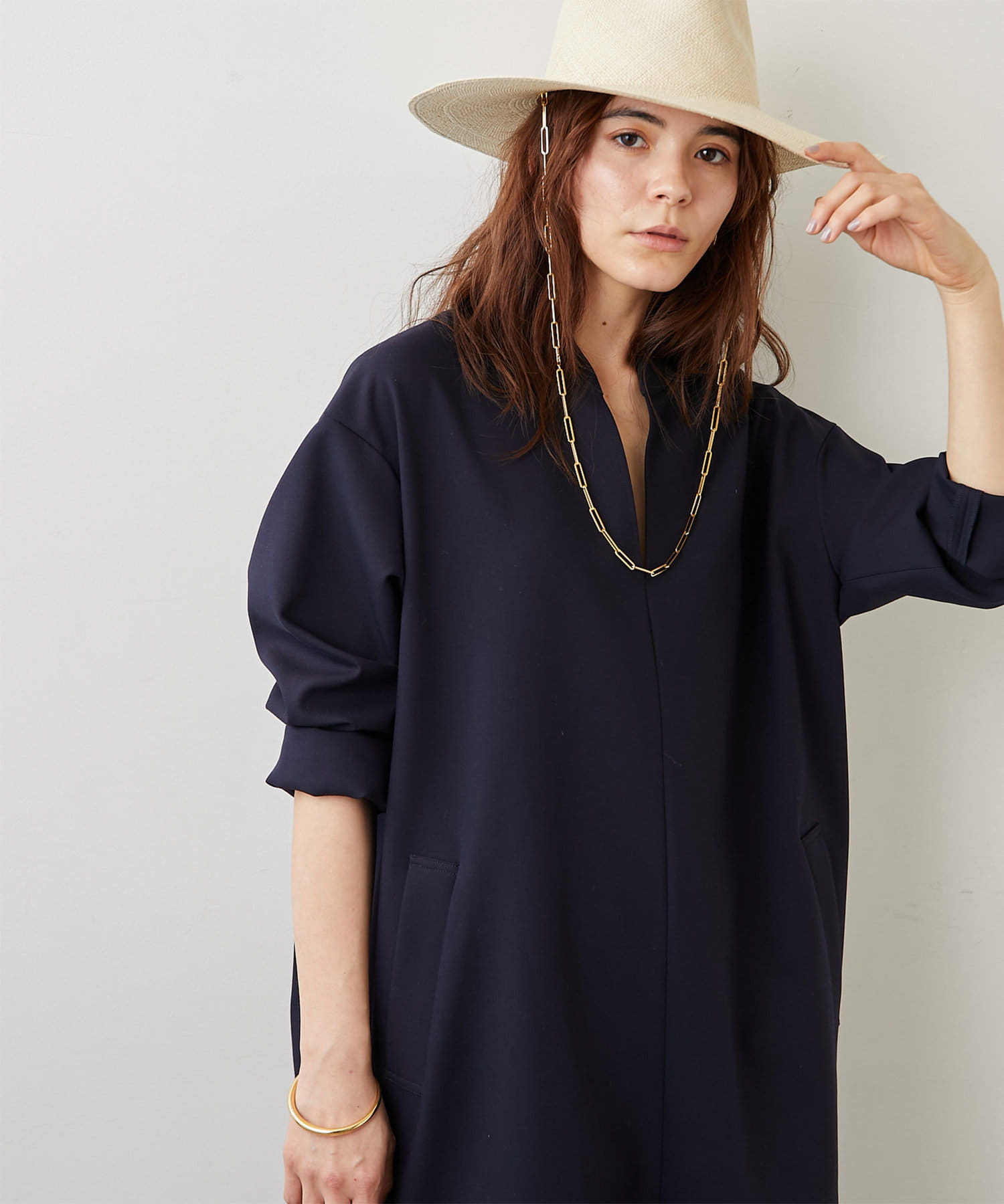 ■ダブルクロス素材を使用した、リラックス感のあるワンピース。