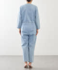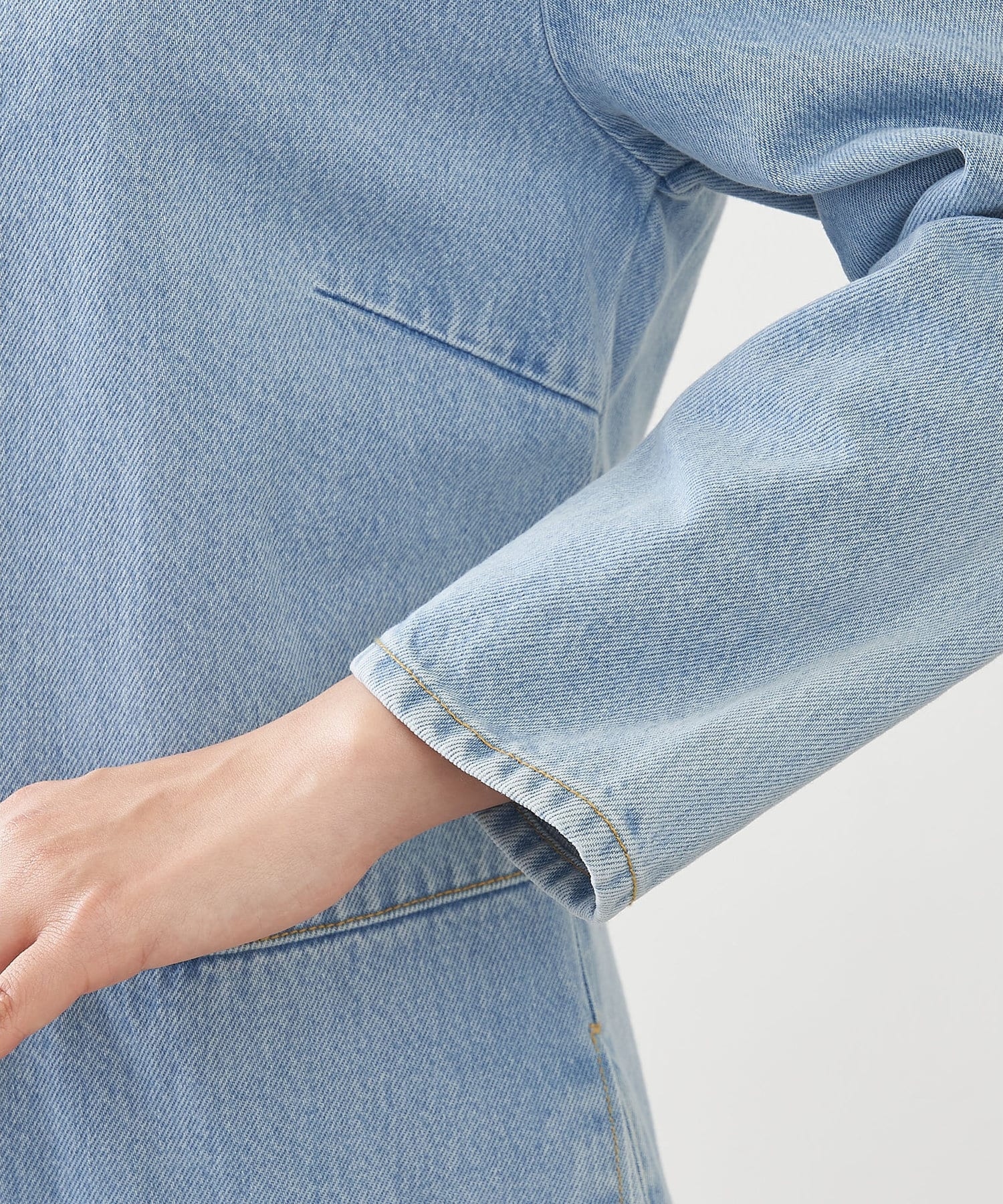 ■ライトカラーのデニム素材で清涼感たっぷりに仕上げた一着。