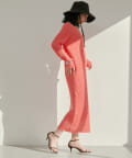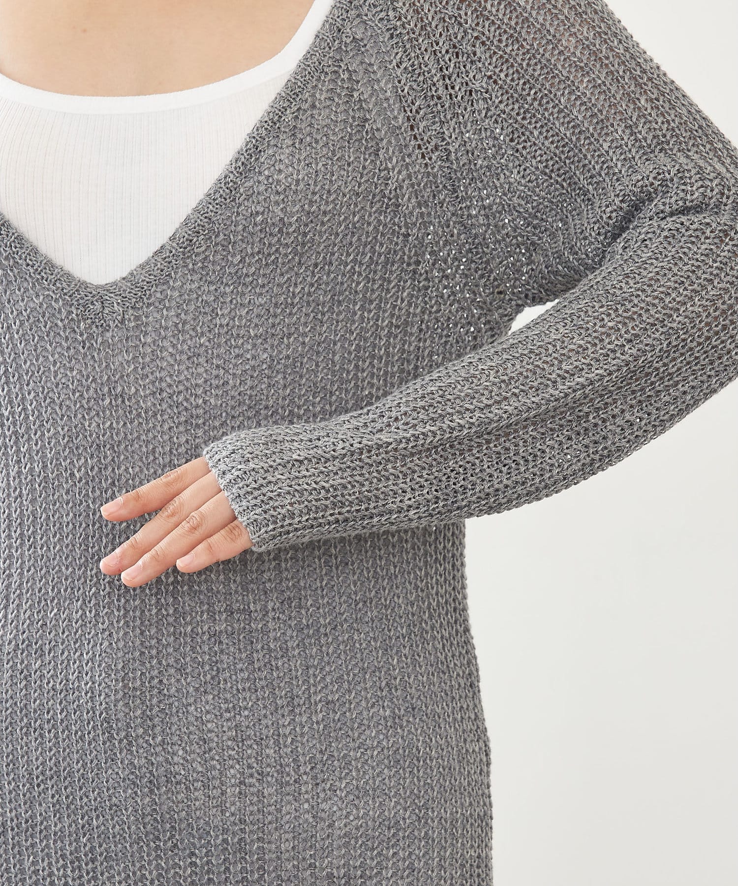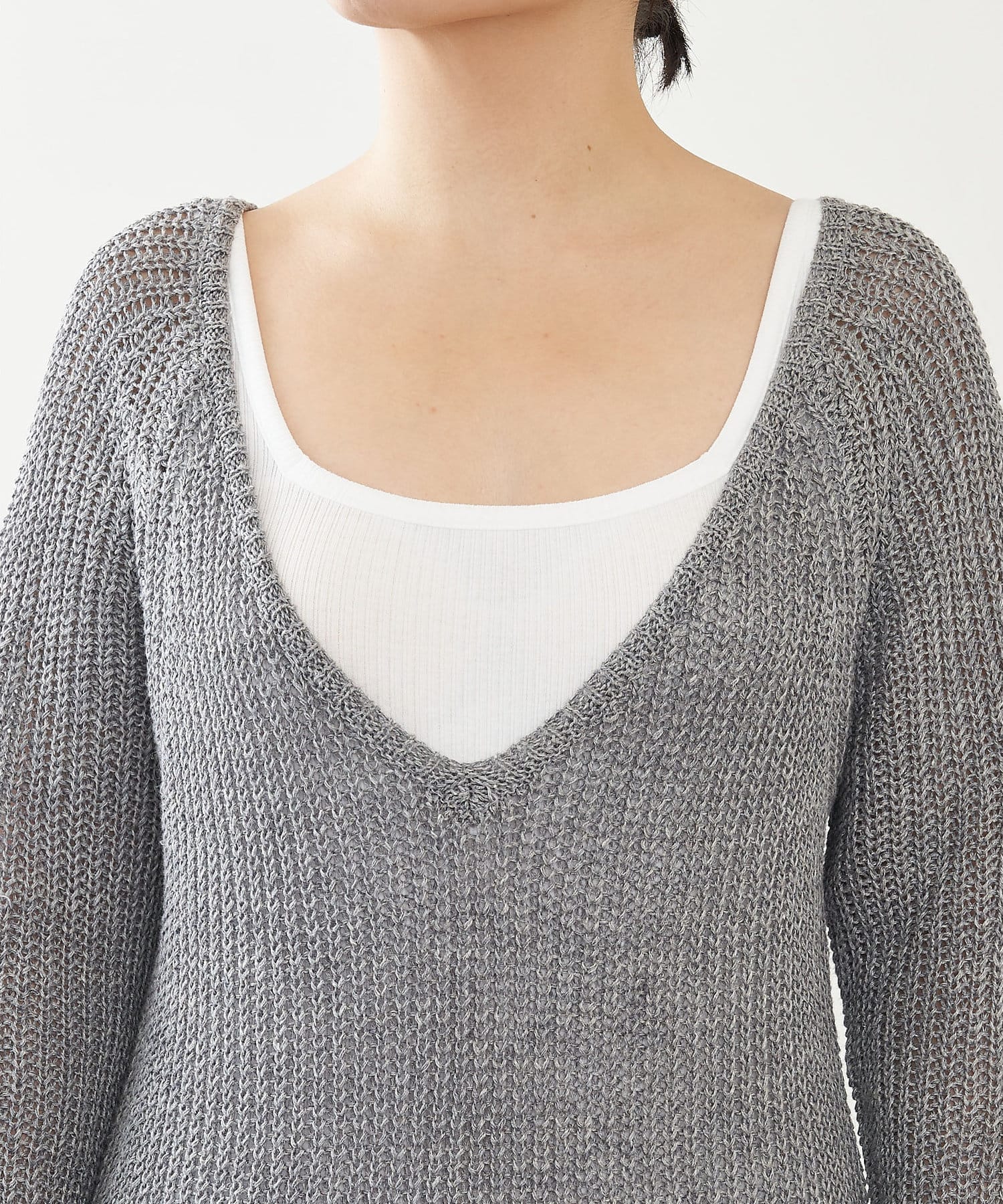 ■やや深めのVネックや、すとんと落ちるストレートラインが女性らしい印象。