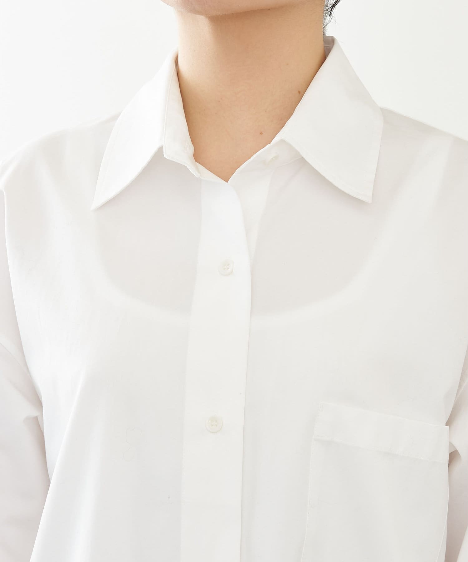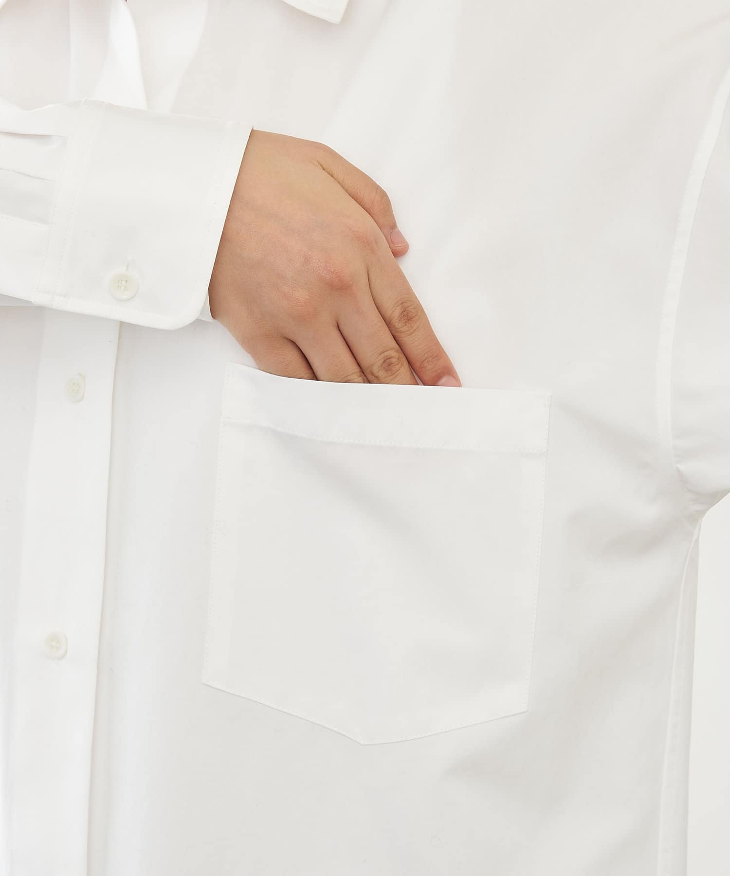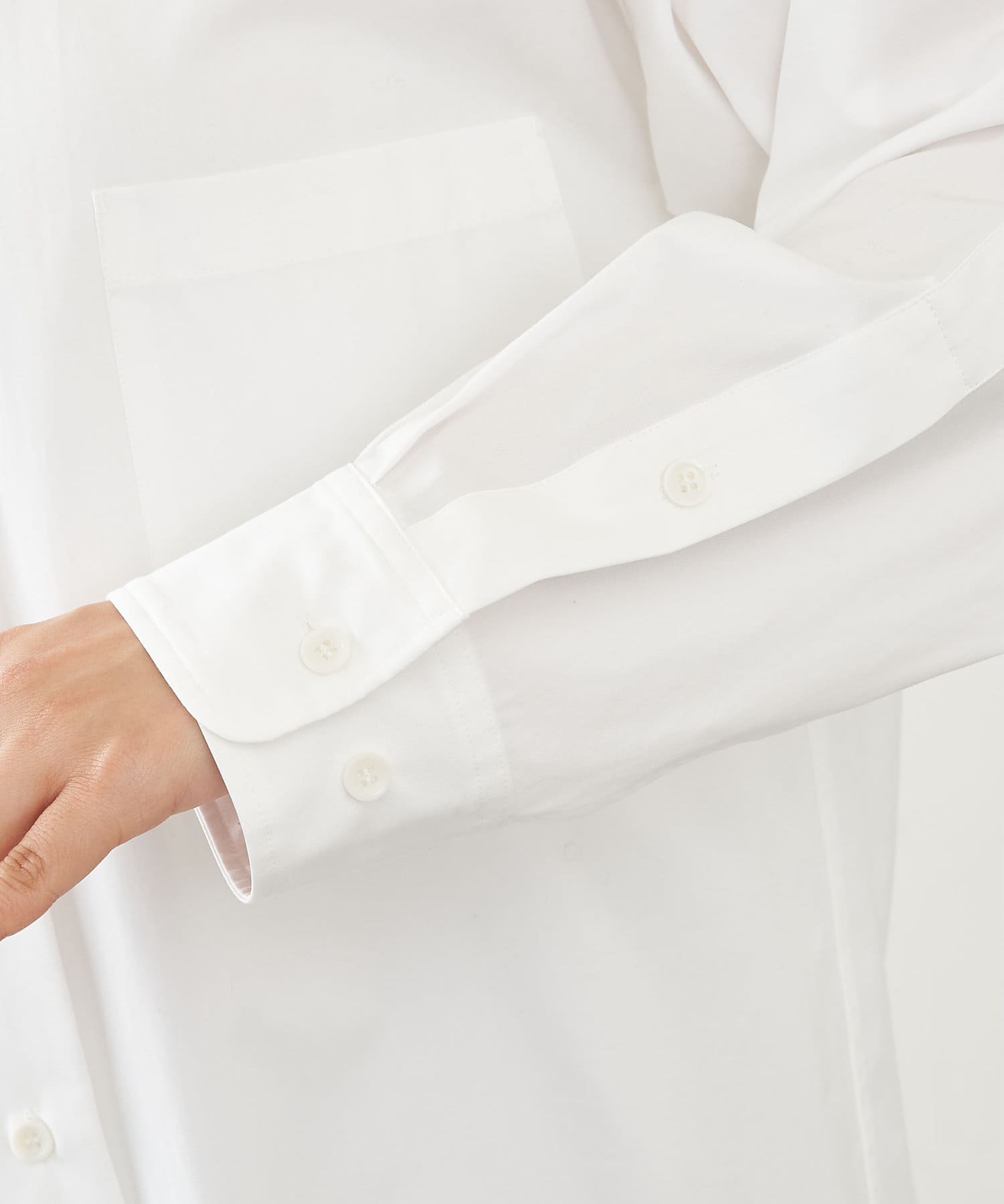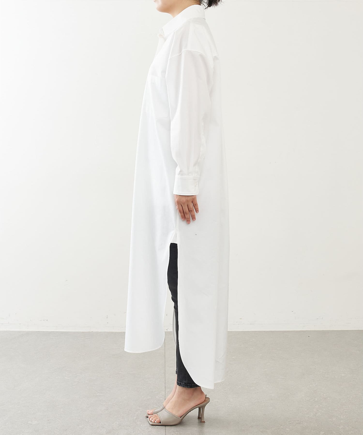 ■ハリとシャリ感のあるコットンポプリンを使用したロングシャツワンピース。