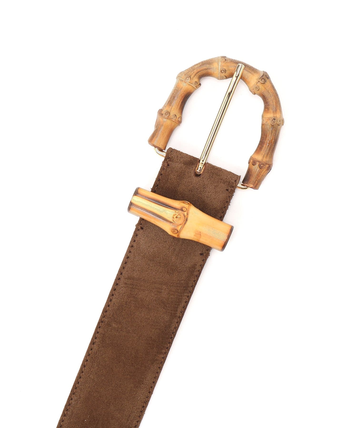 ■バンブー素材のバックルがアクセントになったレザーベルト。