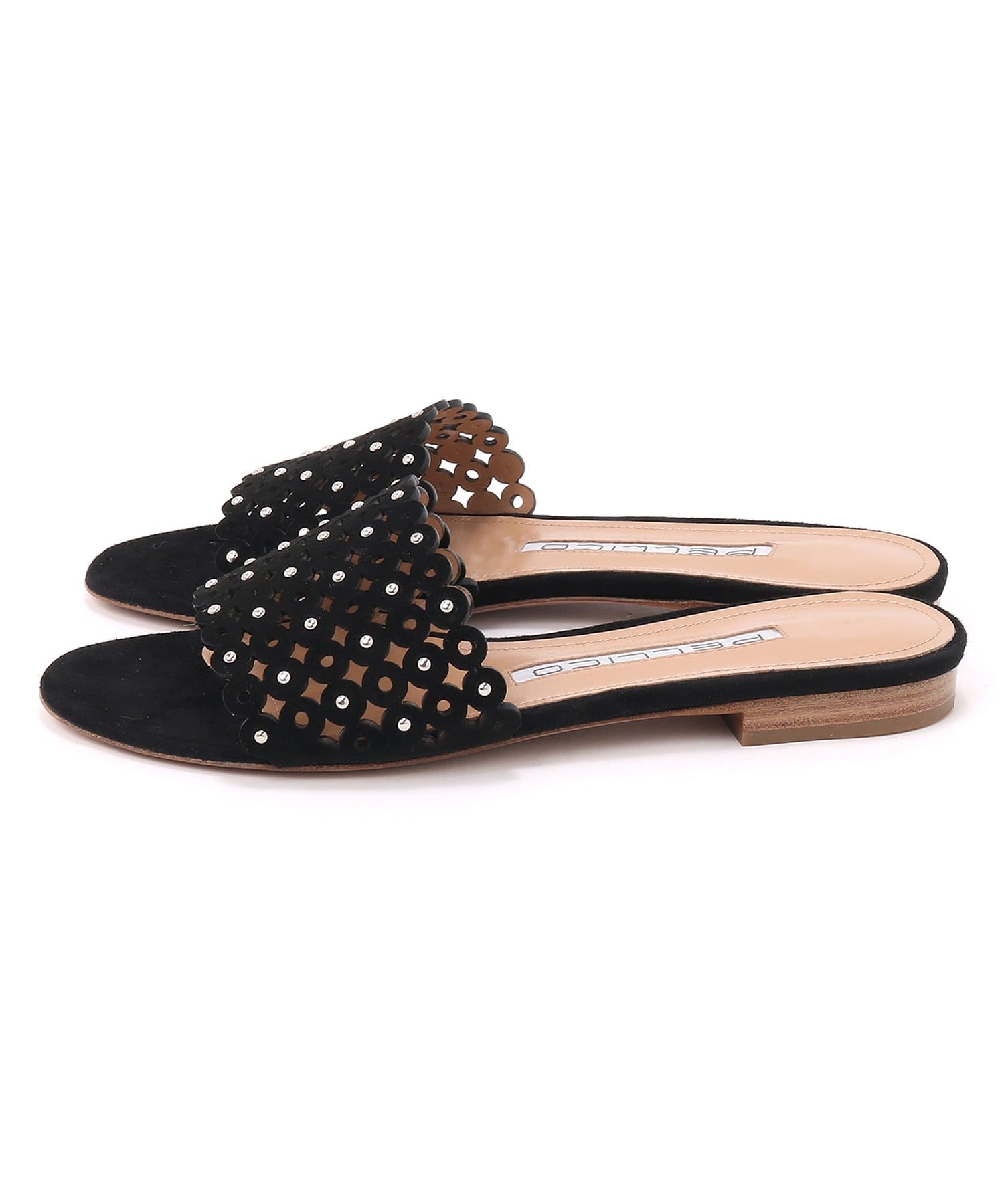 ■繊細なカットワークデザインが上品なフラットサンダル。