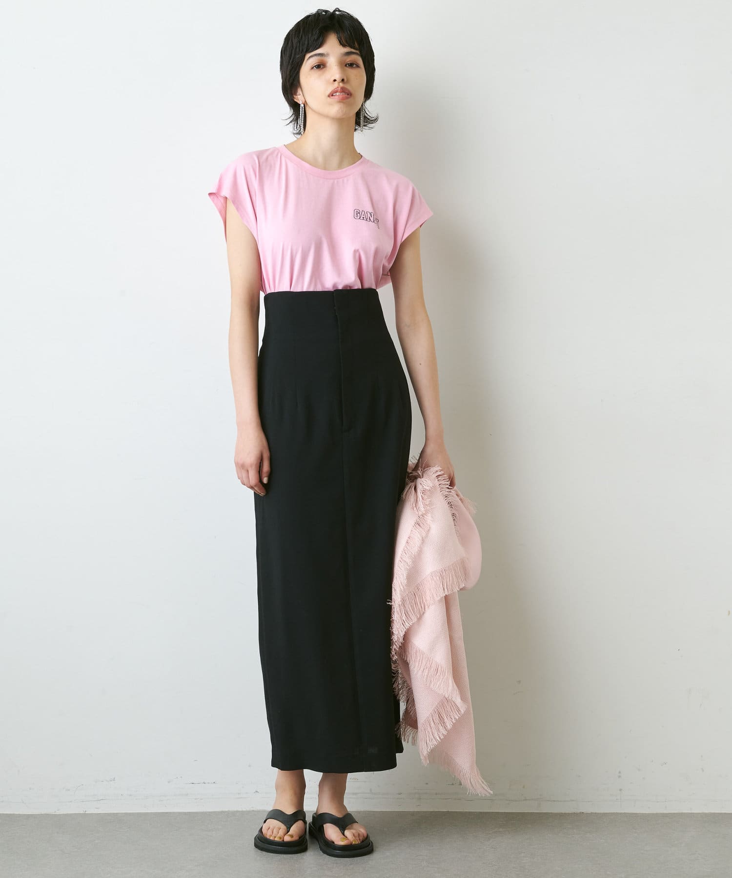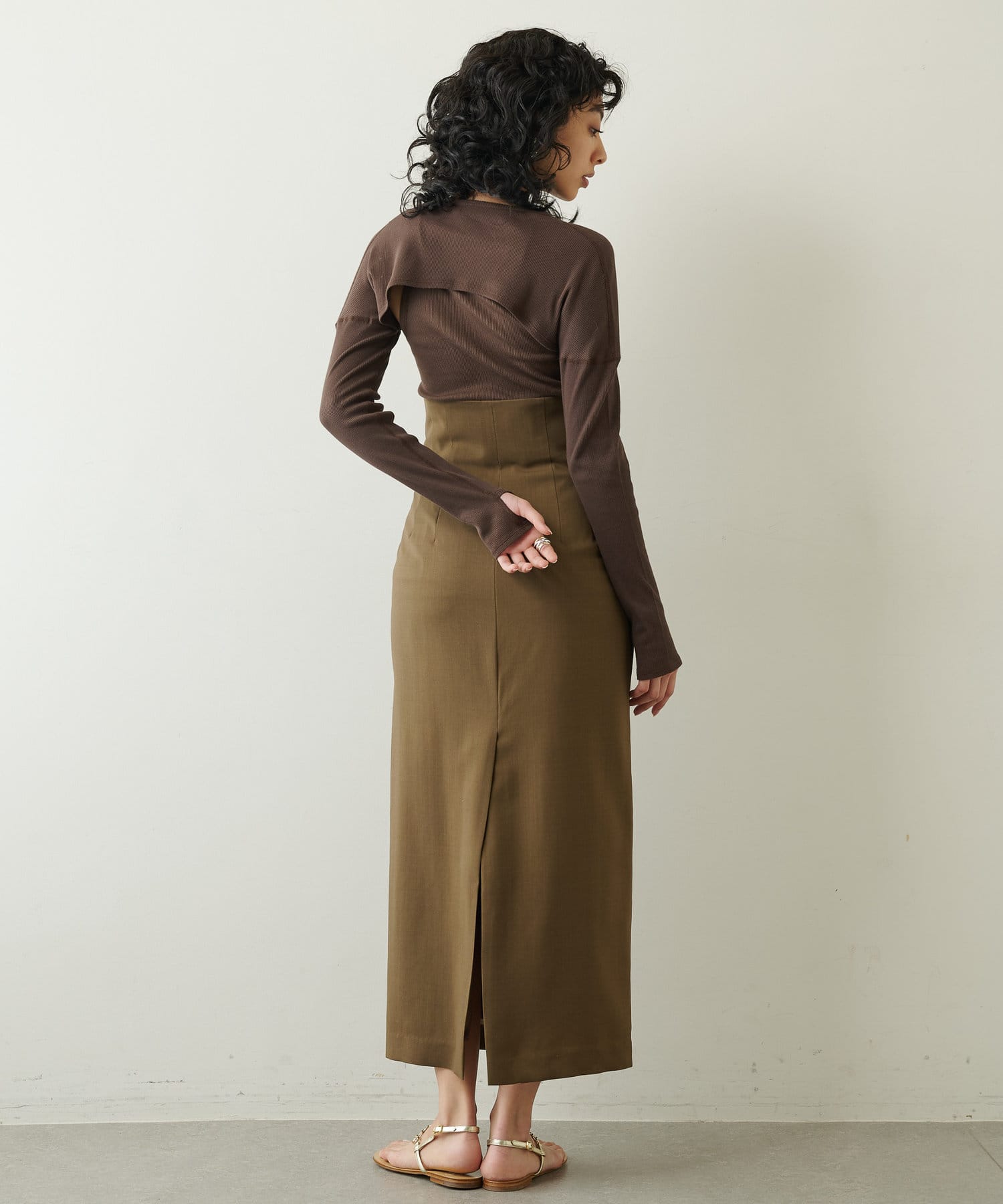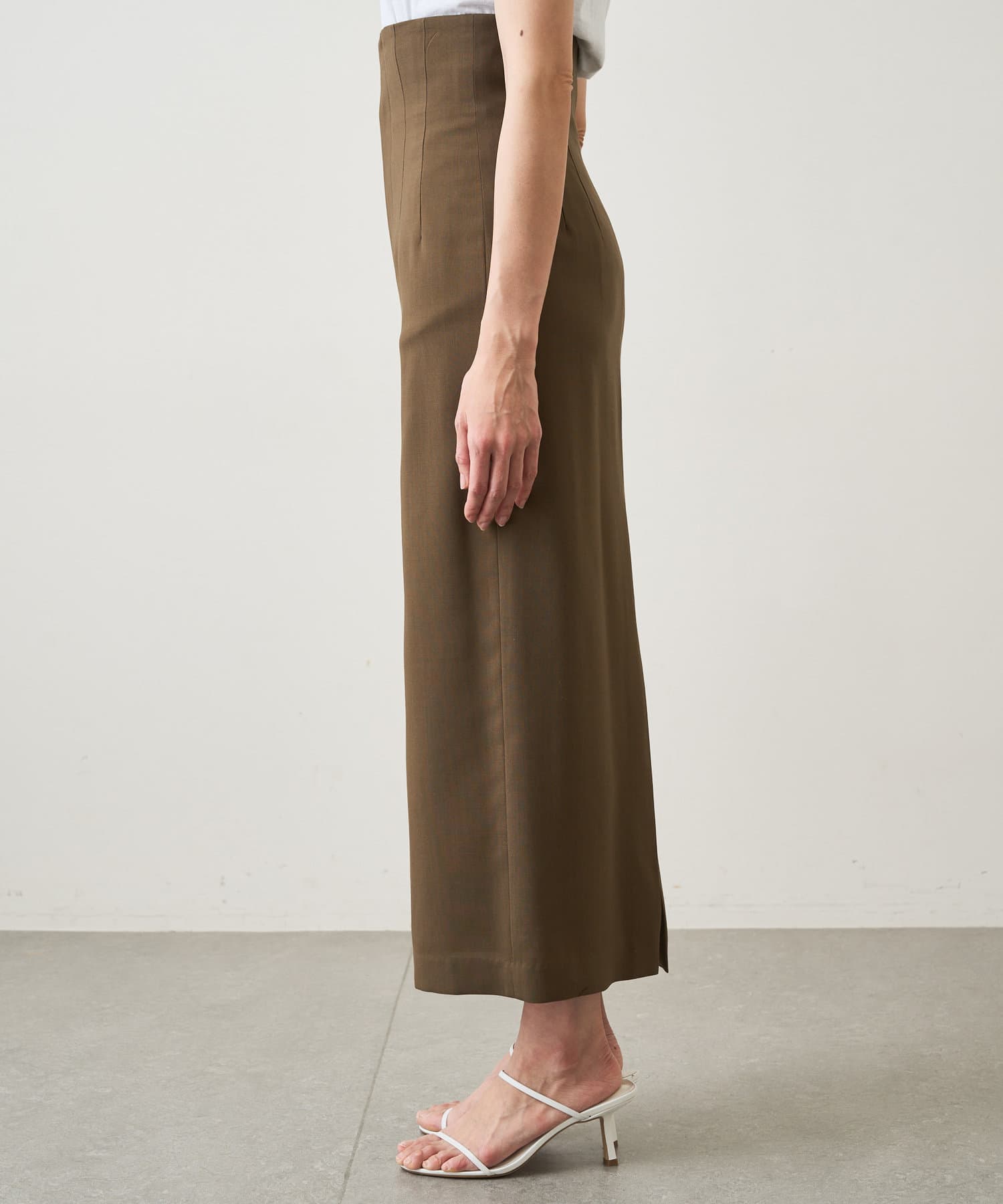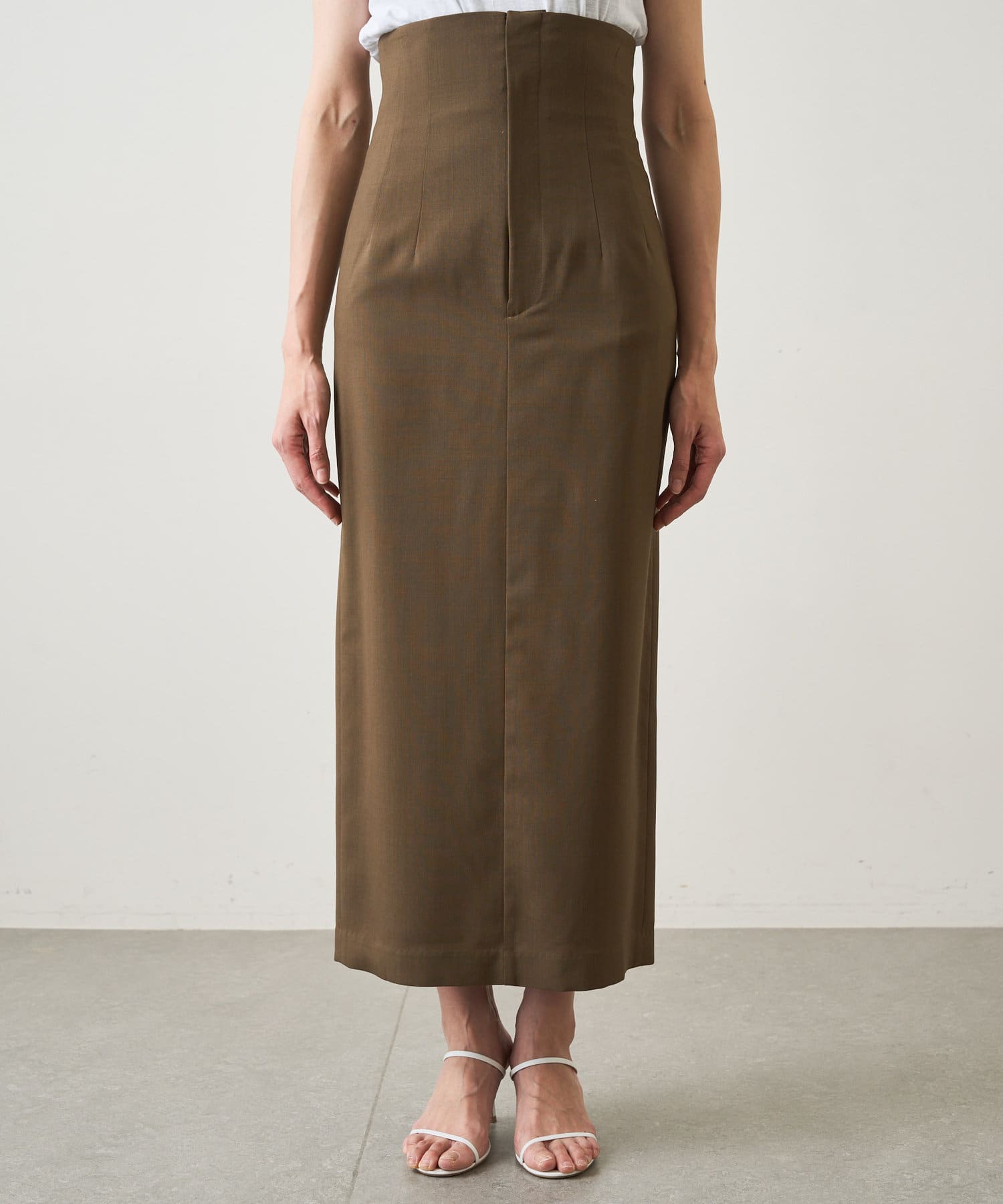■高めのウエスト位置がアクセントになった、スタイリッシュなロングスカート。