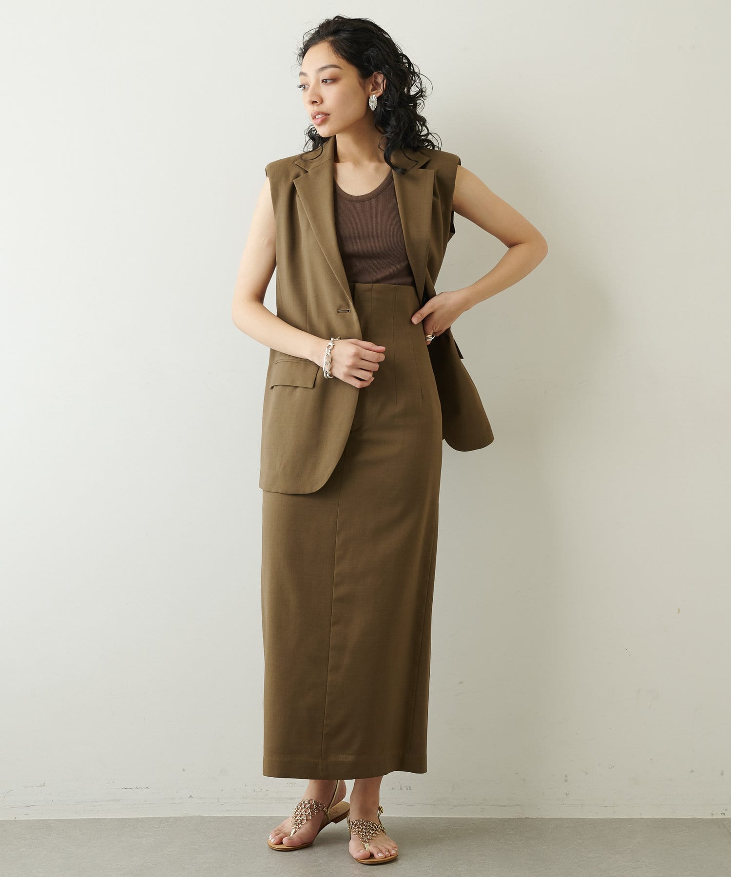 ■同素材のウールトロピカルジレ(ブランド品番:WGZ1021307A0001)とセットで着こなすのもおすすめ。