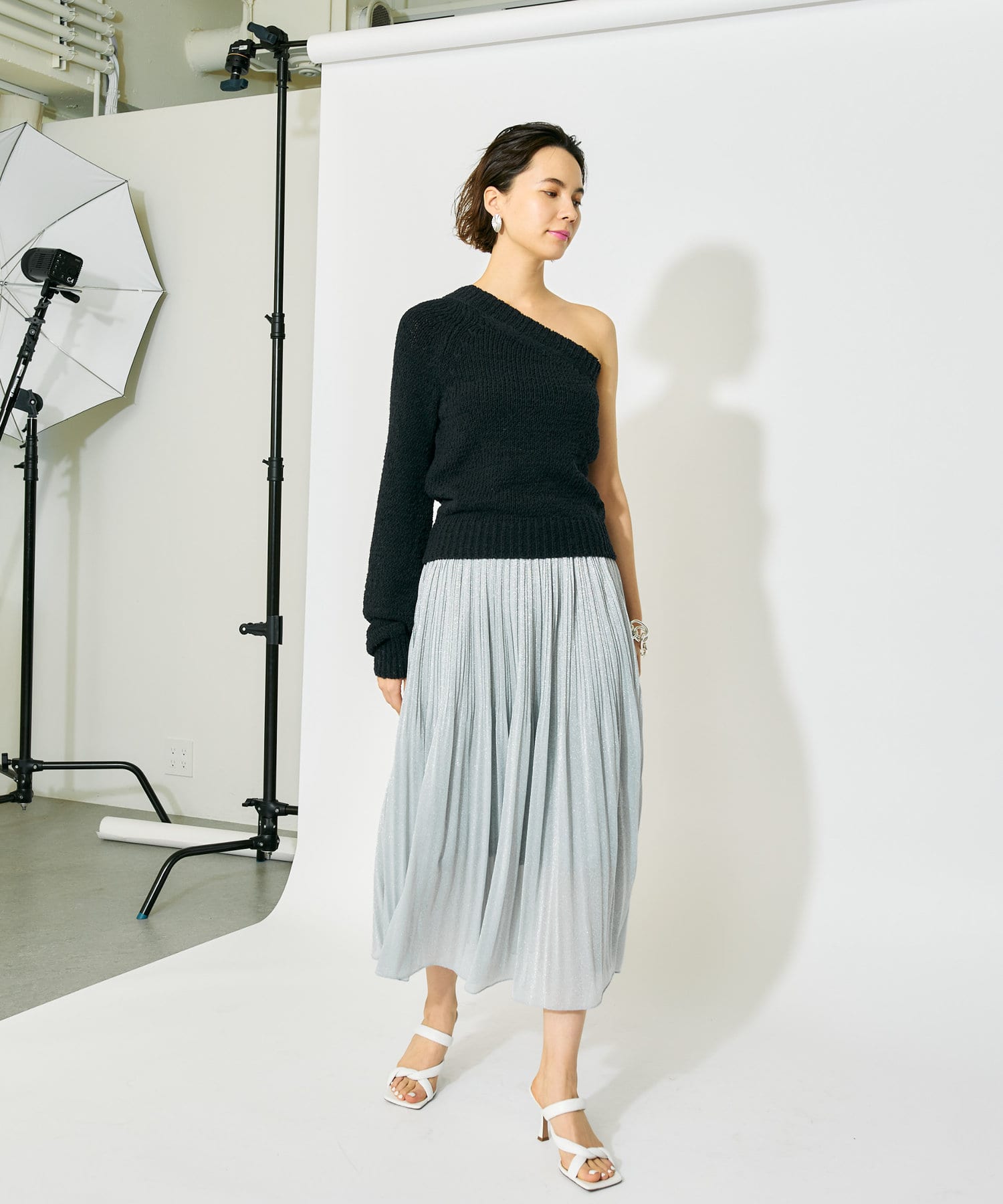 ■キラキラとしたラメの輝きが存在感を放つプリーツスカート。