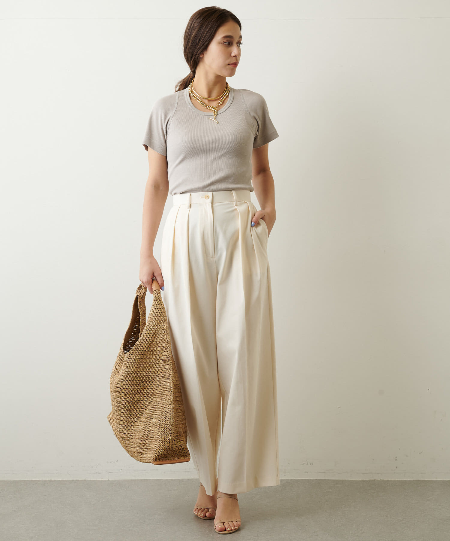 ■腰回りはすっきりとさせつつ、たっぷりとタックを入れ裾にかけてボリュームを持たせたこだわりのシルエット。