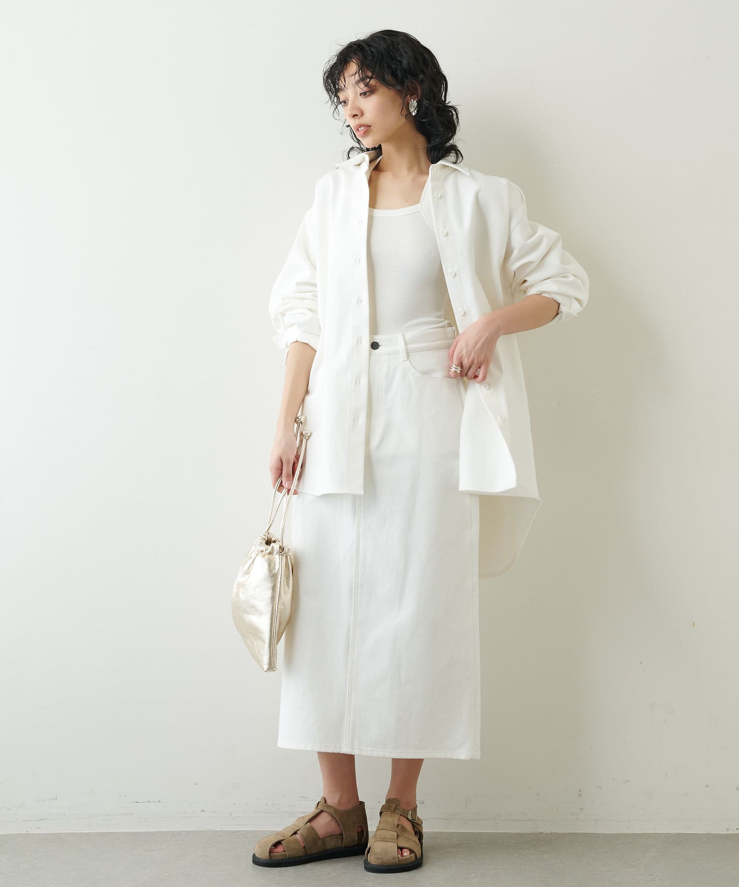 ■クリーンなホワイトカラーが洗練された印象のデニムシャツ。