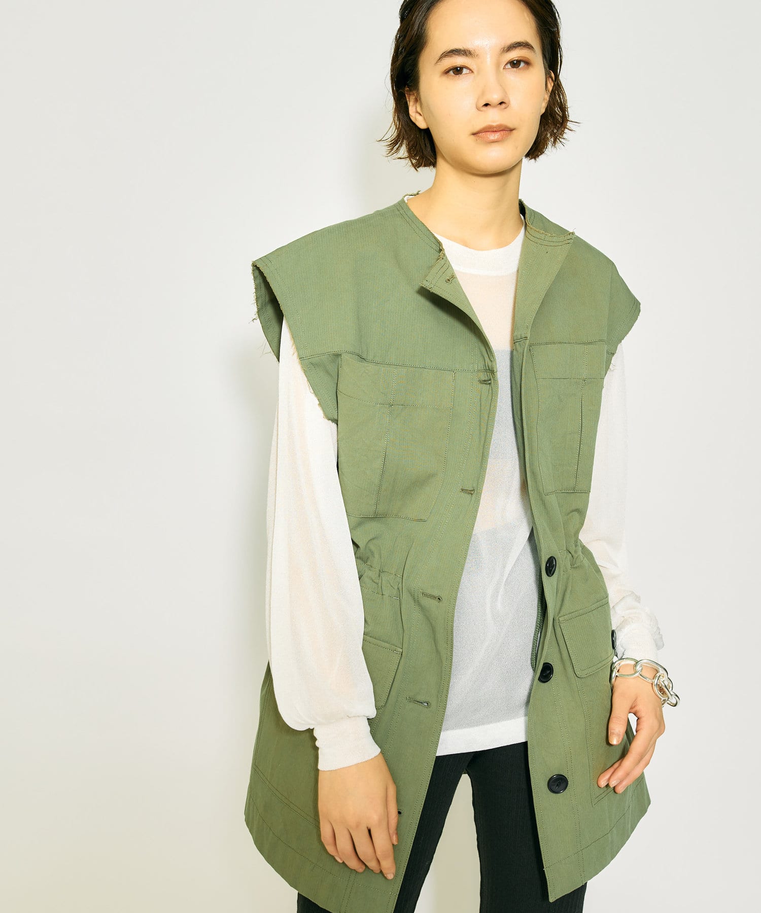 ■キャミソールやブラトップ、タンクトップからTシャツまで、レイヤードするアイテム次第で雰囲気の変化を楽しめるトレンドライクな一着。