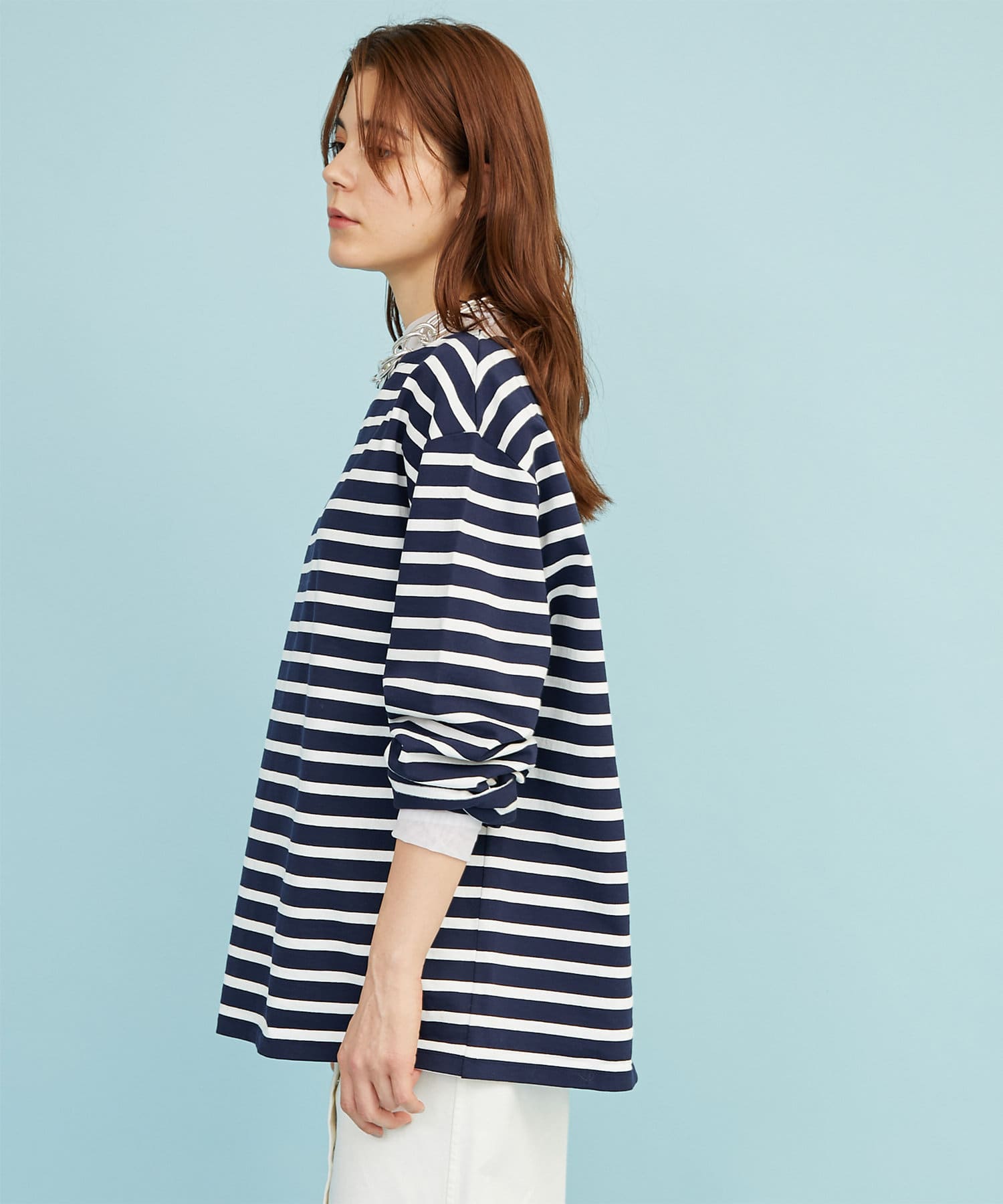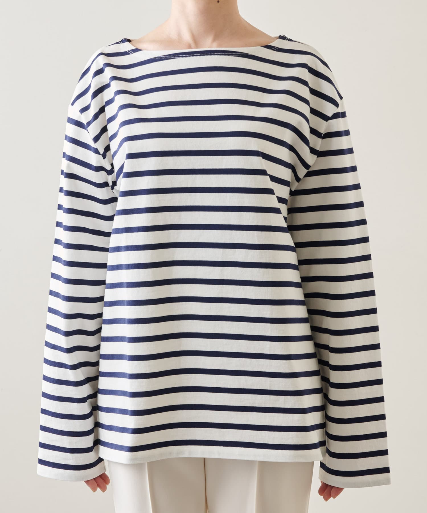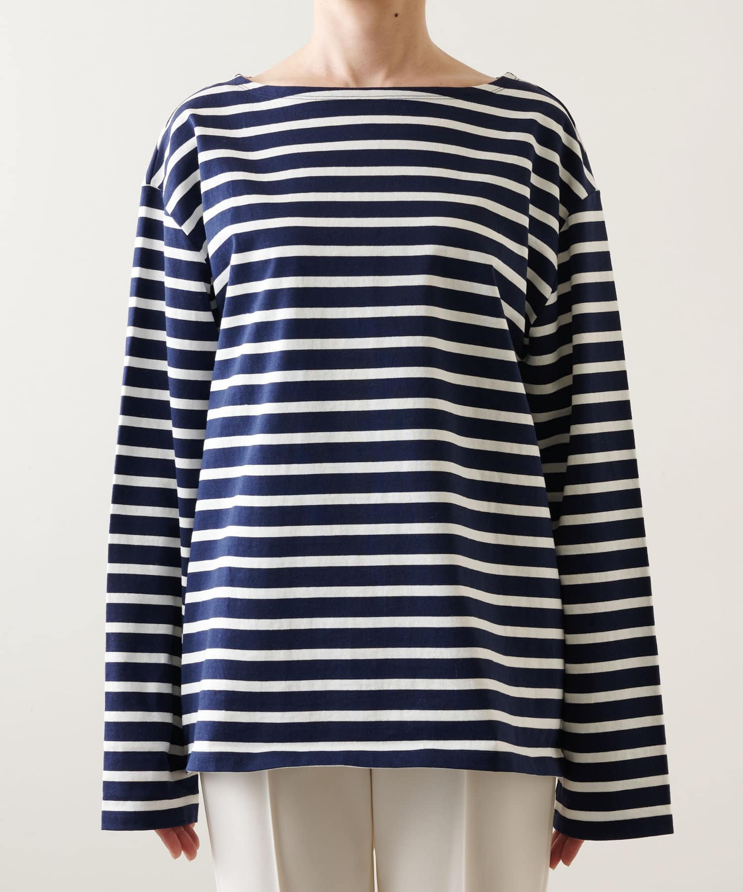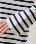 ■定番的なアイテムながら、ワイドスリーブで旬顔に仕上げたバスクシャツ。