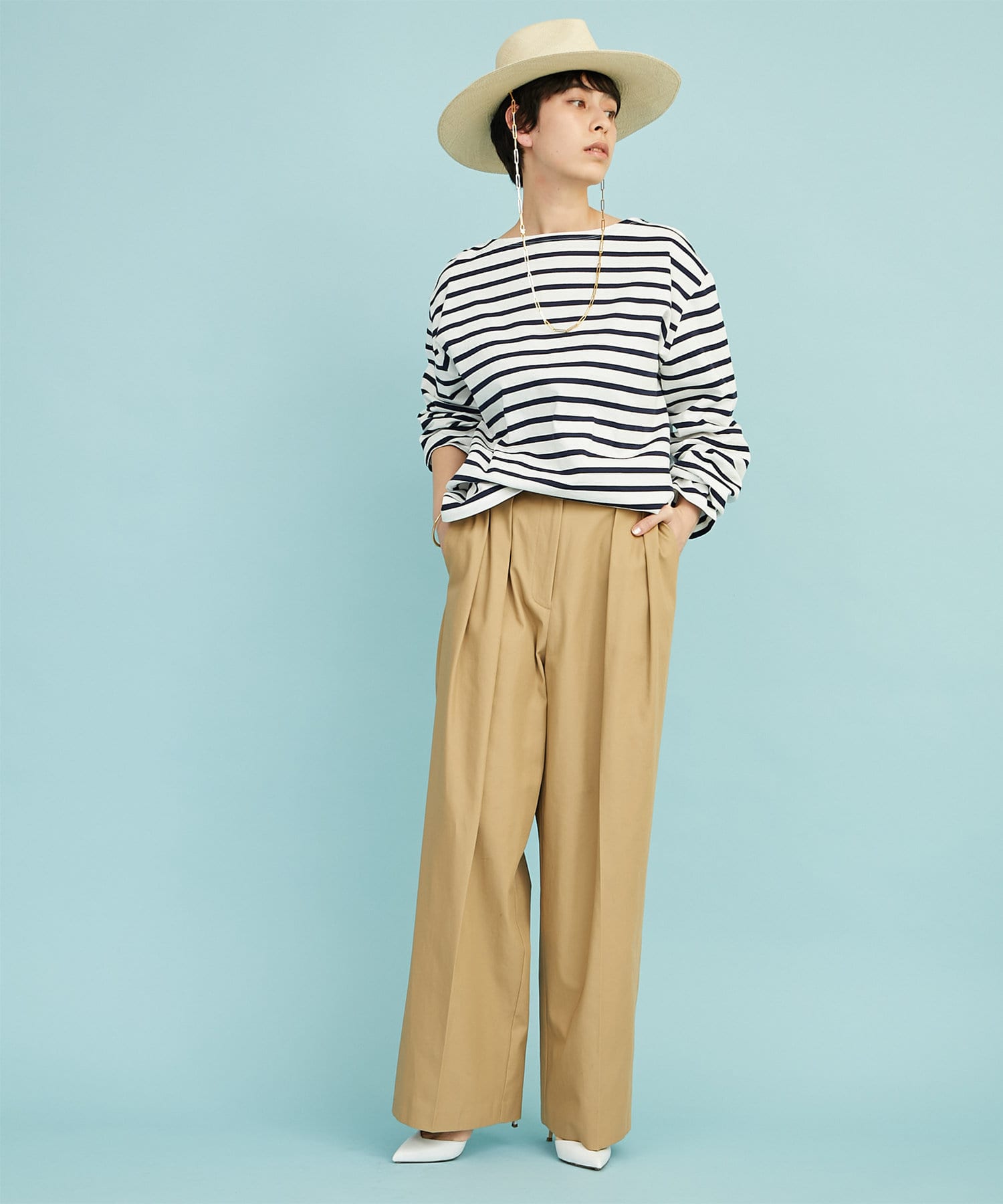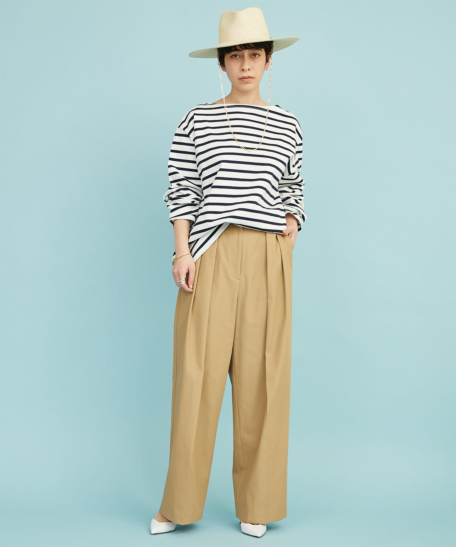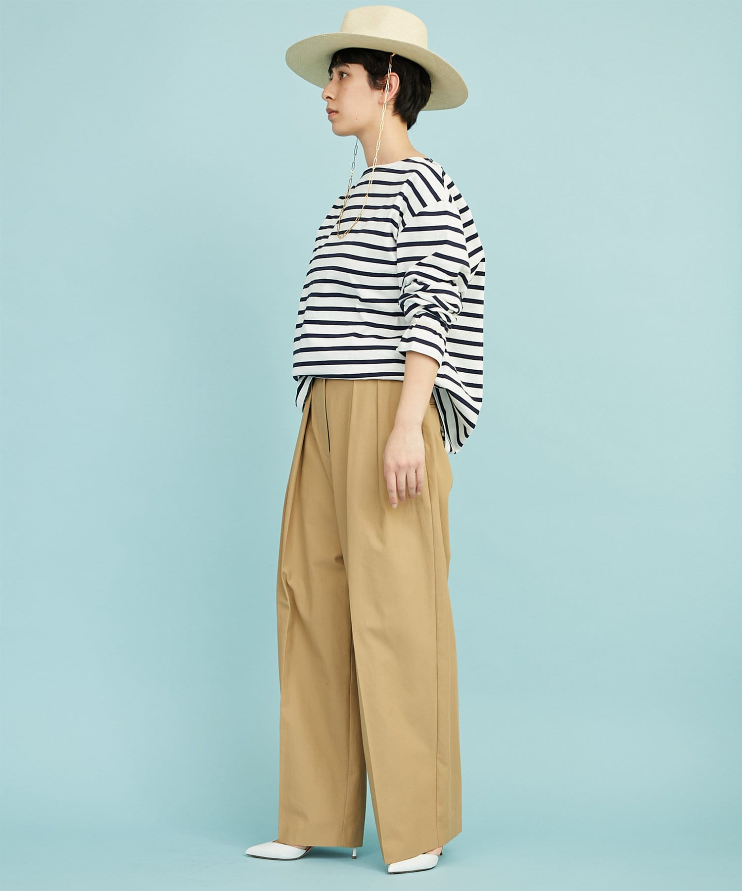 ■定番的なアイテムながら、ワイドスリーブで旬顔に仕上げたバスクシャツ。