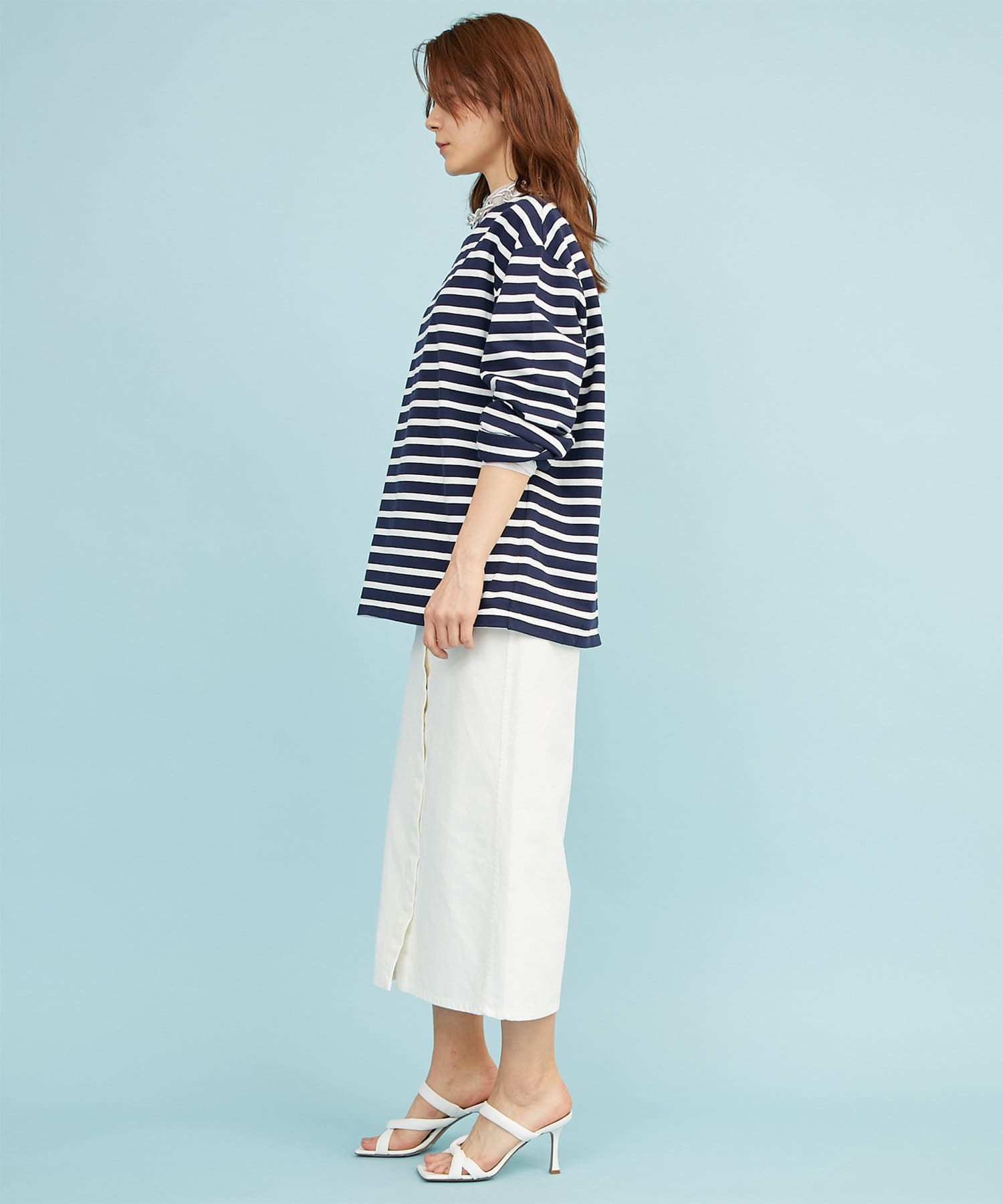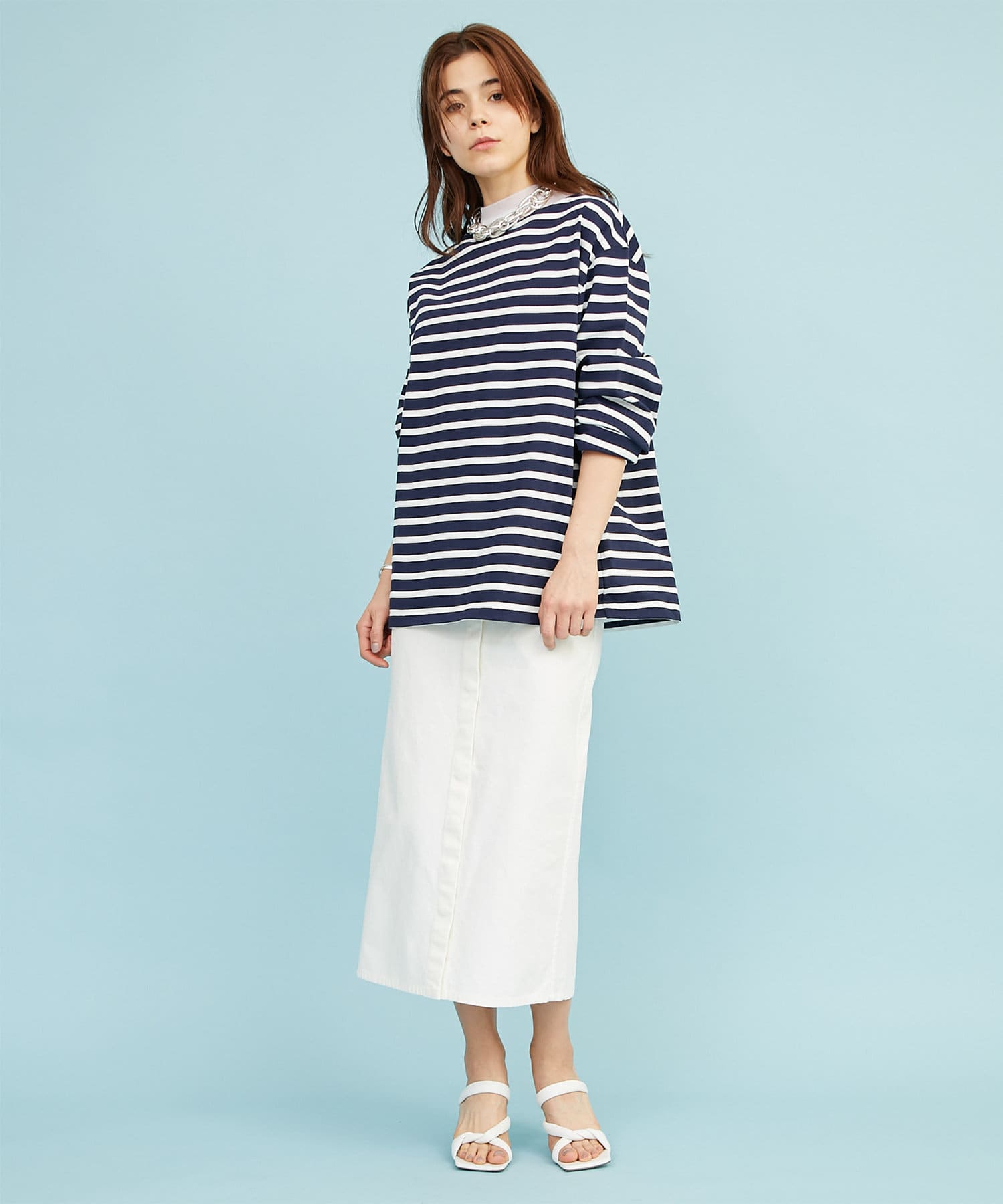 ホワイト:大人のマリンスタイルが楽しめる、ホワイト×ネイビーボーダー。
