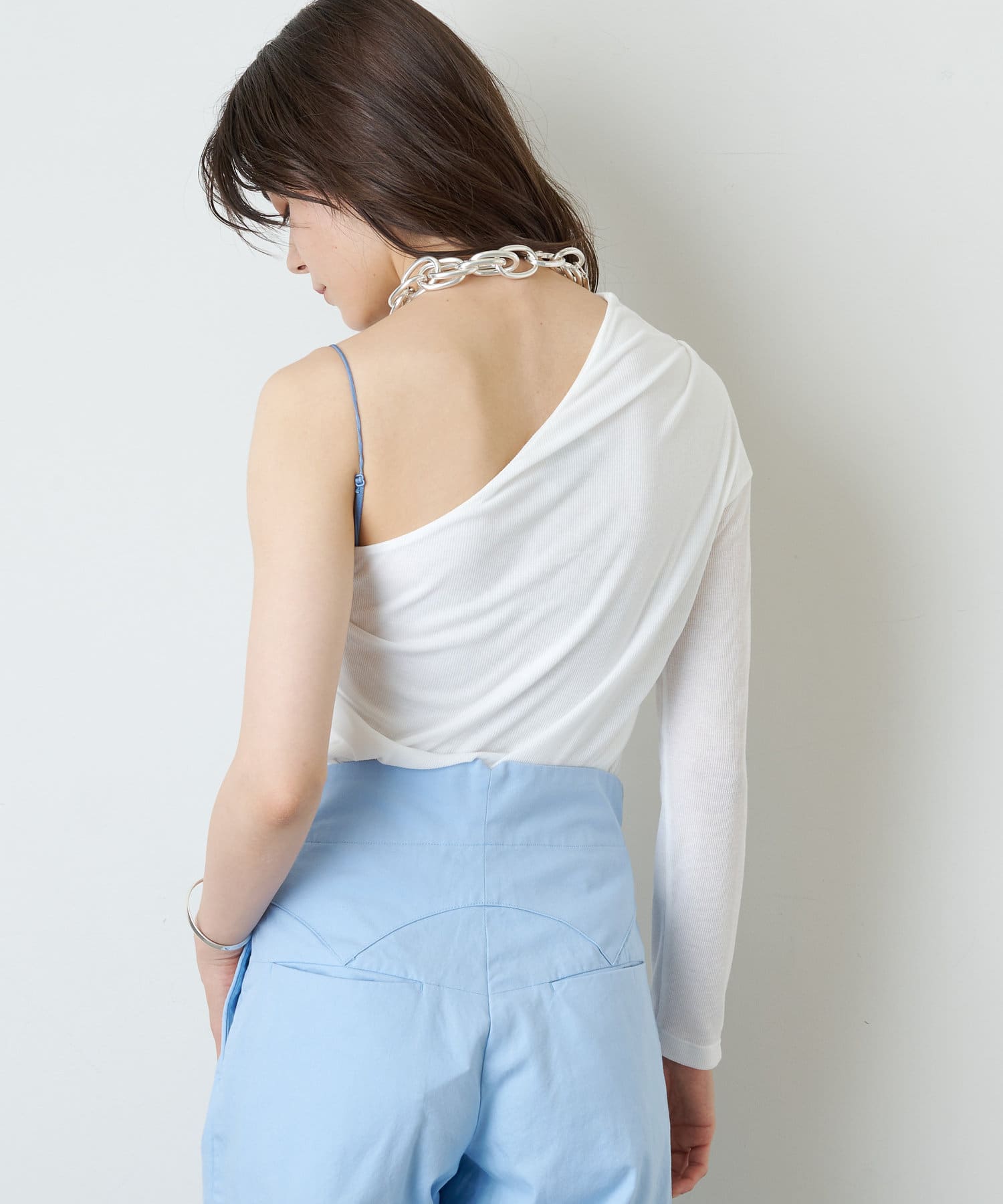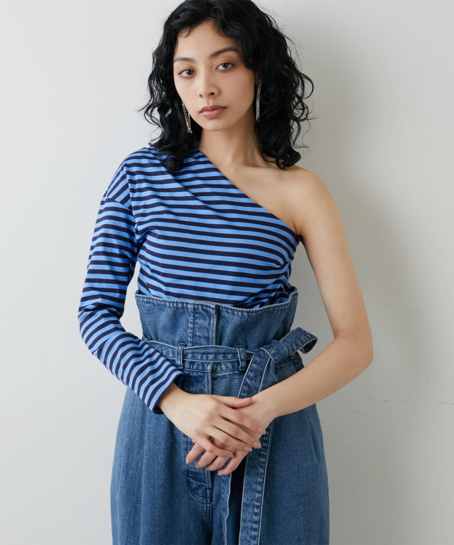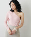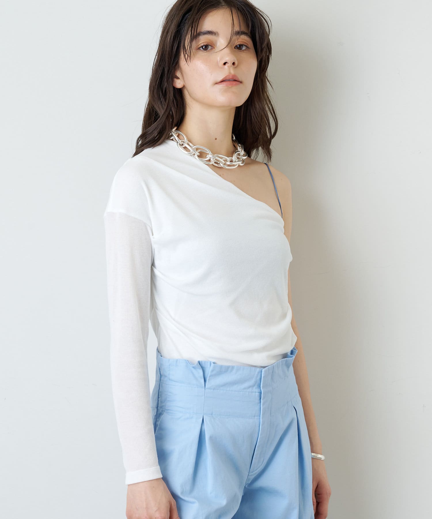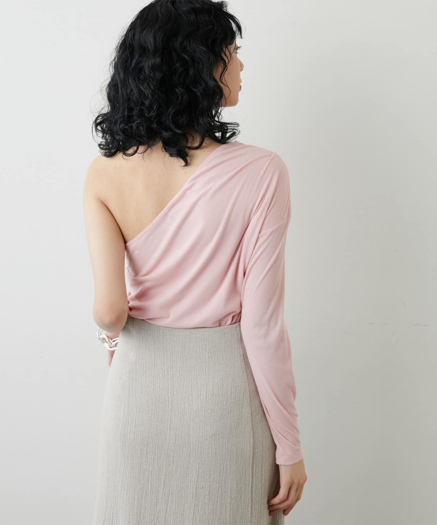 ■大胆に開いたネックラインがデコルテを美しく演出するワンショルダーカットソー。