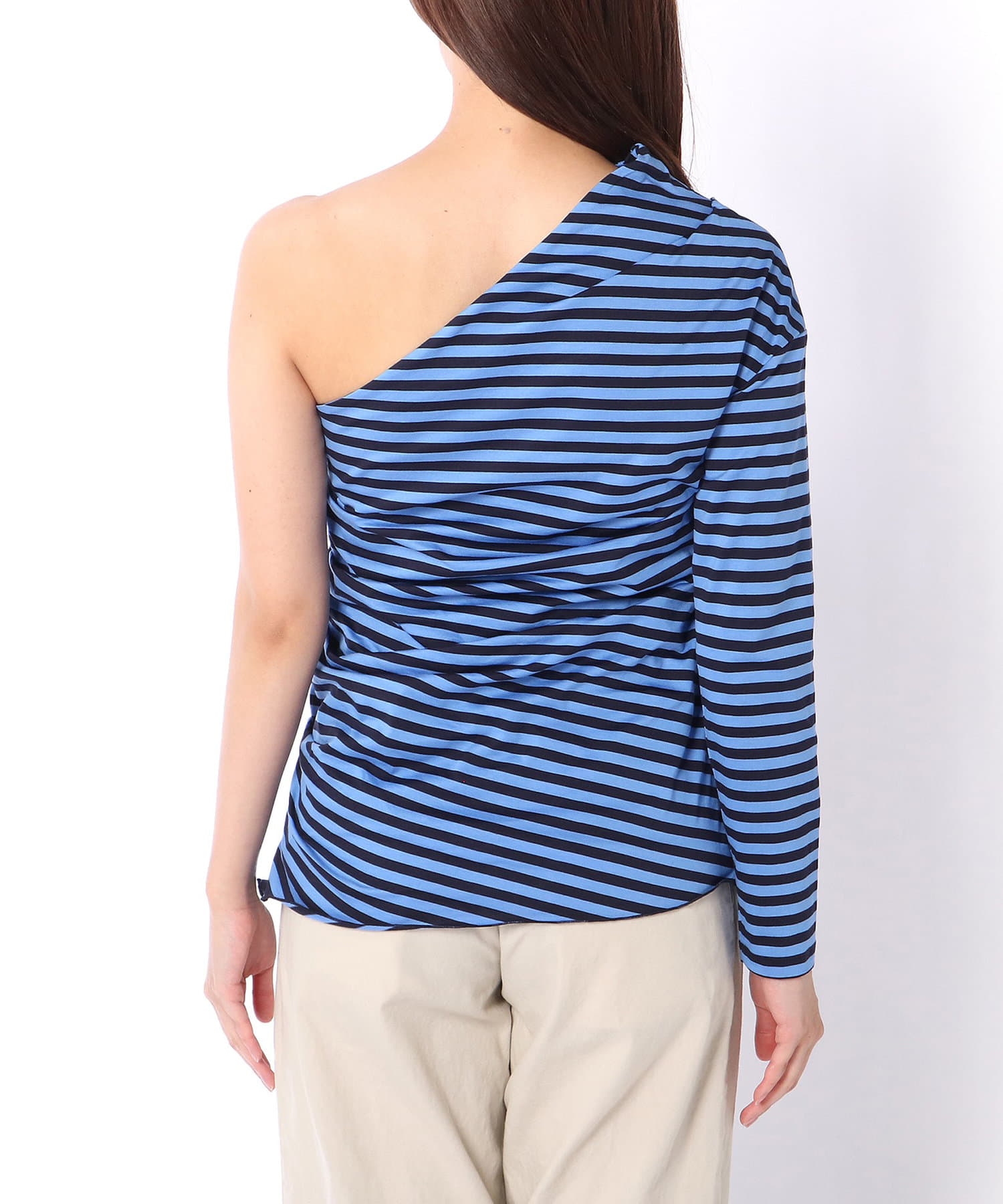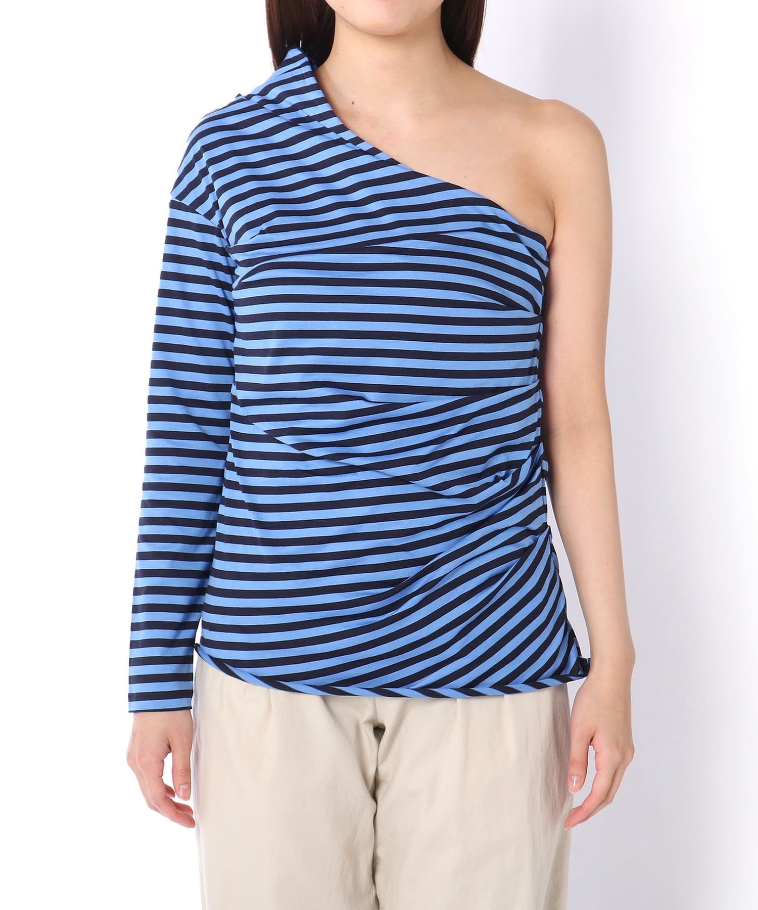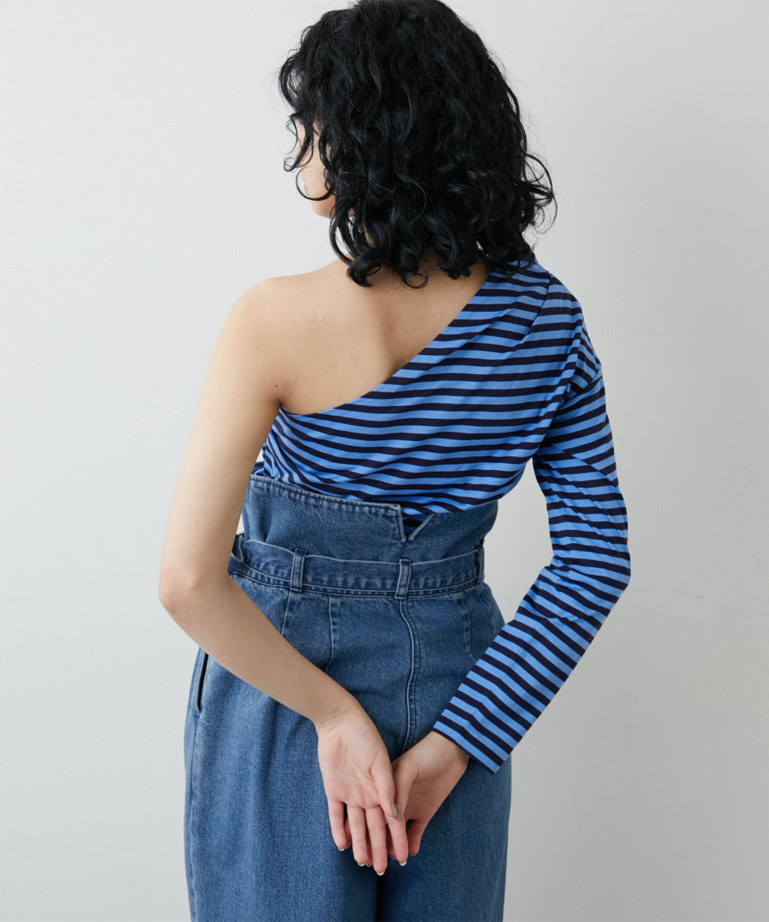■大胆に開いたネックラインがデコルテを美しく演出するワンショルダーカットソー。