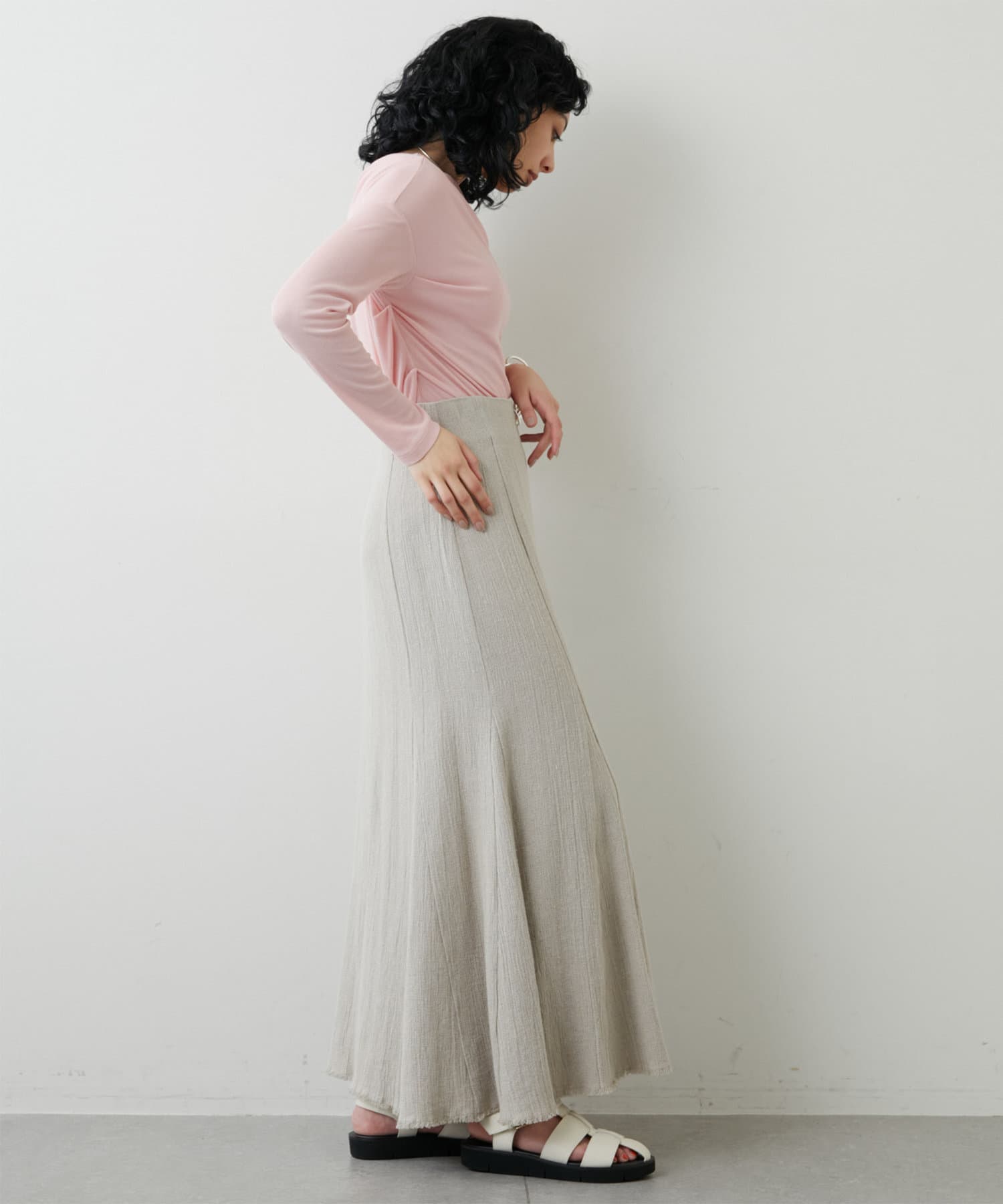 ■身頃に施されたギャザーがボディラインをカバーし立体感のあるシルエットに。