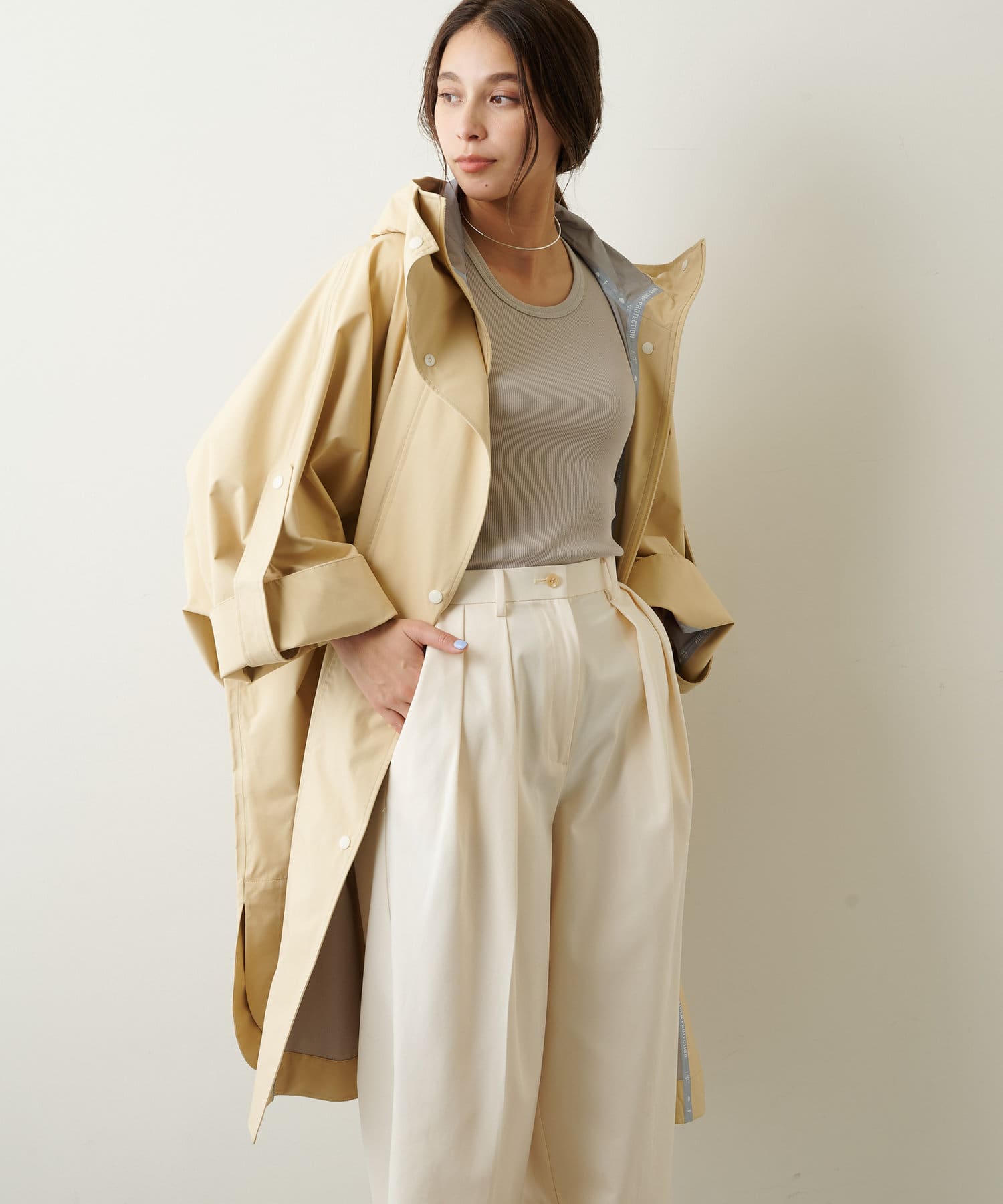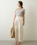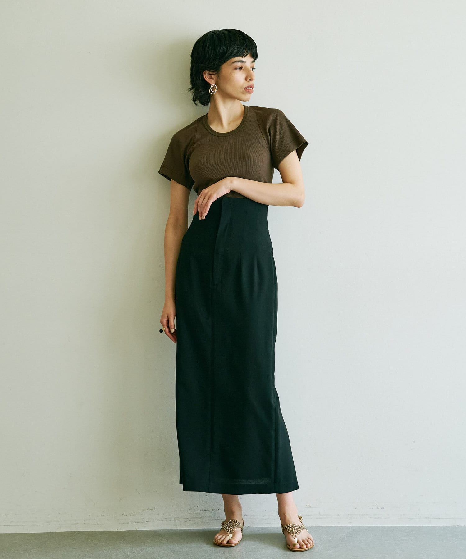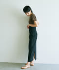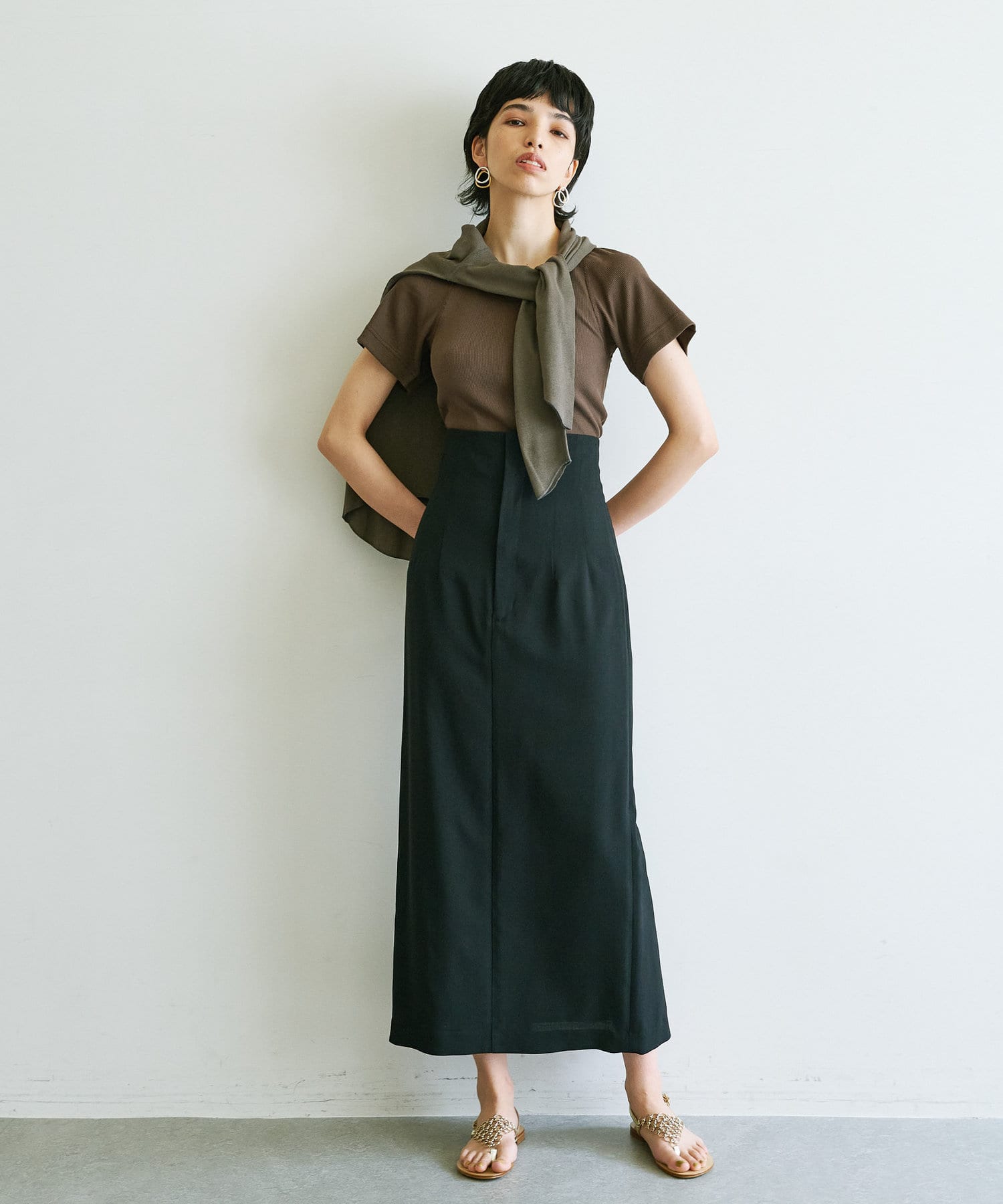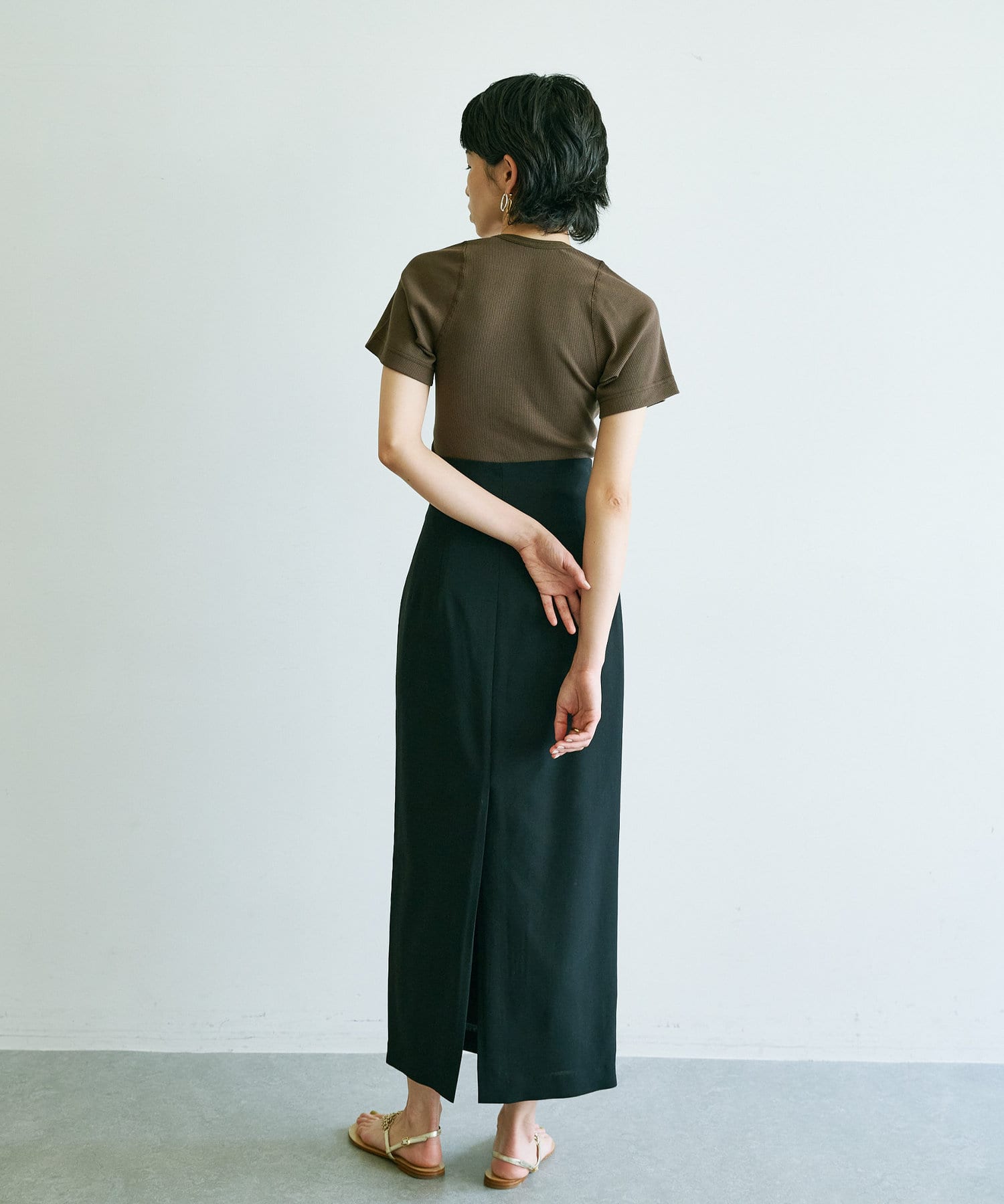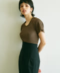 ■タイトな身頃シルエットとほんのり透ける素材感が女性らしい印象。