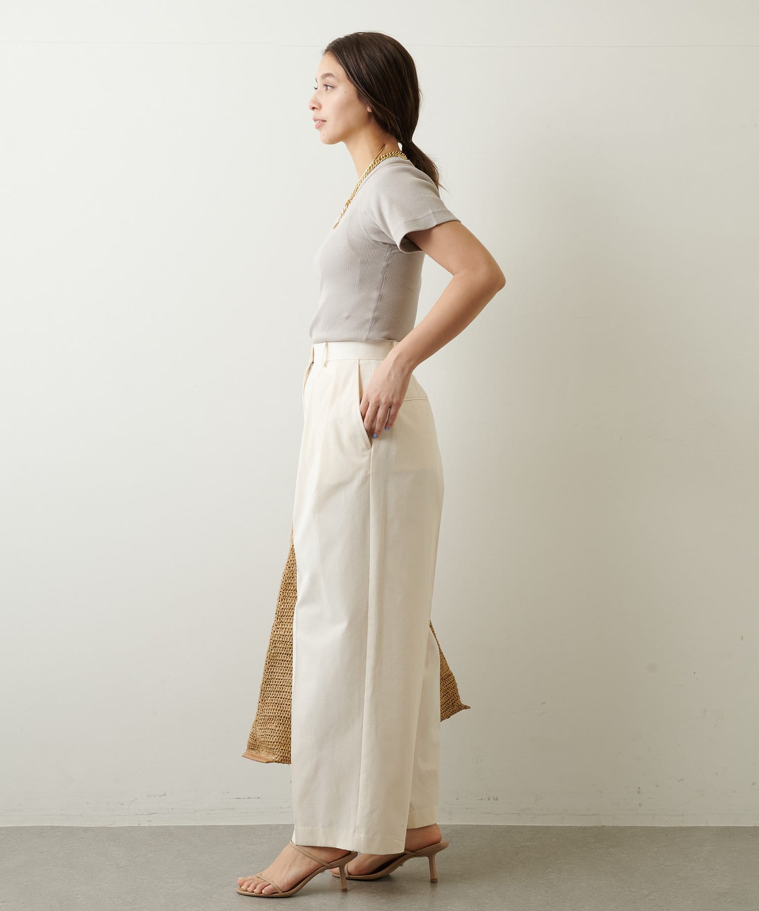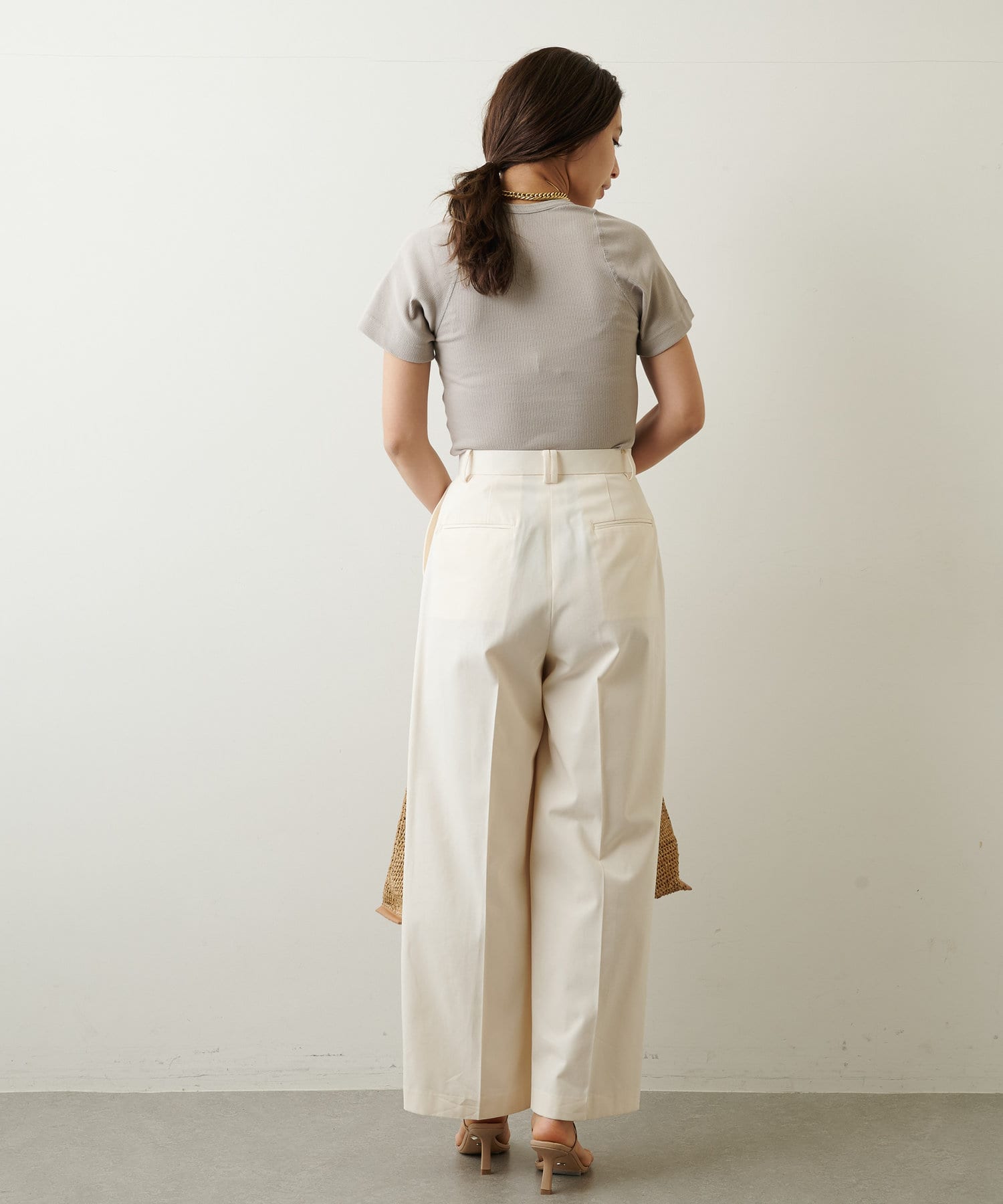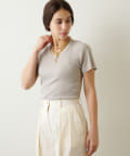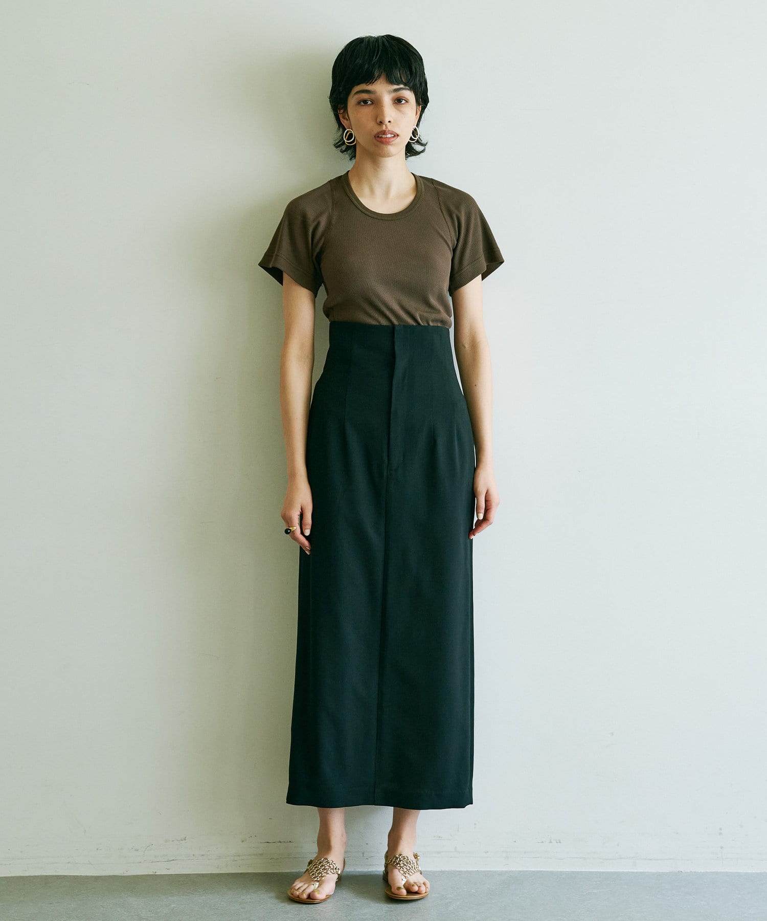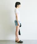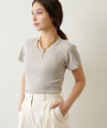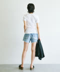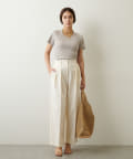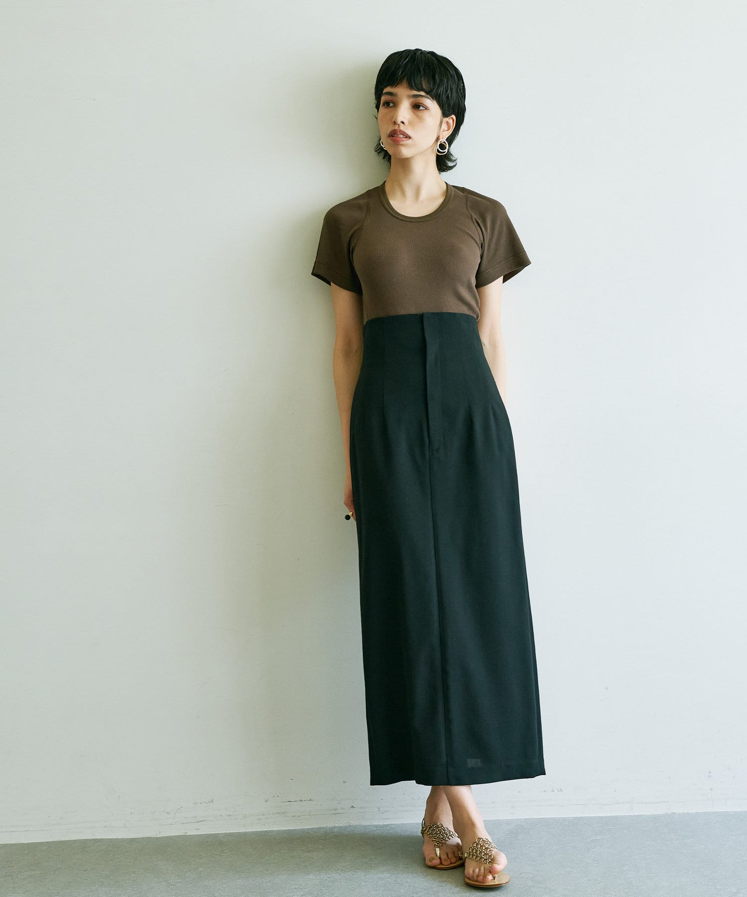 ■タイトな身頃シルエットとほんのり透ける素材感が女性らしい印象。