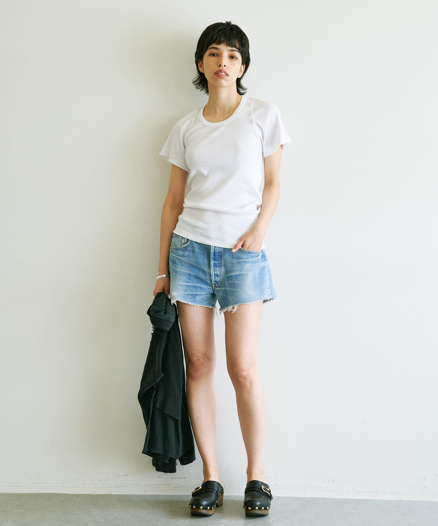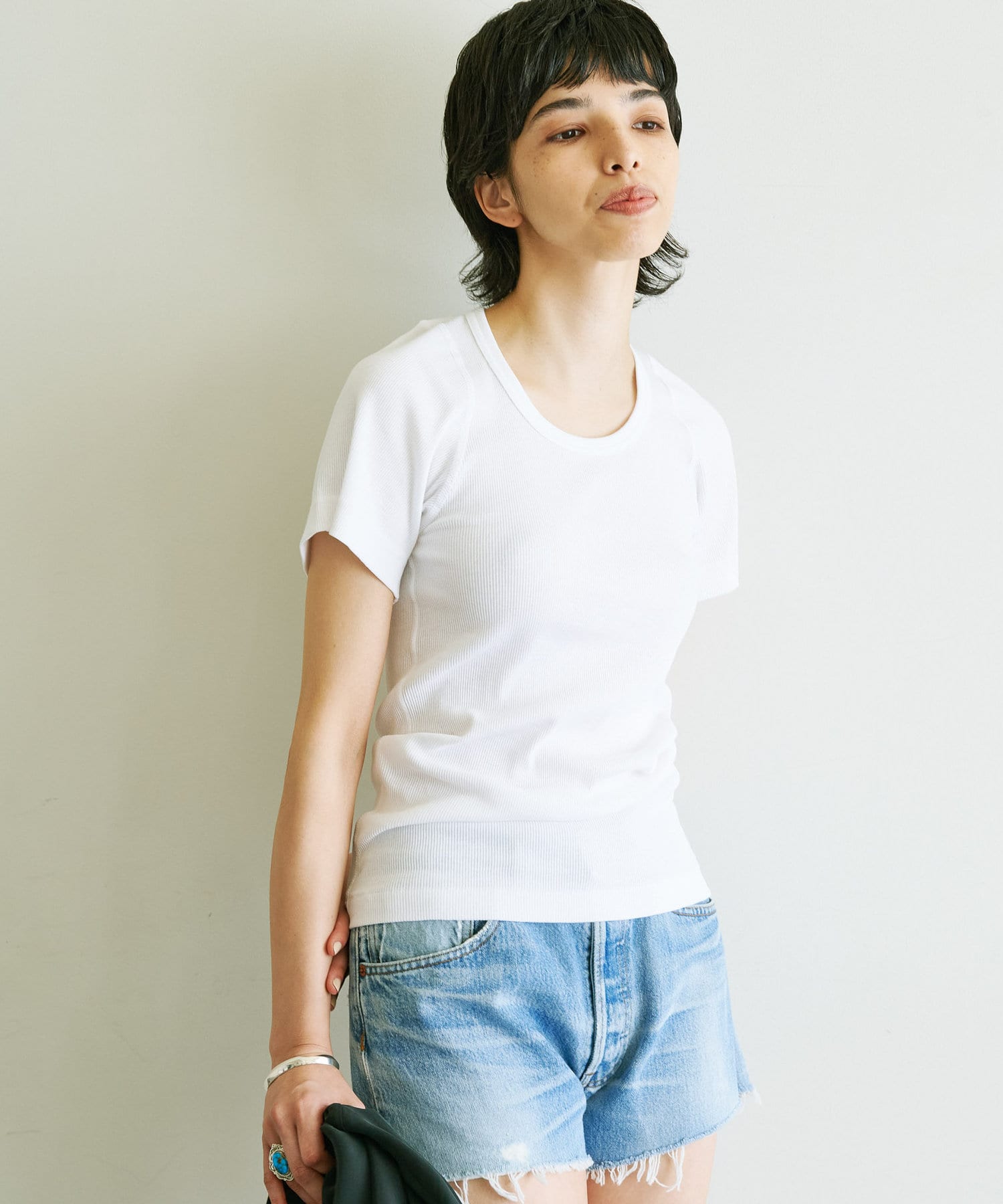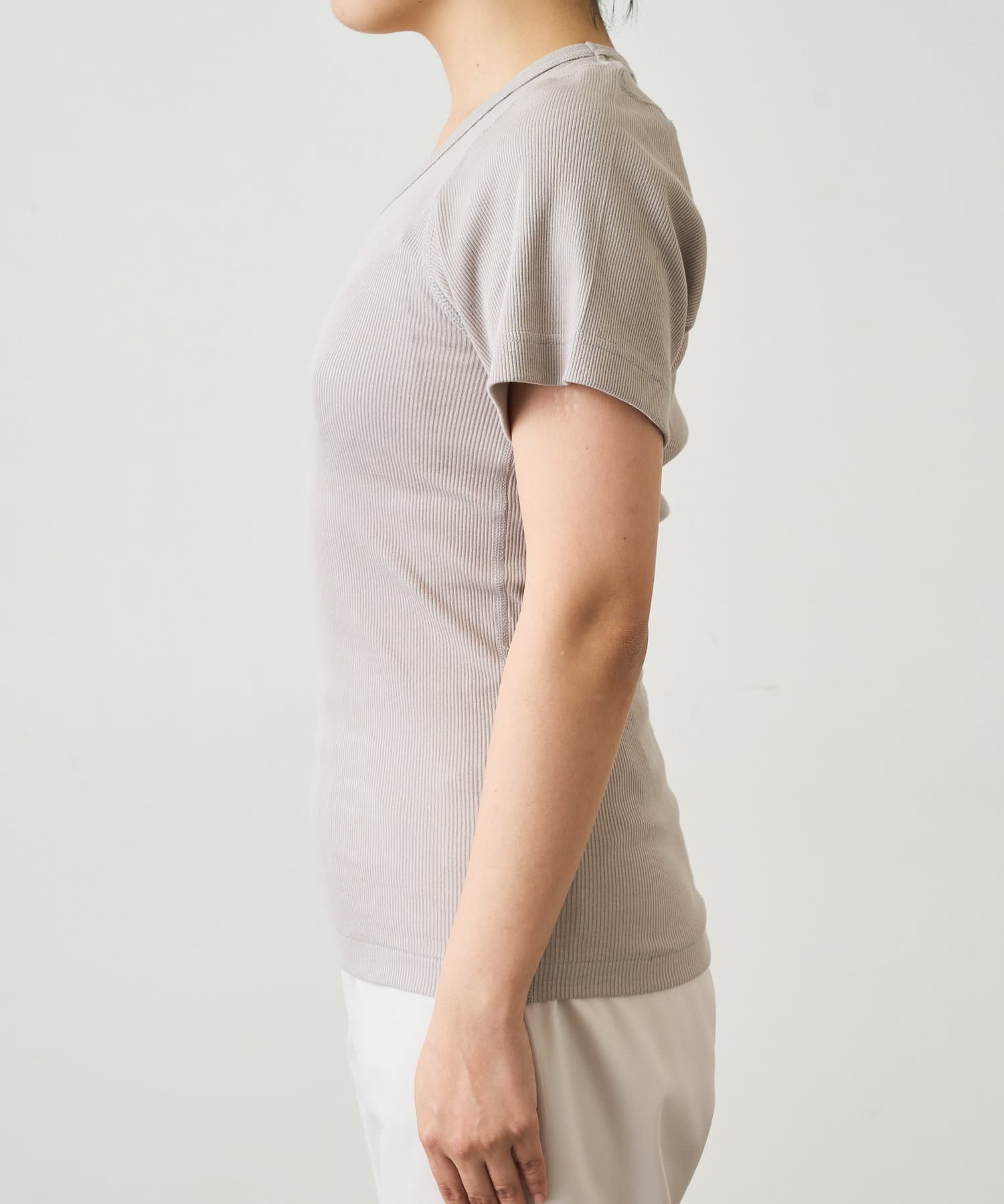 柔らかく肌当たりが気持ちいい薄手のコットンリブ素材。