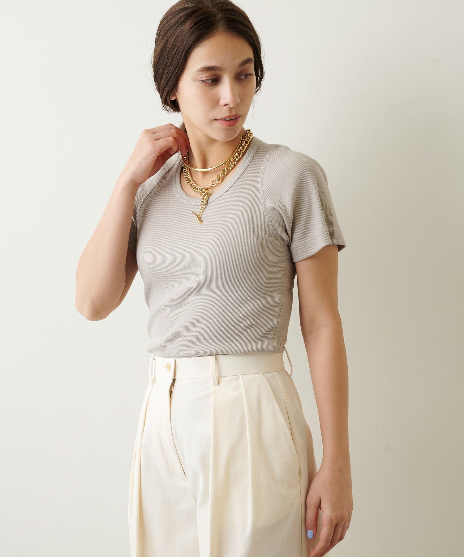 ■一枚で楽しむのはもちろん、シャツやジャケットのインナーとしても最適なアイテム。