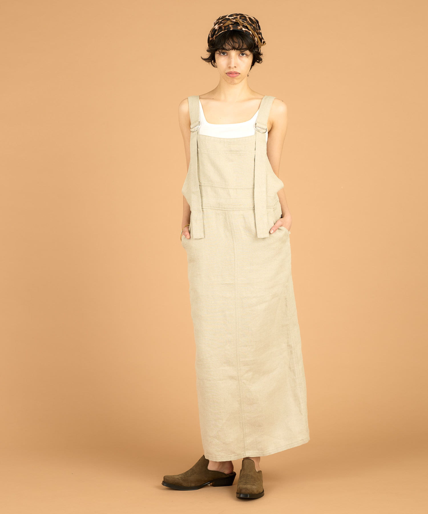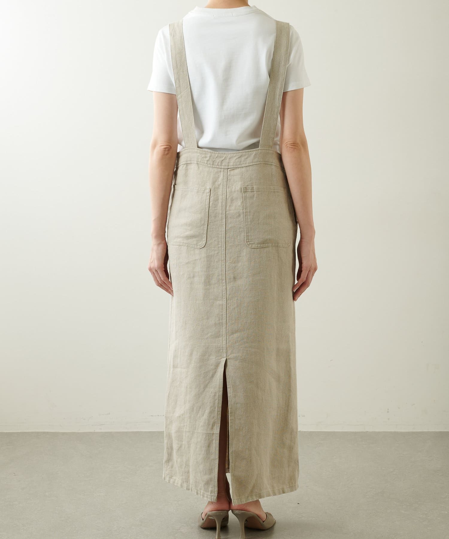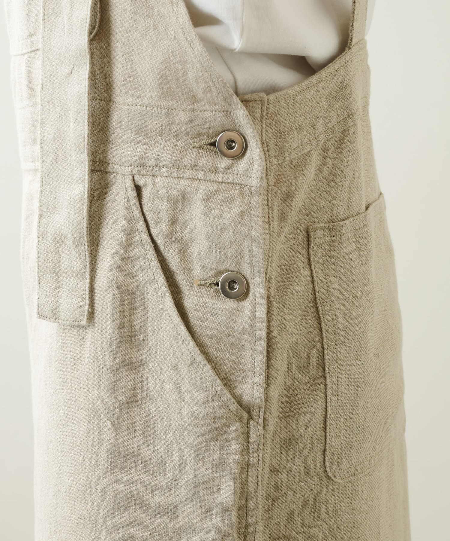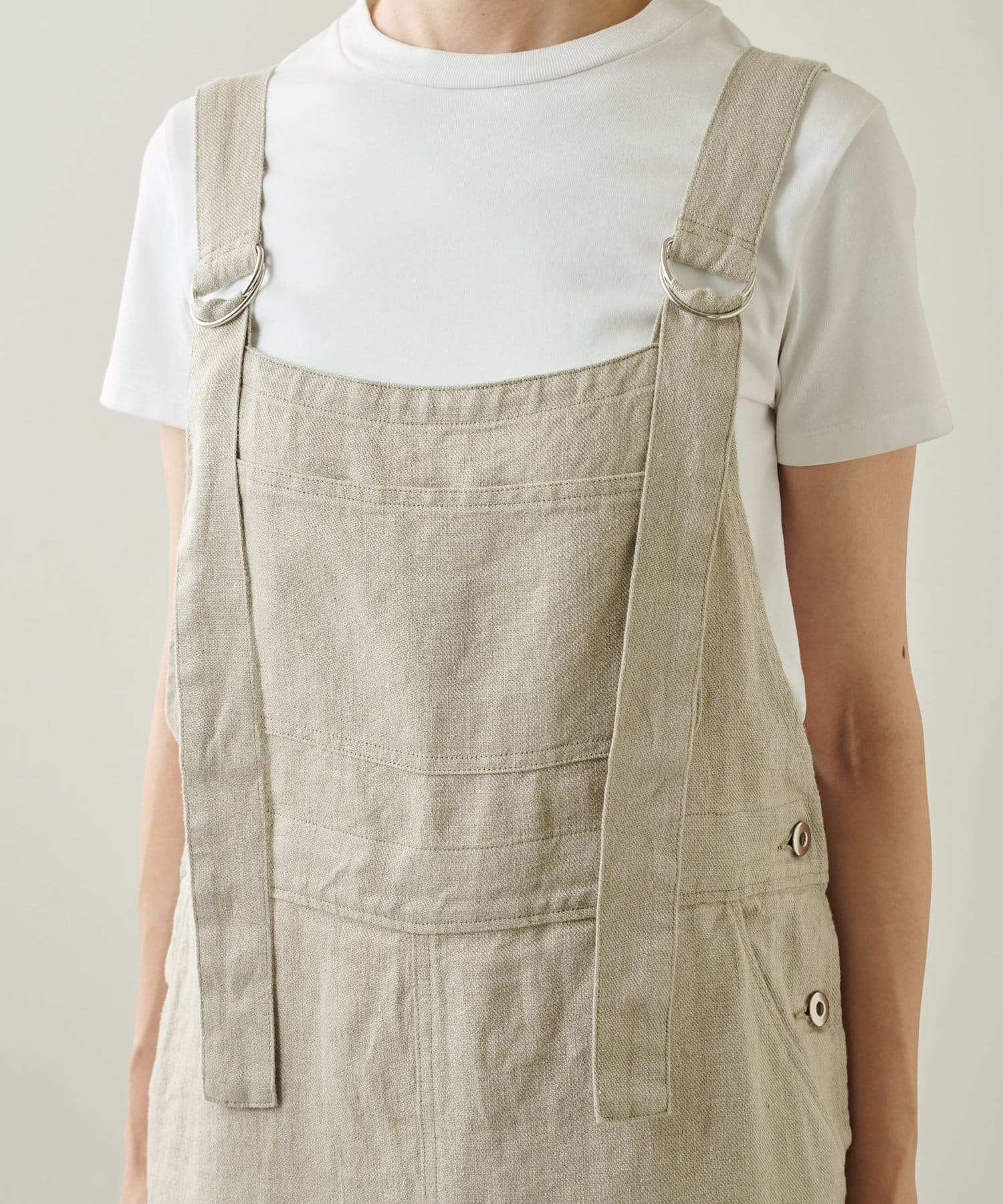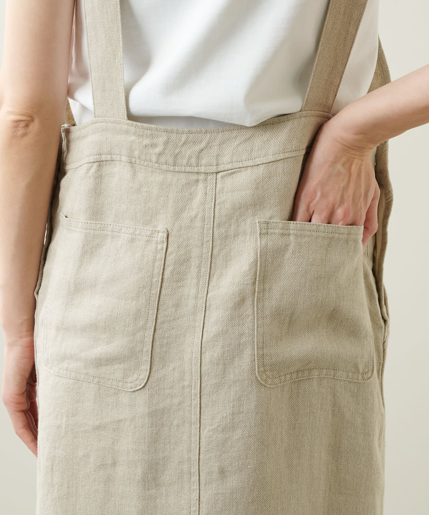 ■涼し気なリネン素材で仕上げたジャンパースカート。