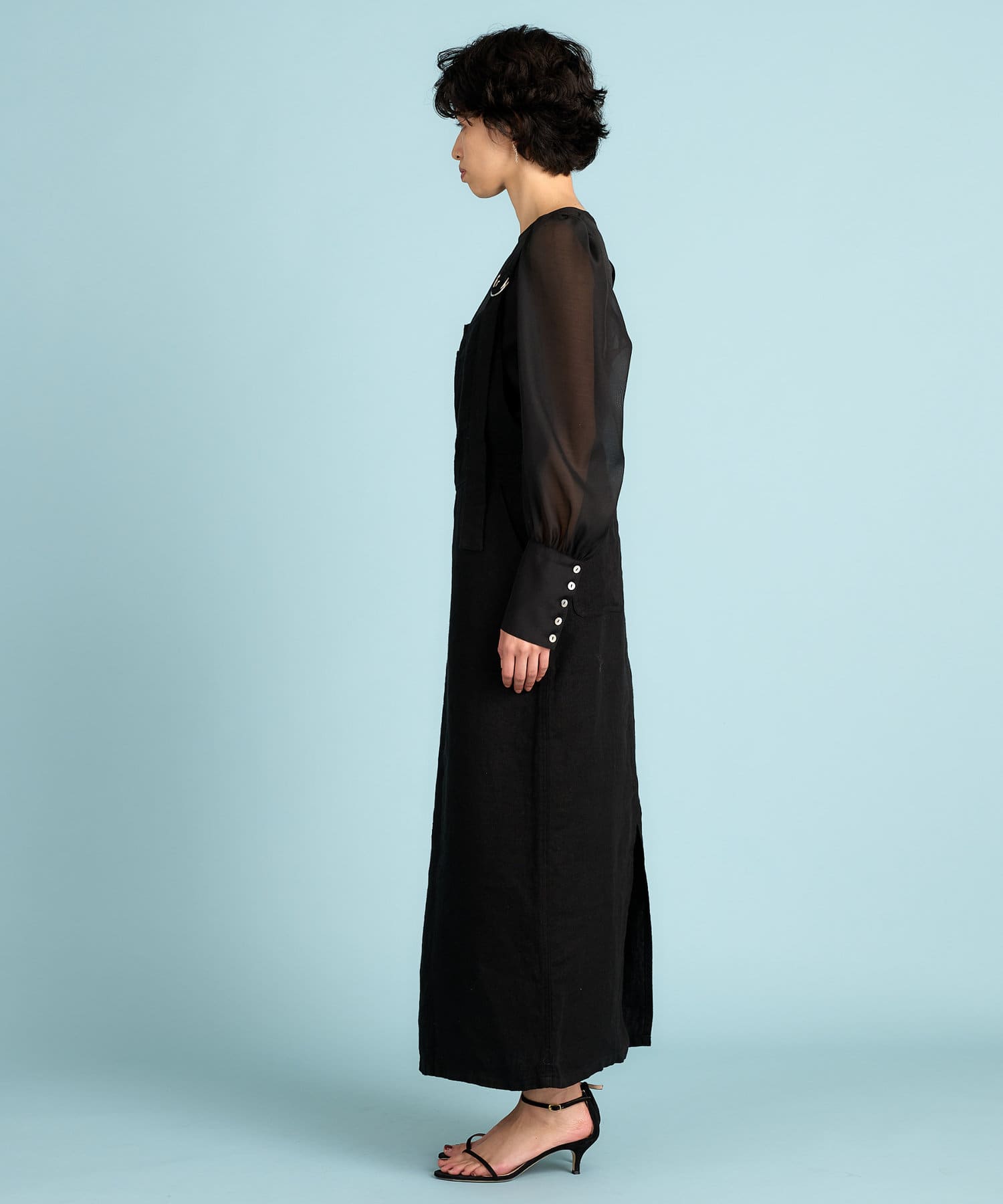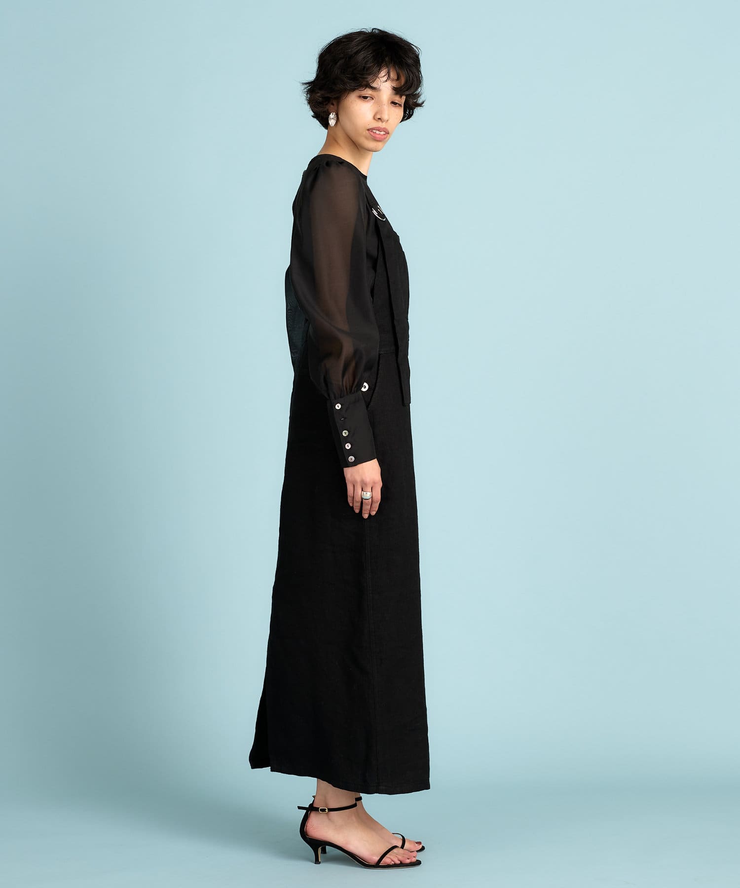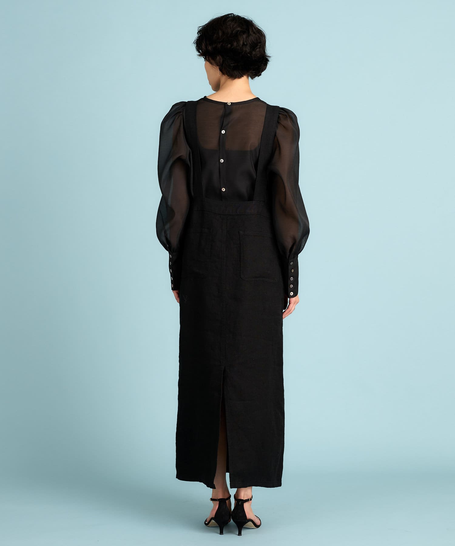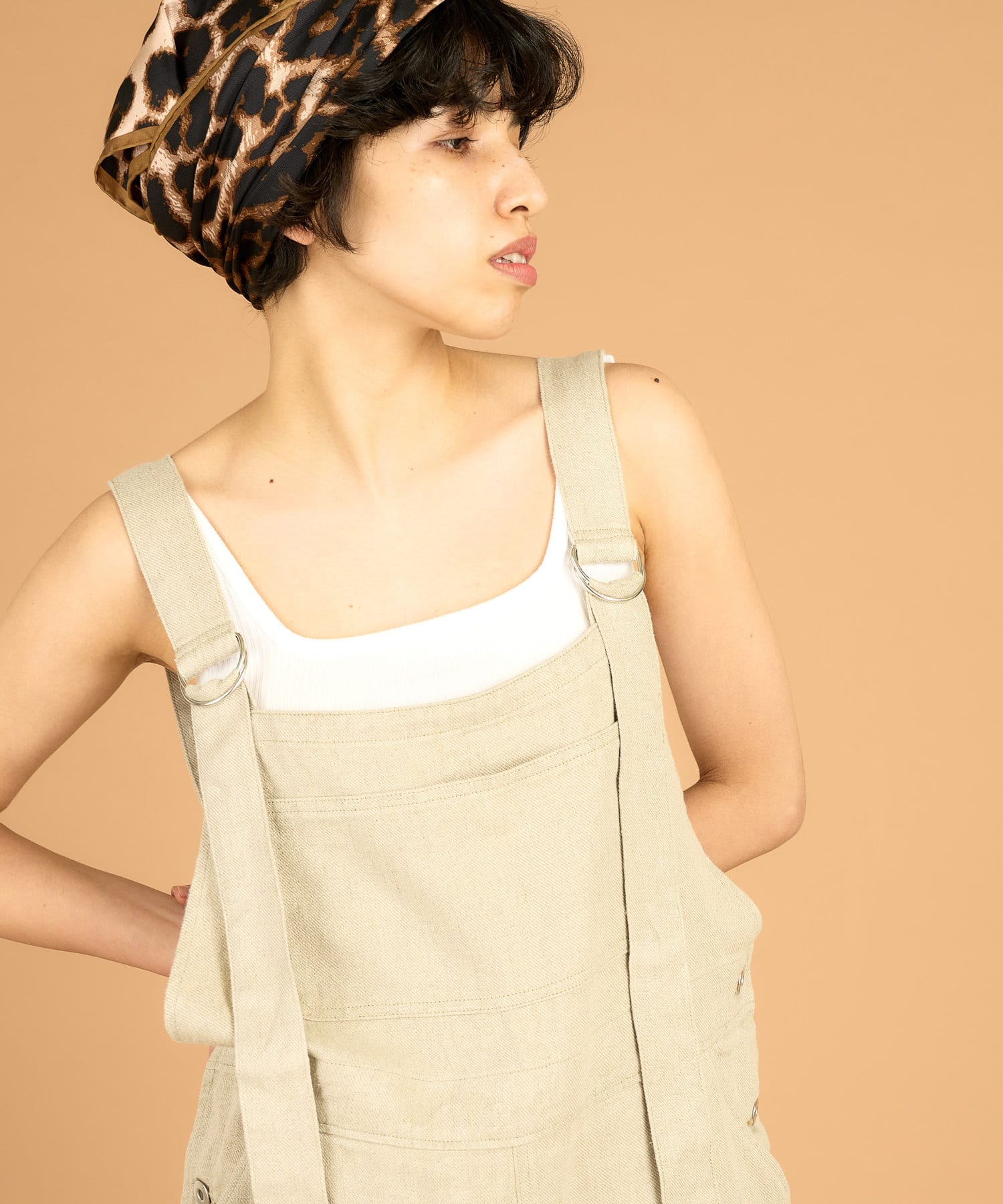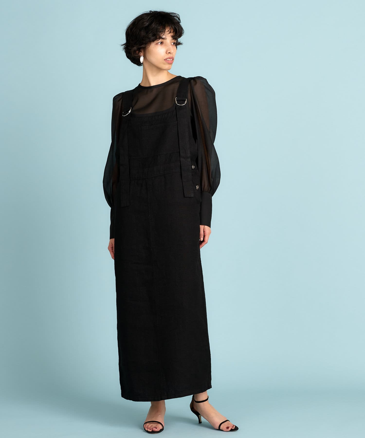 ■涼し気なリネン素材で仕上げたジャンパースカート。