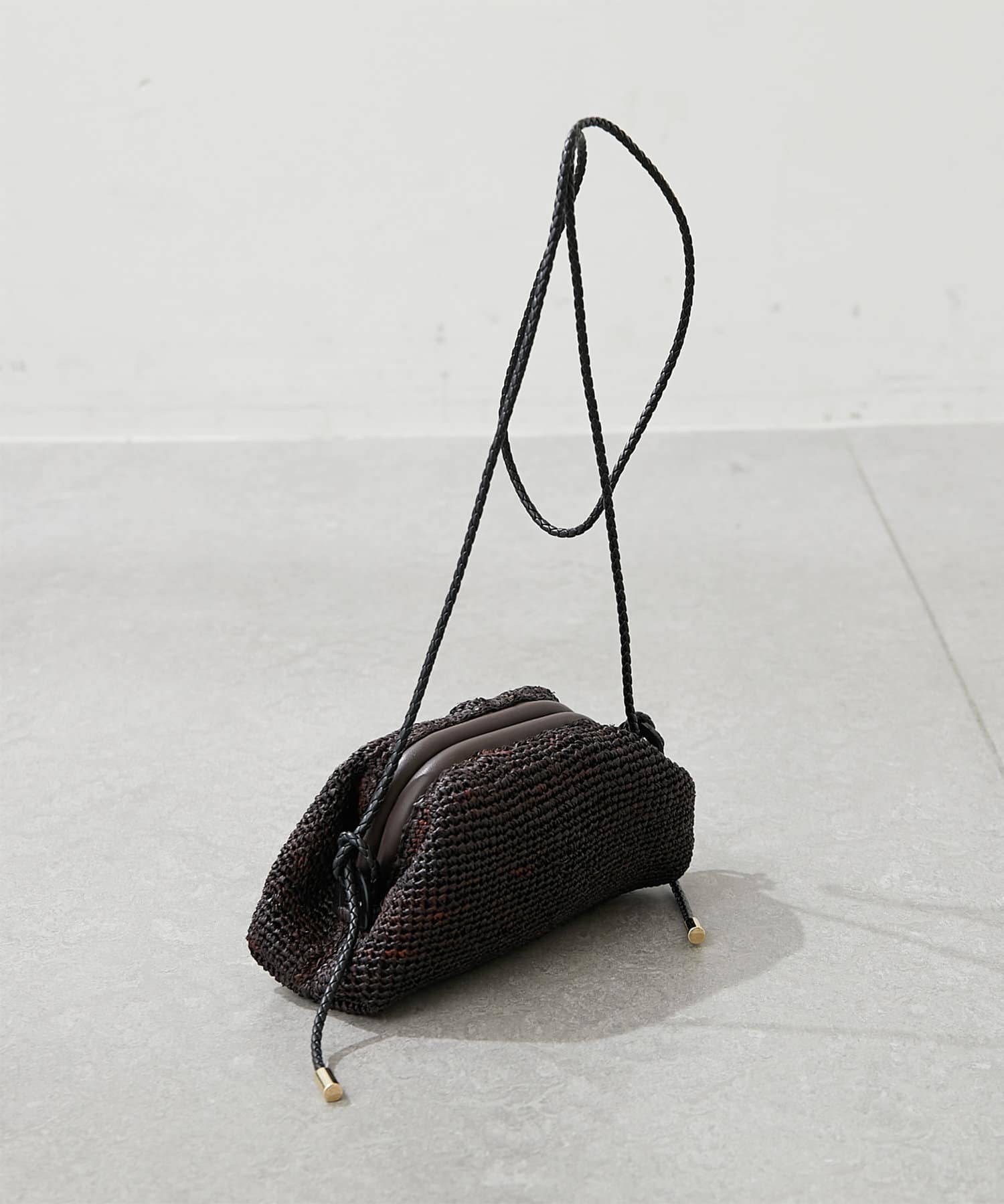 ■シーズンムードを盛り上げる、ラフィア素材を使用したミニバッグ。
