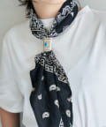 ■ヴィンテージのバンダナを使用し、こなれ感たっぷりに仕上げたスカーフ。