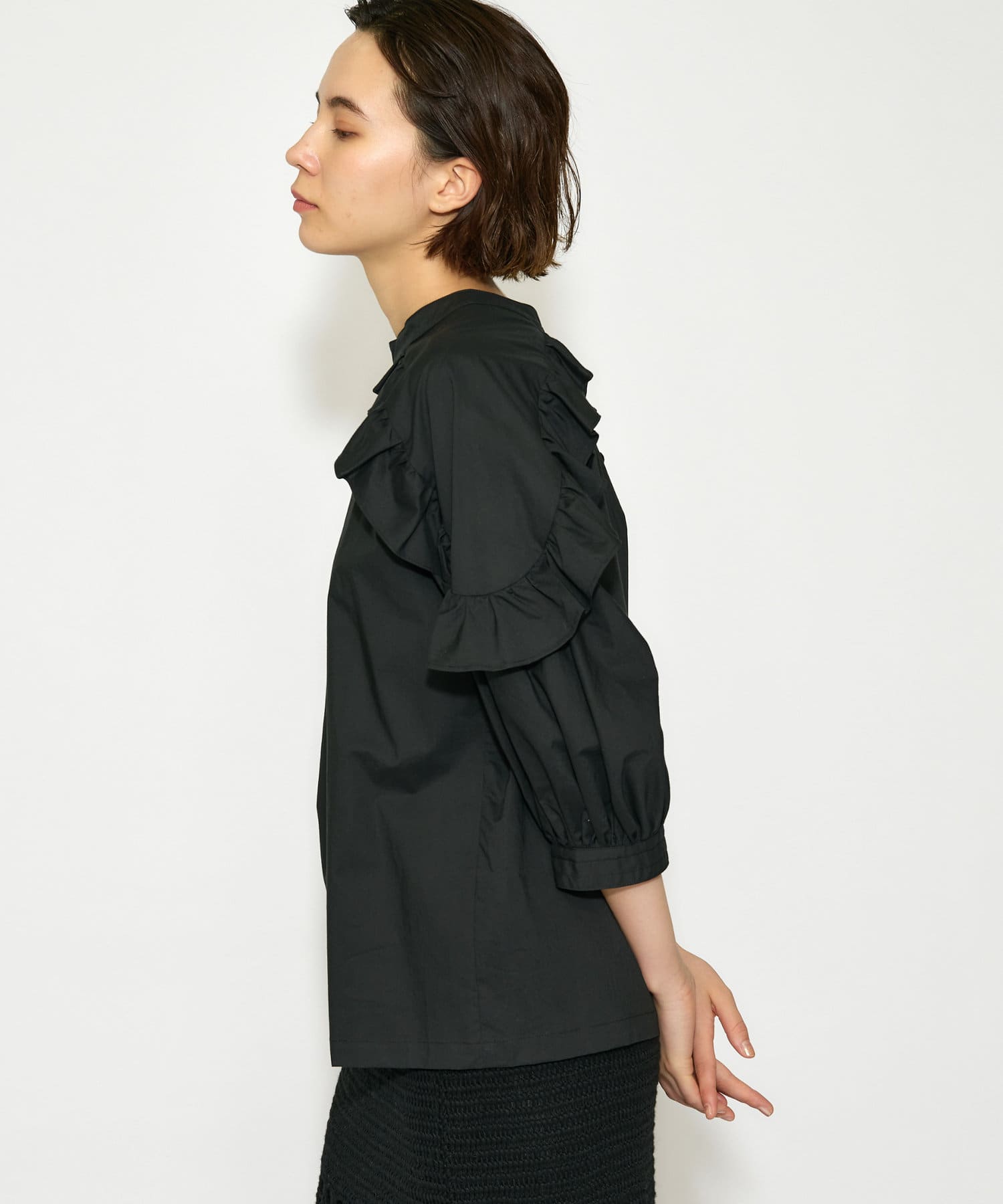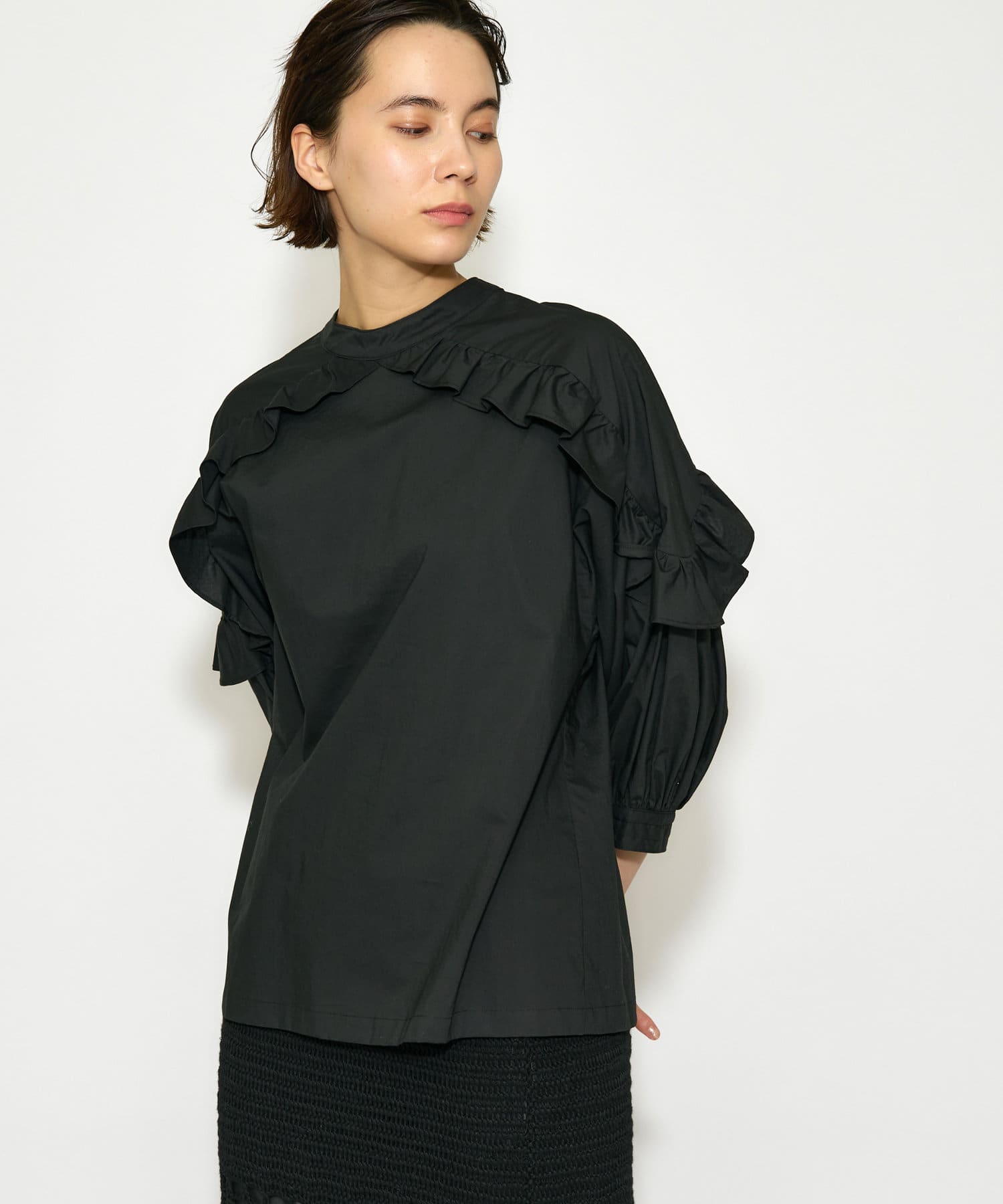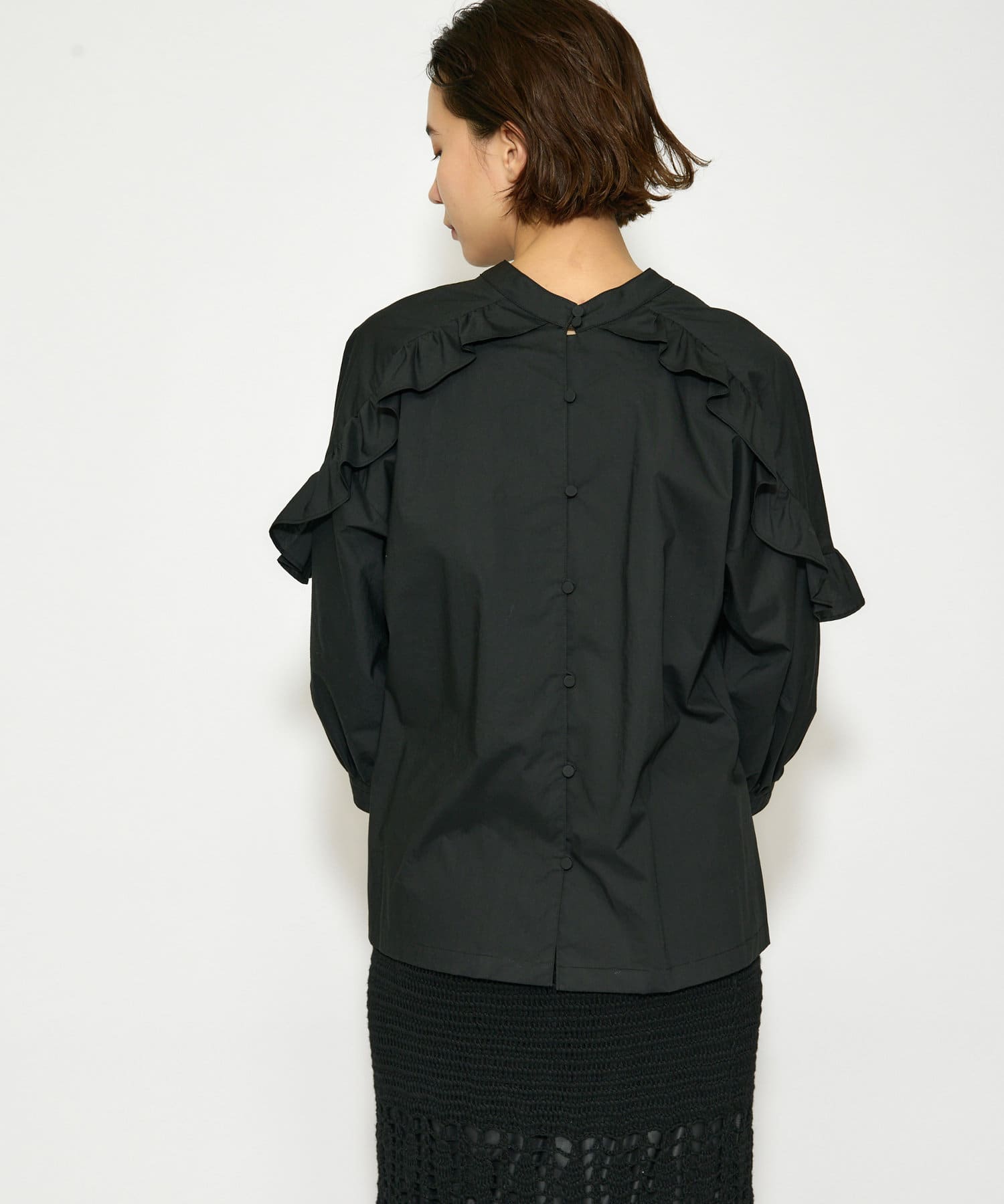 ■肩から袖にかけてあしらったフリルが華やかなデザインブラウス。