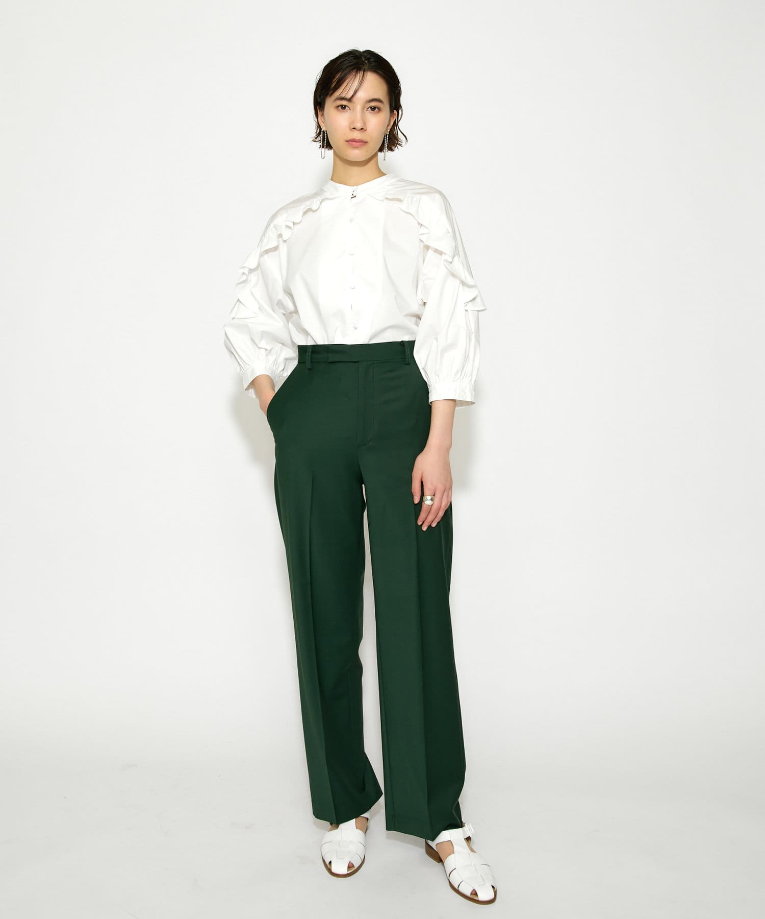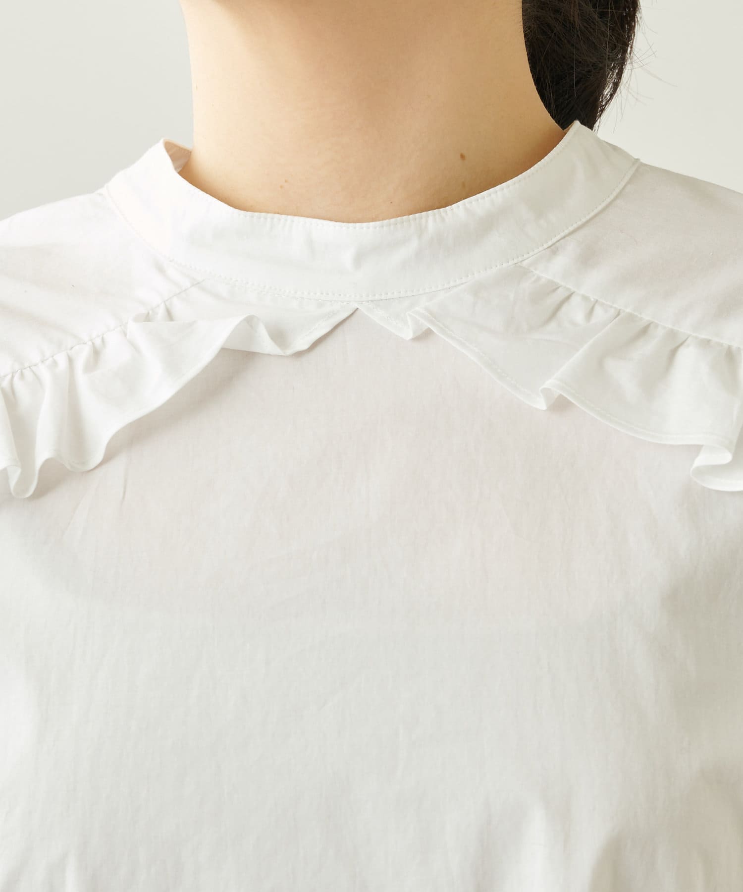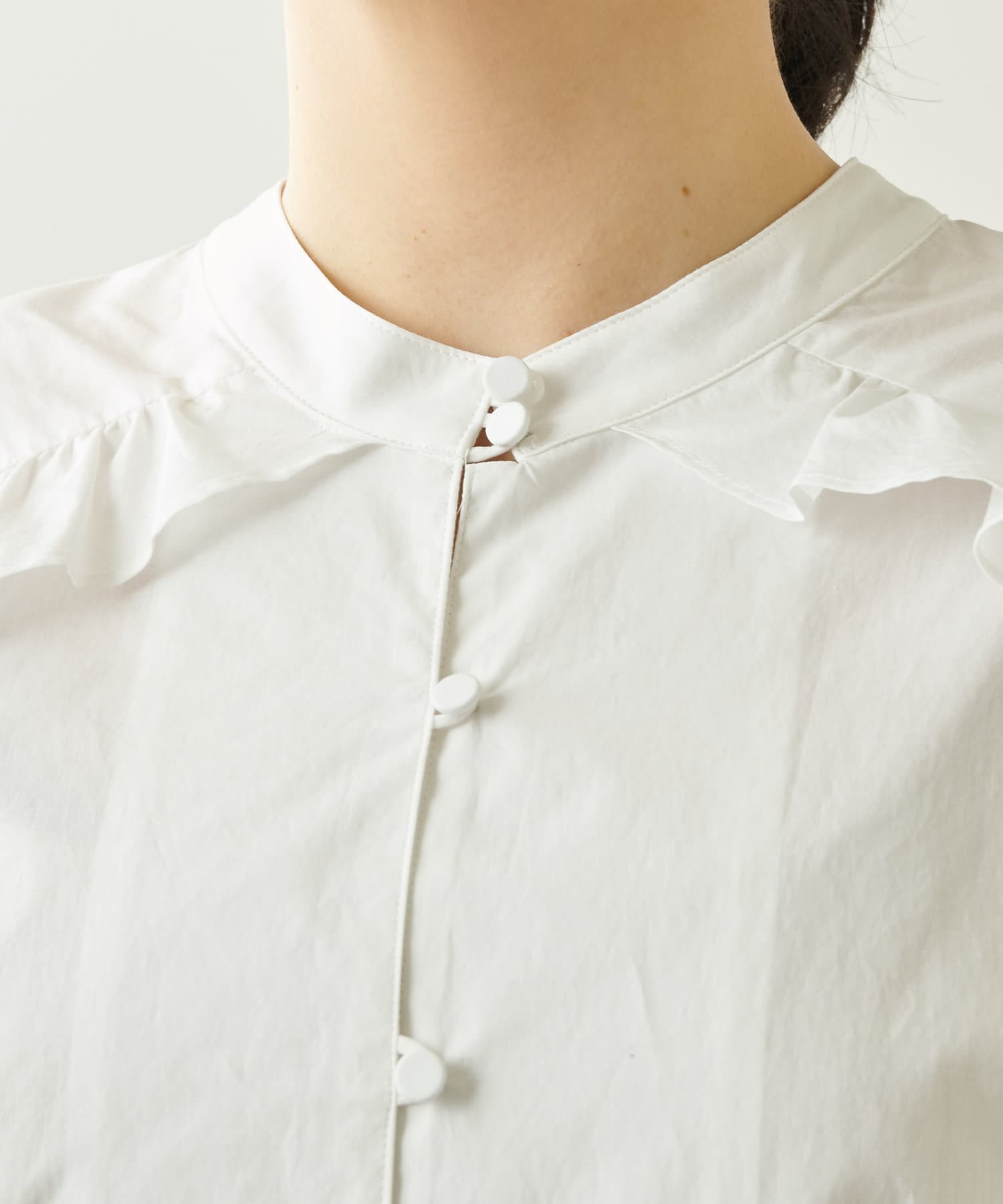 ■すっきりとしたバンドカラーで甘くなりすぎず、大人のバランスに。