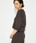 ■肩を少し落としたリラックス感のあるシルエットながら、裾を絞ったリブですっきりとコンパクトな印象に。