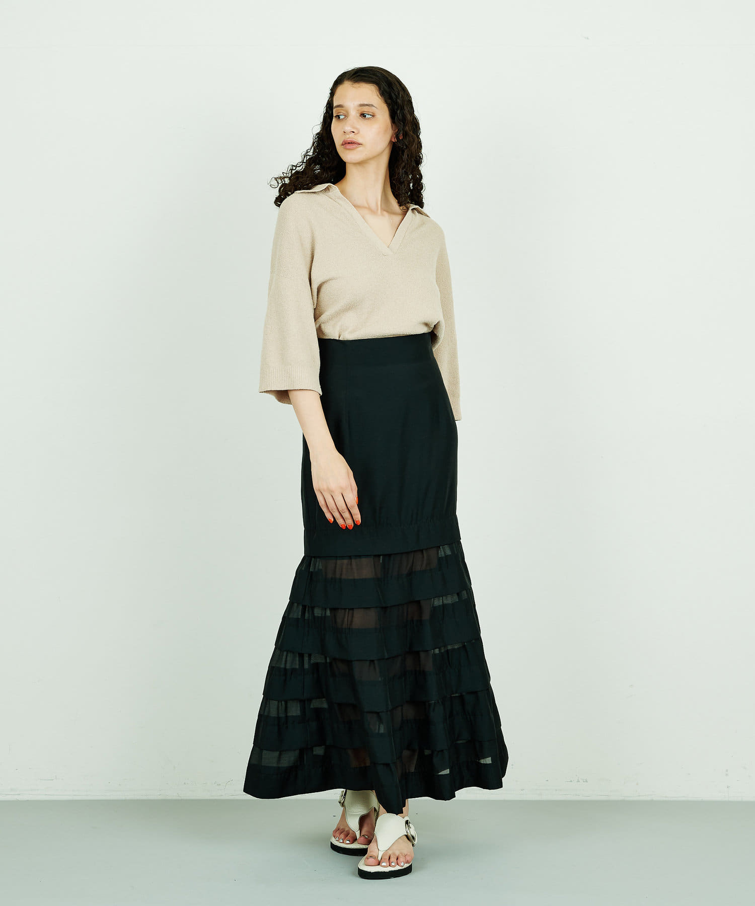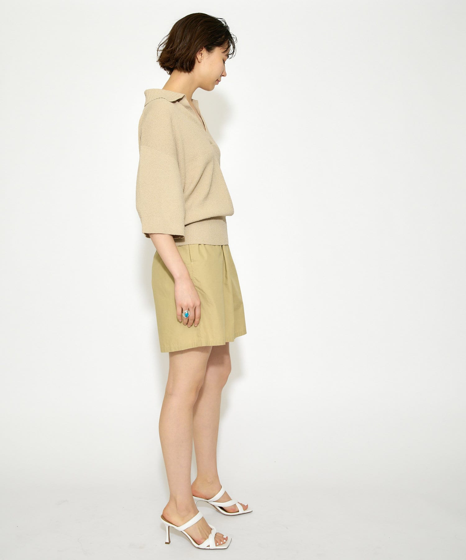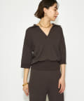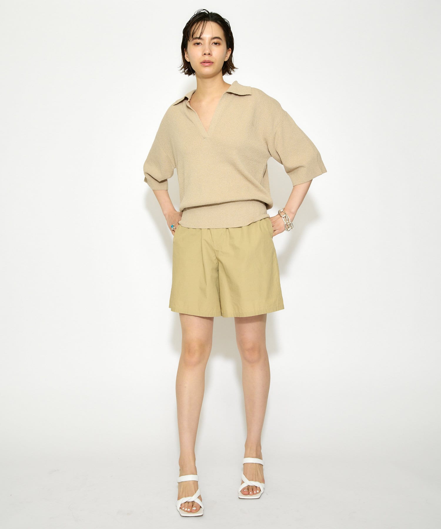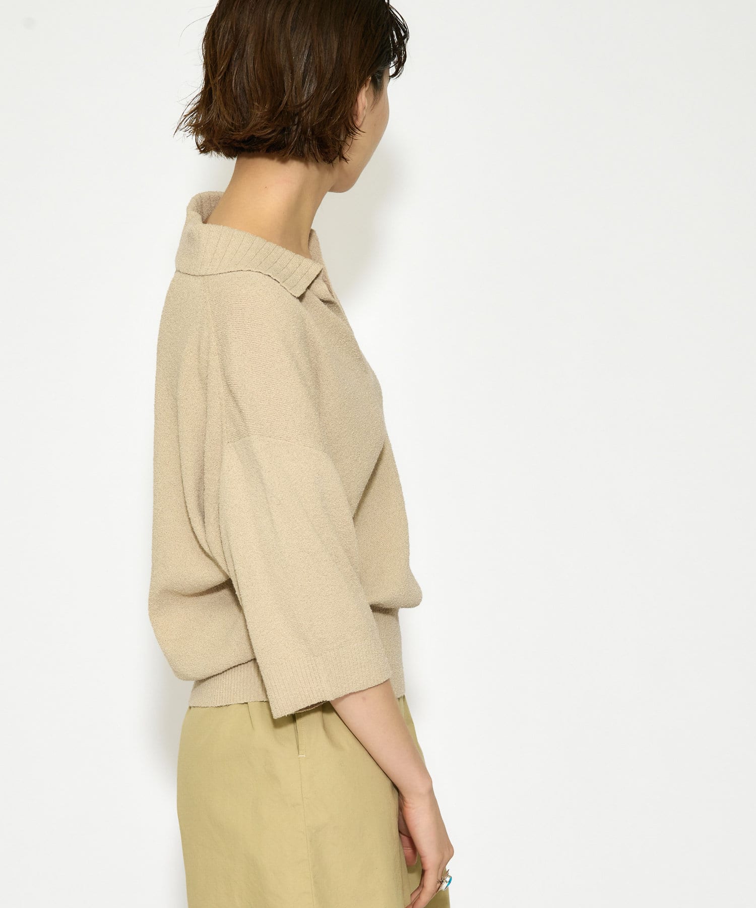 ■スキッパー開きがデコルテをきれいに演出し、トレンド感もプラス。