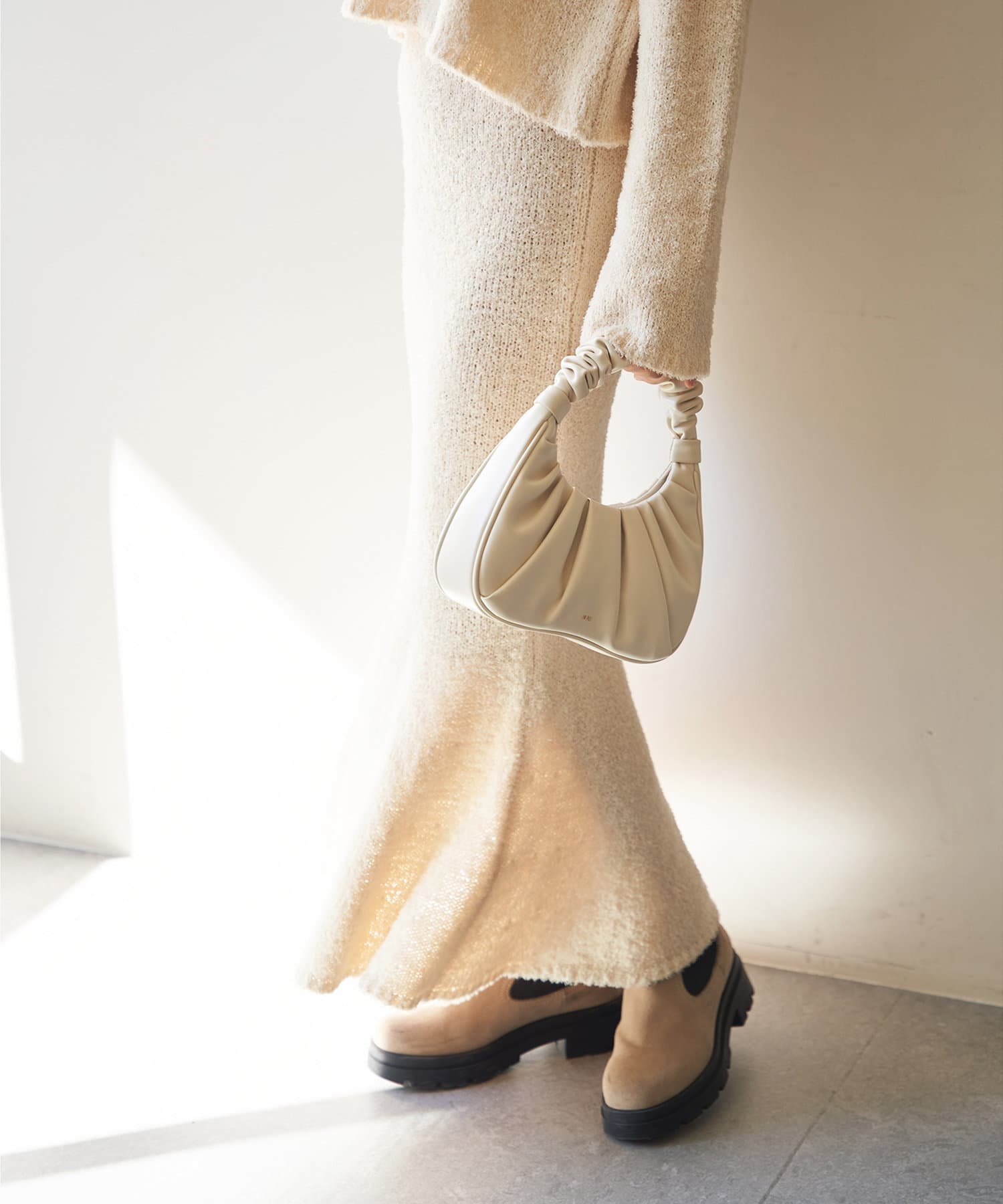 ■クロワッサンのような形に、シュシュのようなハンドルが特徴的なデザイン。
