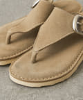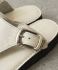 ■ヴィンテージライクなバックルがアクセントになったトングサンダル。
