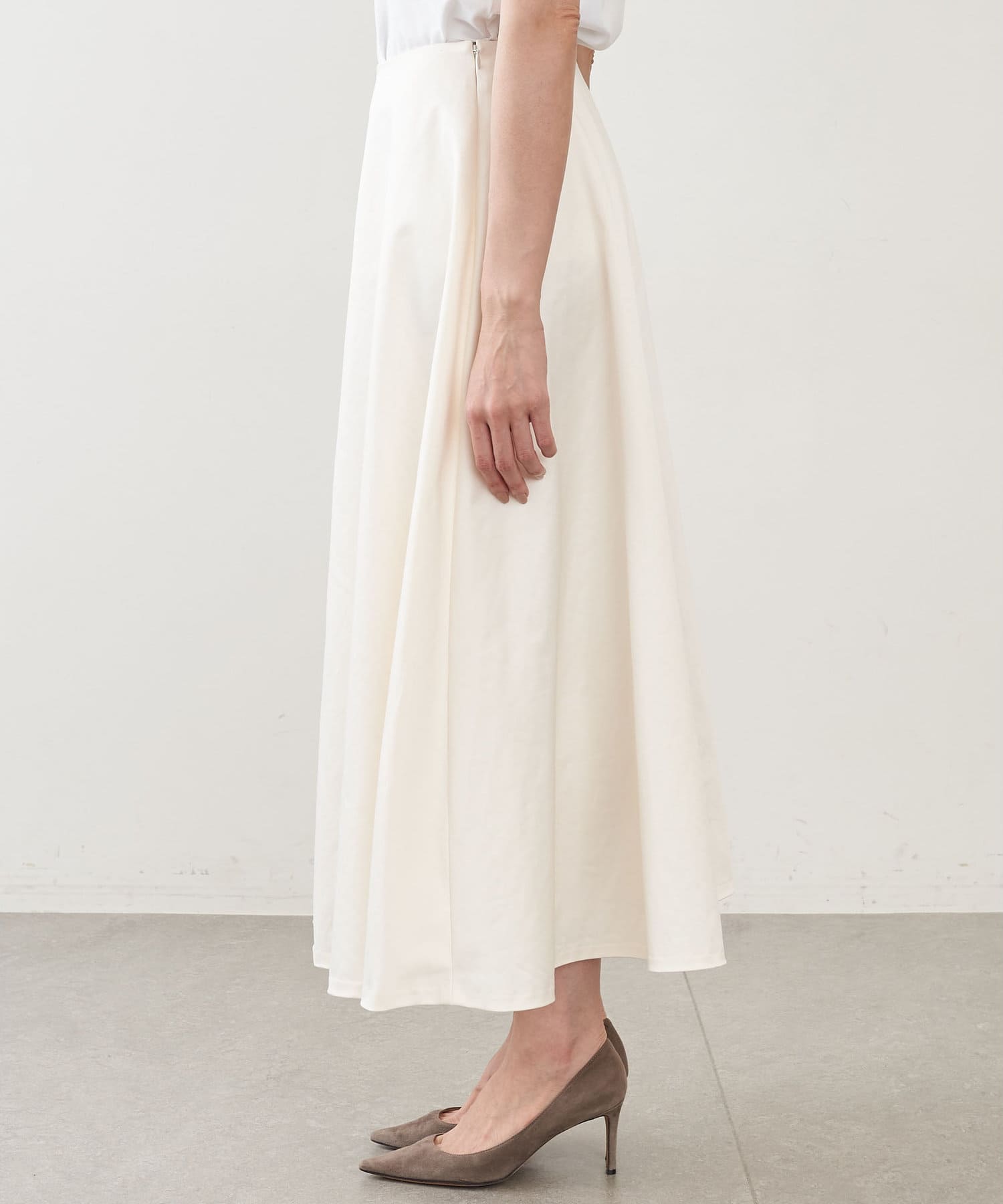 ■ツヤ感のある風合いがシーズンコーデに抜け感をプラスしてくれる、上質感漂うフレアスカート。