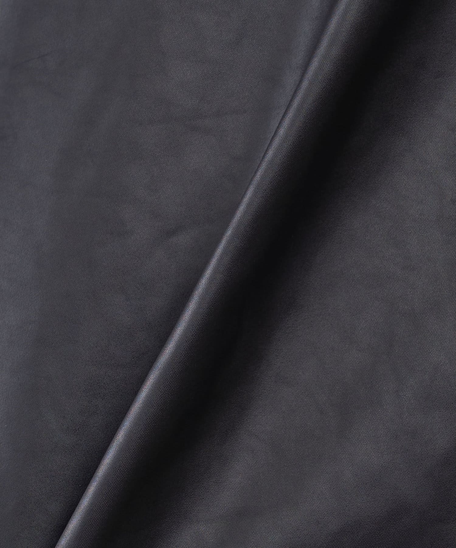 合皮の中でも希少な中肉素材の、撥水加工を施したサテンのフェイクレザー生地。