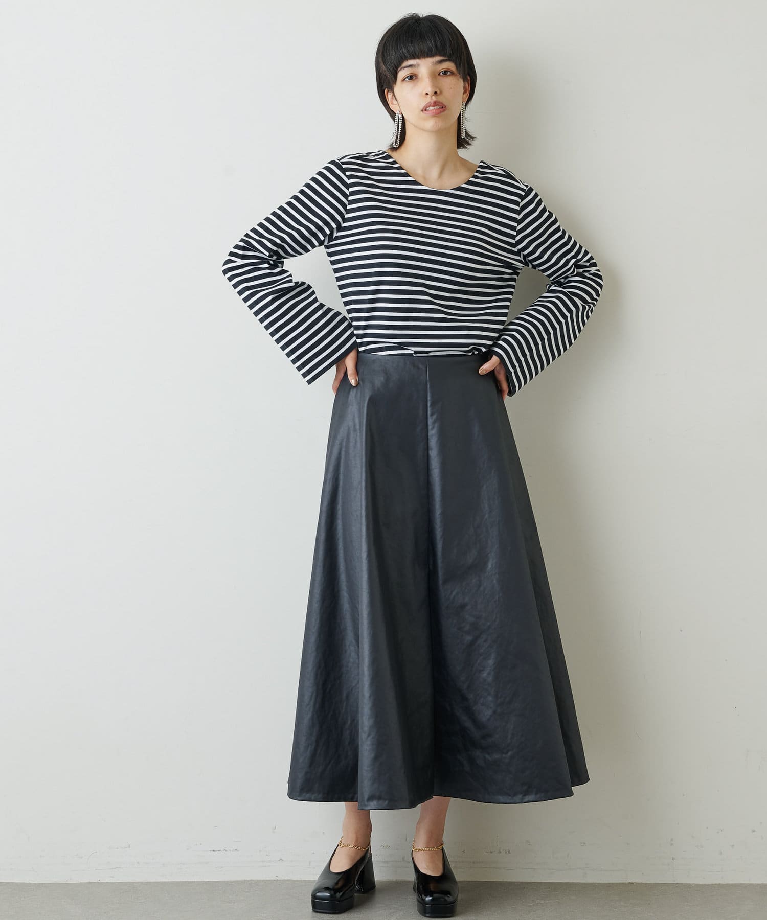 ハードすぎず大人らしく楽しめるレザータッチスカート