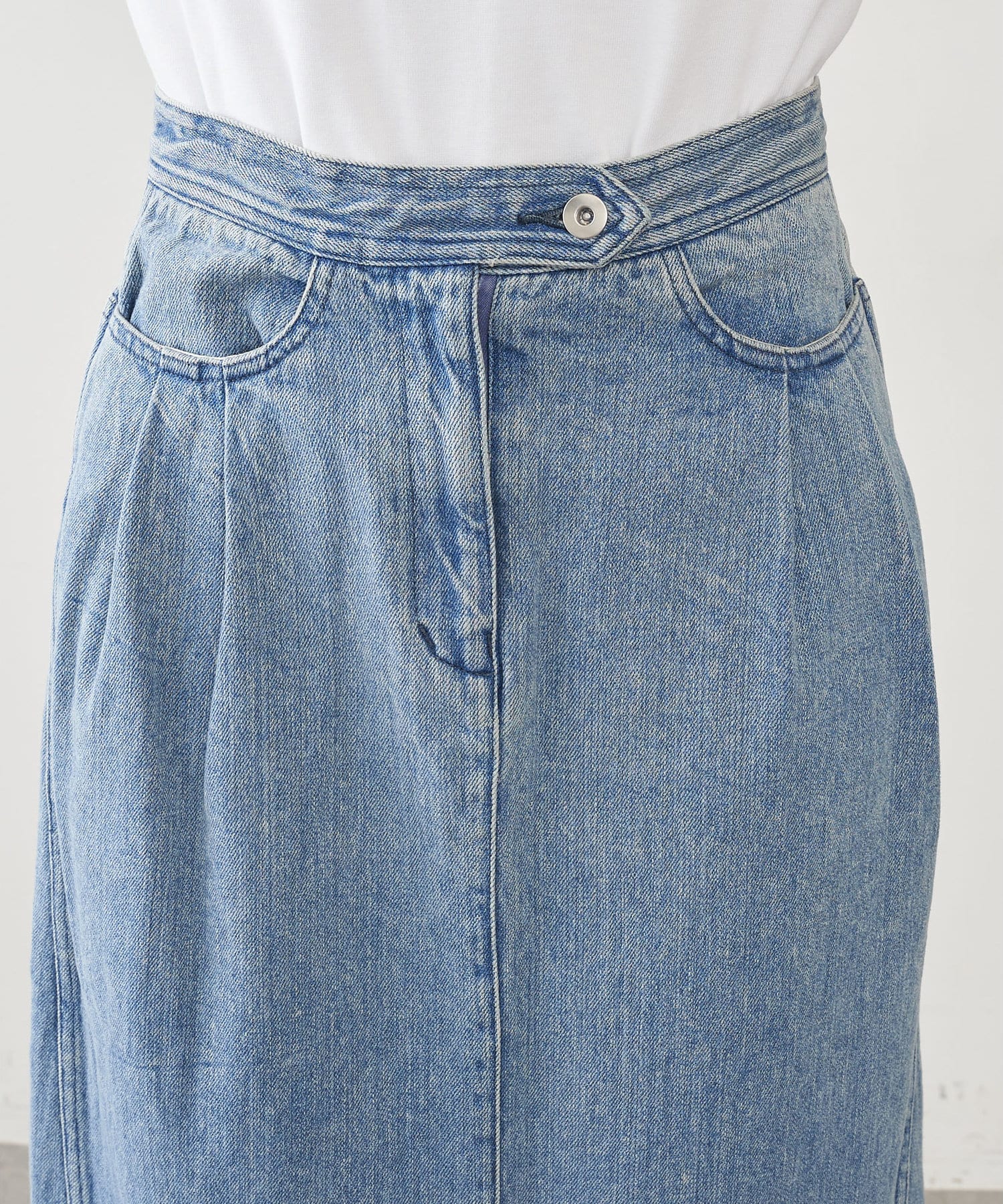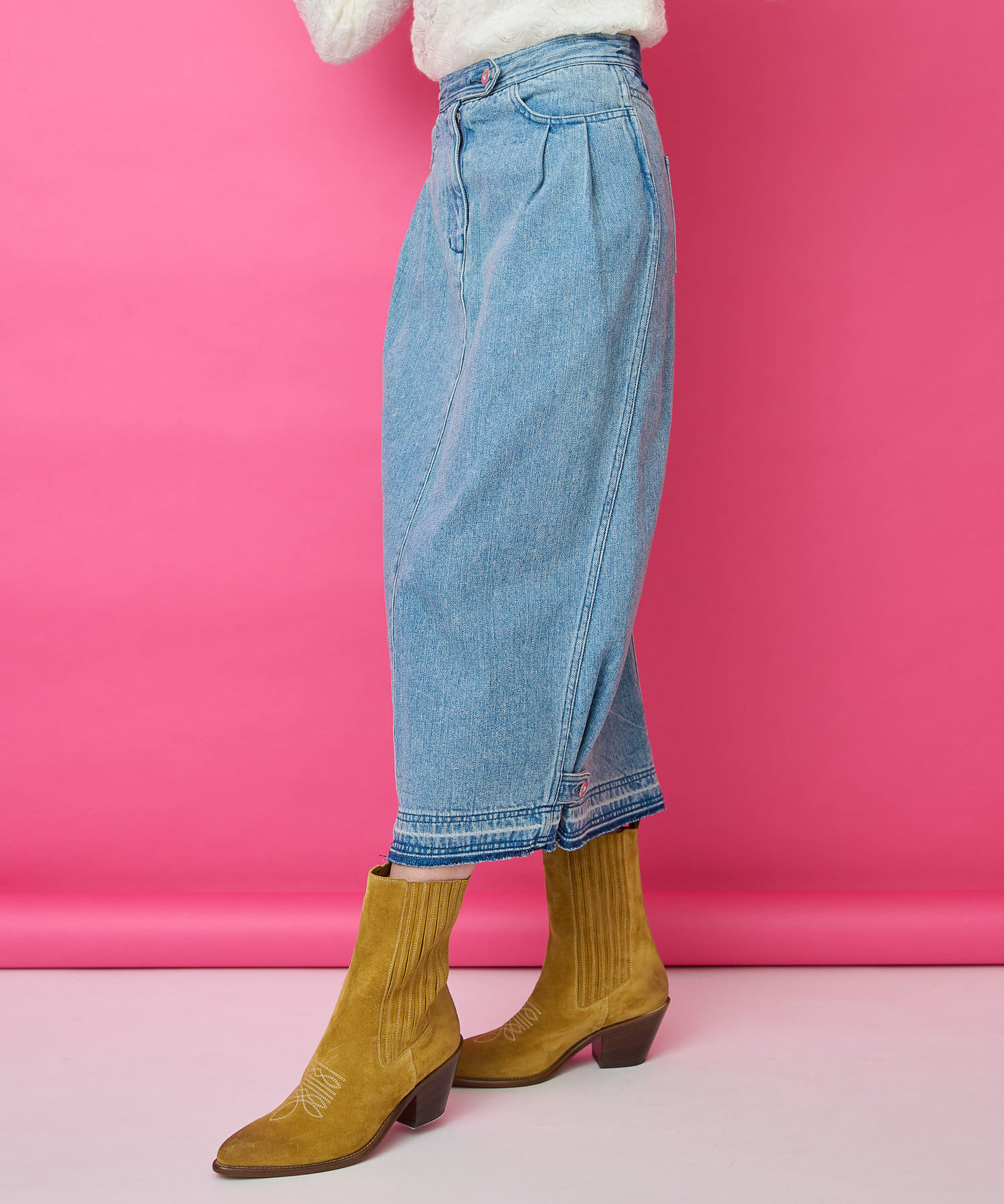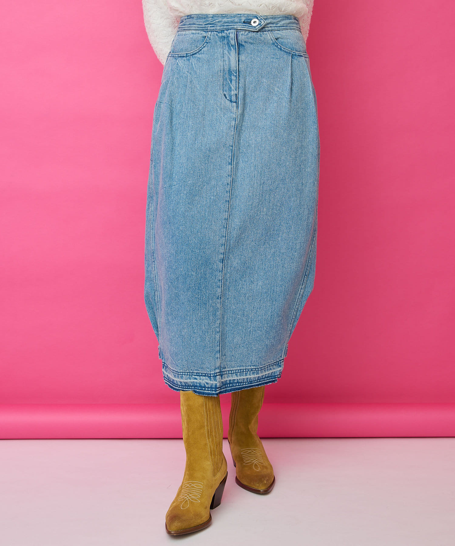 ■ハイブリーチ加工でモードな印象に仕上げたデニムスカート。