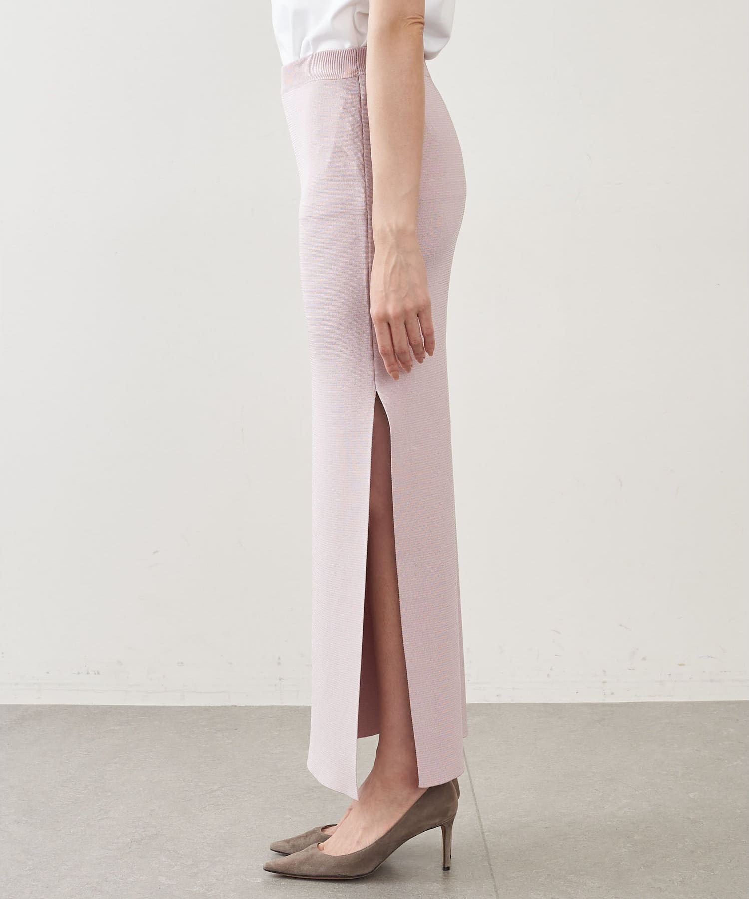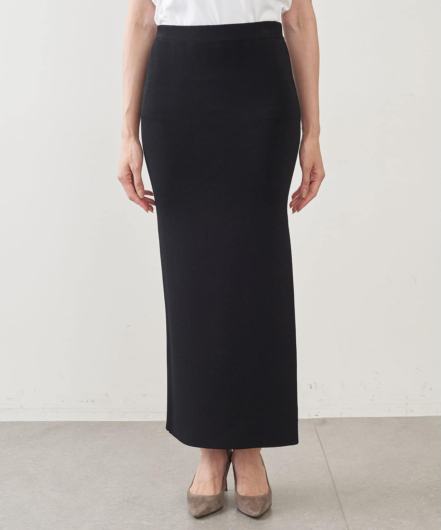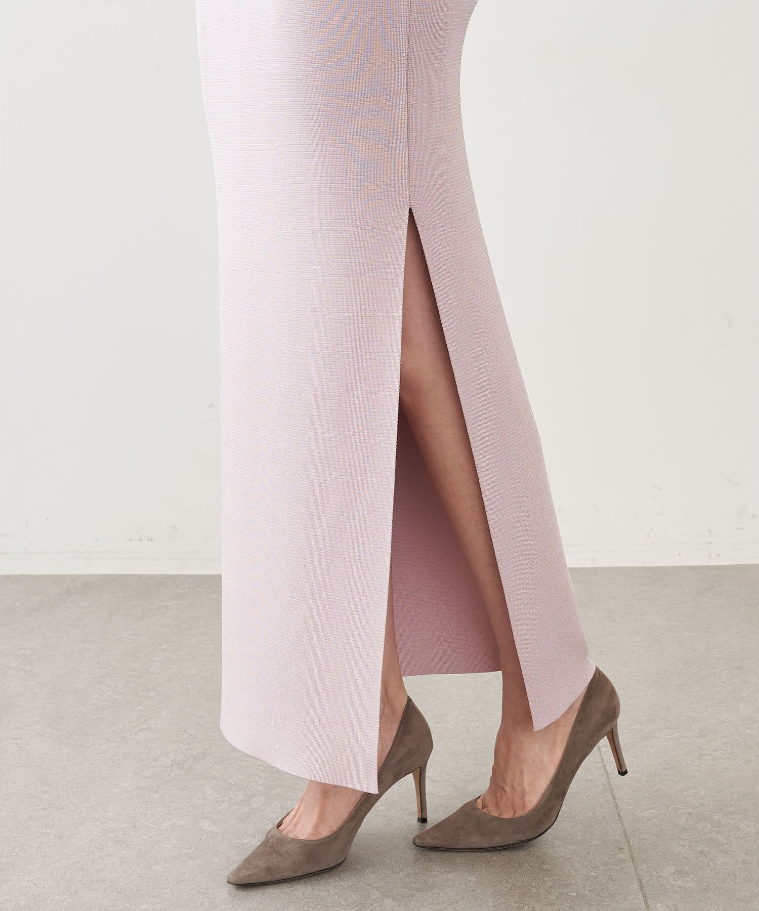 ■深めのスリットデザインが目を惹くニットタイトスカート。