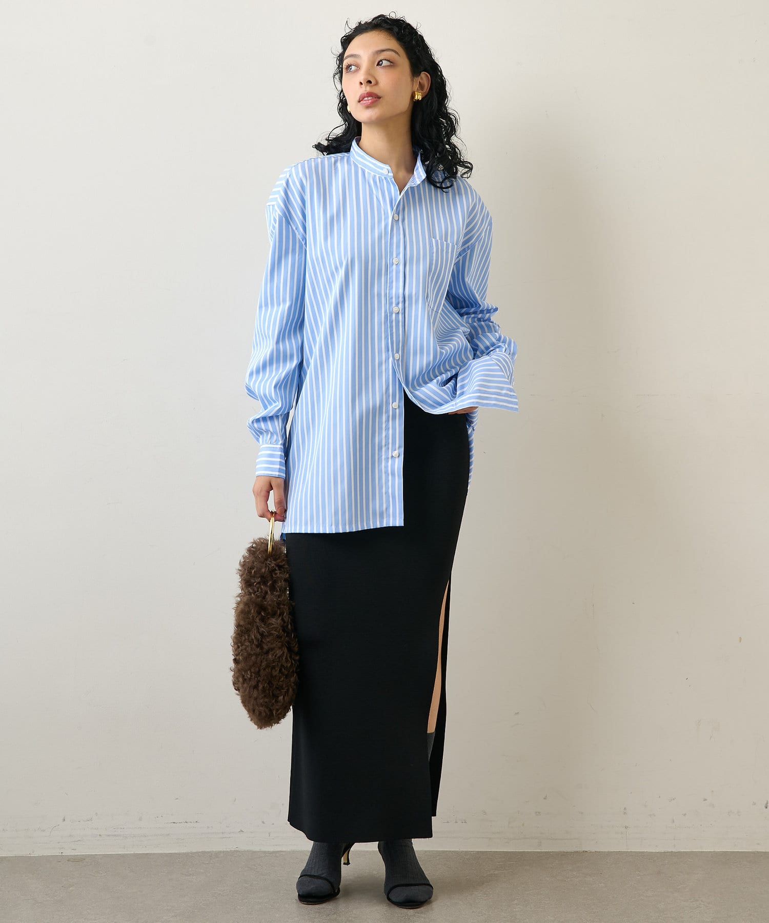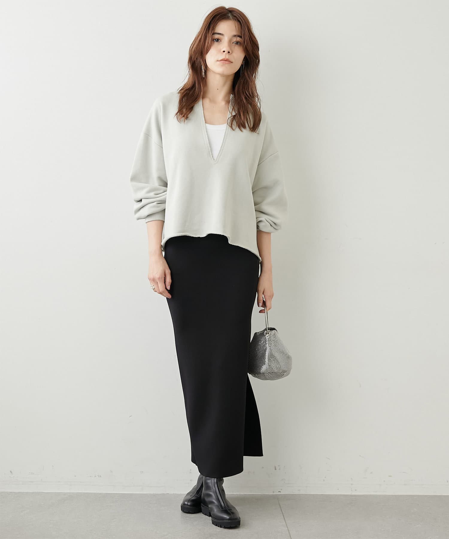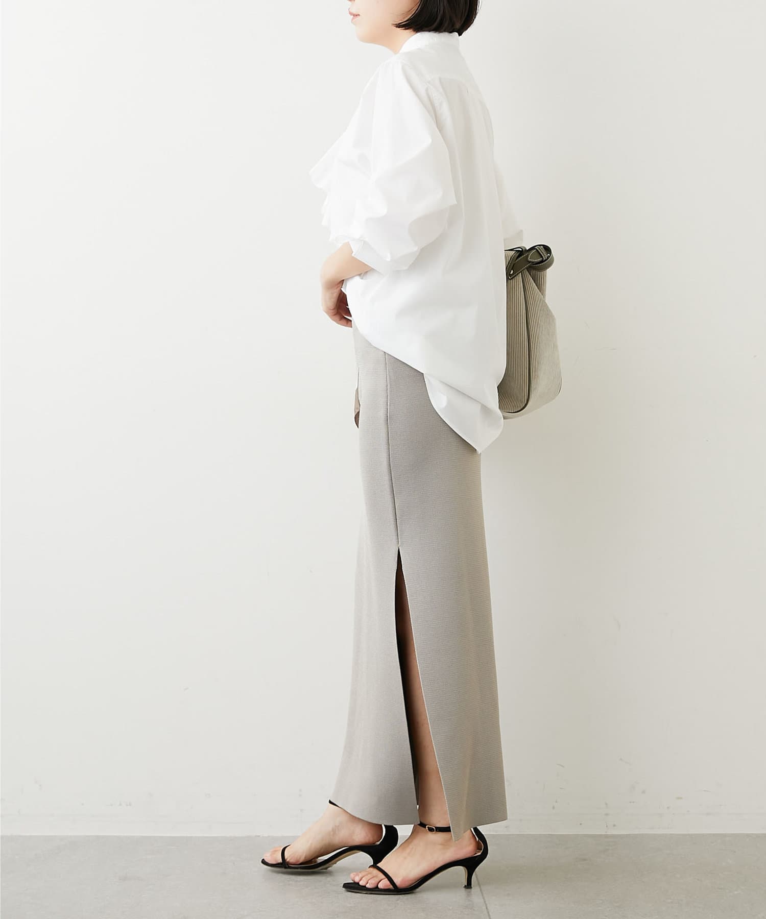 ■深めのスリットデザインが目を惹くニットタイトスカート。