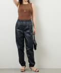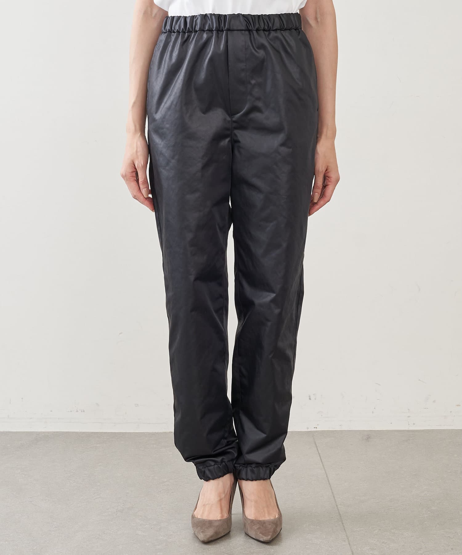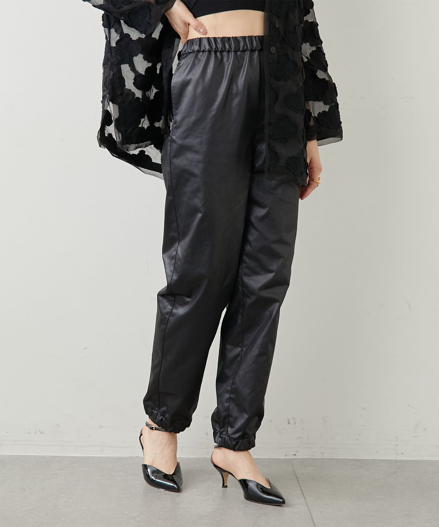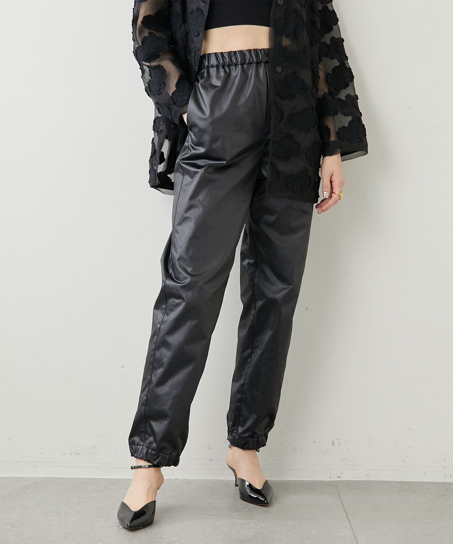 ■本革のような質感のフェイクレザーを使用したジョガーパンツ。
