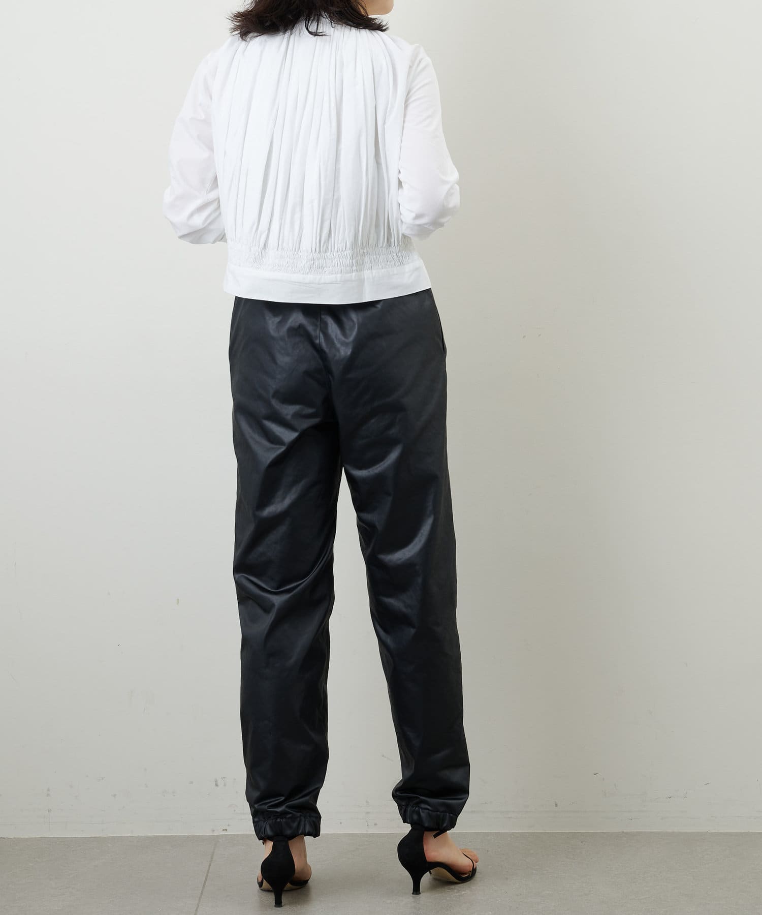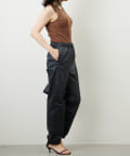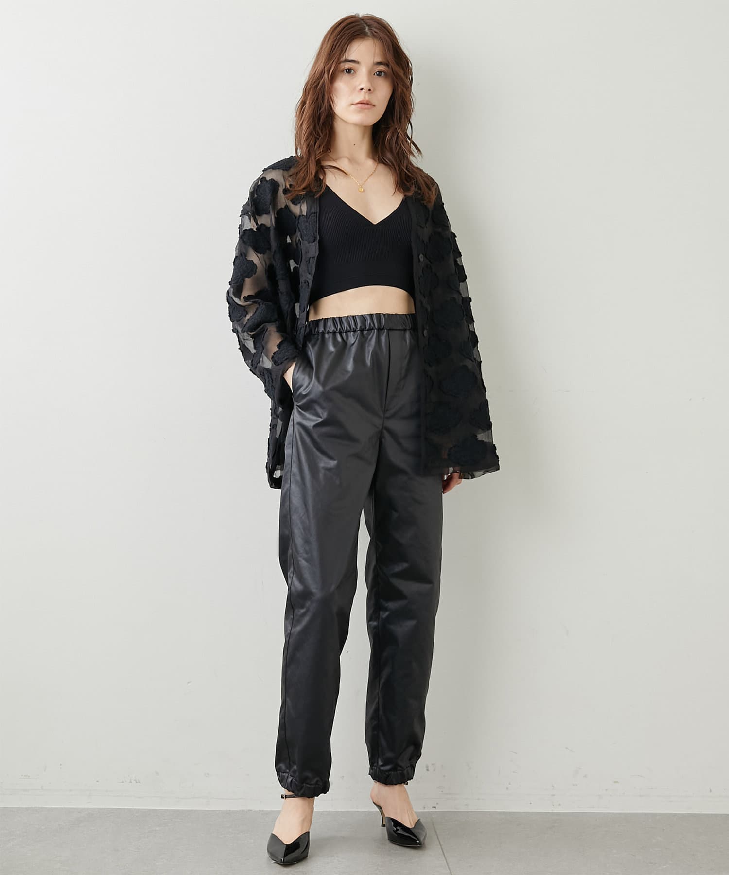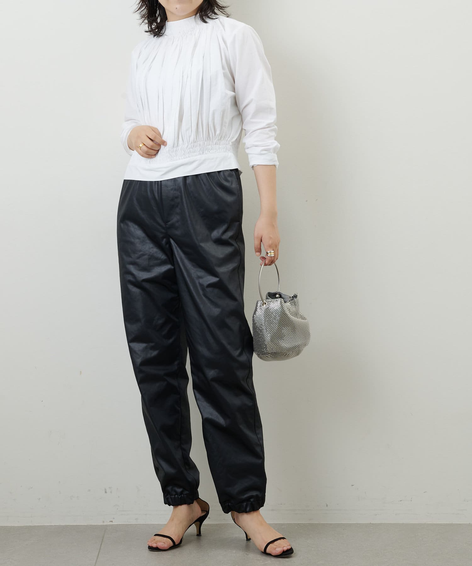■本革のような質感のフェイクレザーを使用したジョガーパンツ。