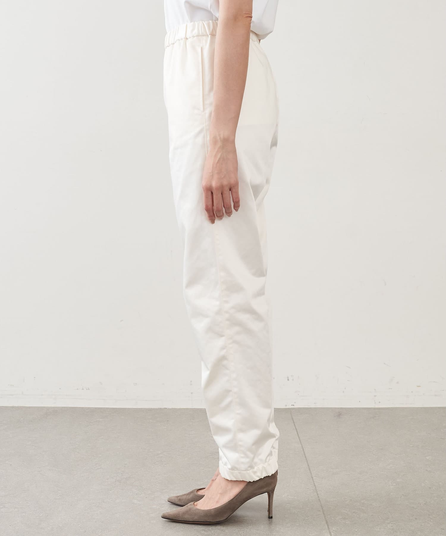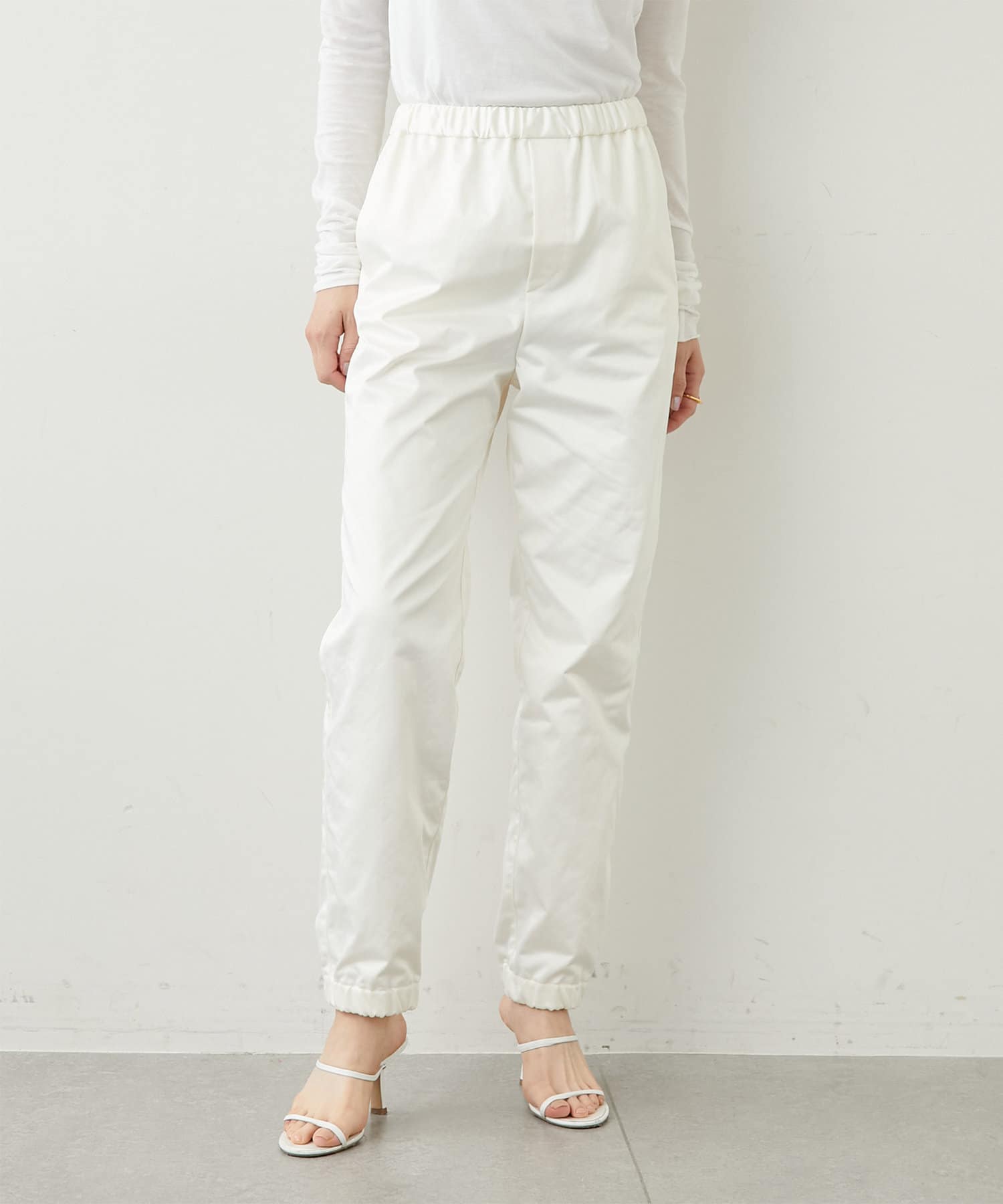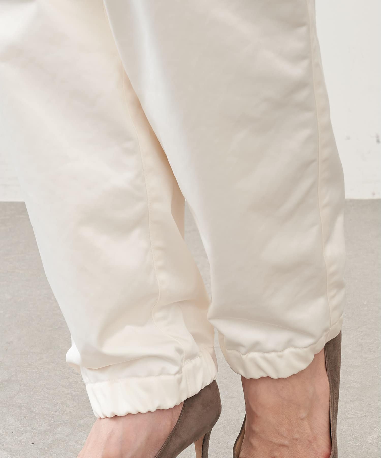 ■ツヤ感のある風合いがシーズンコーデに抜け感をプラスしてくれる、大人のイージーパンツ。
