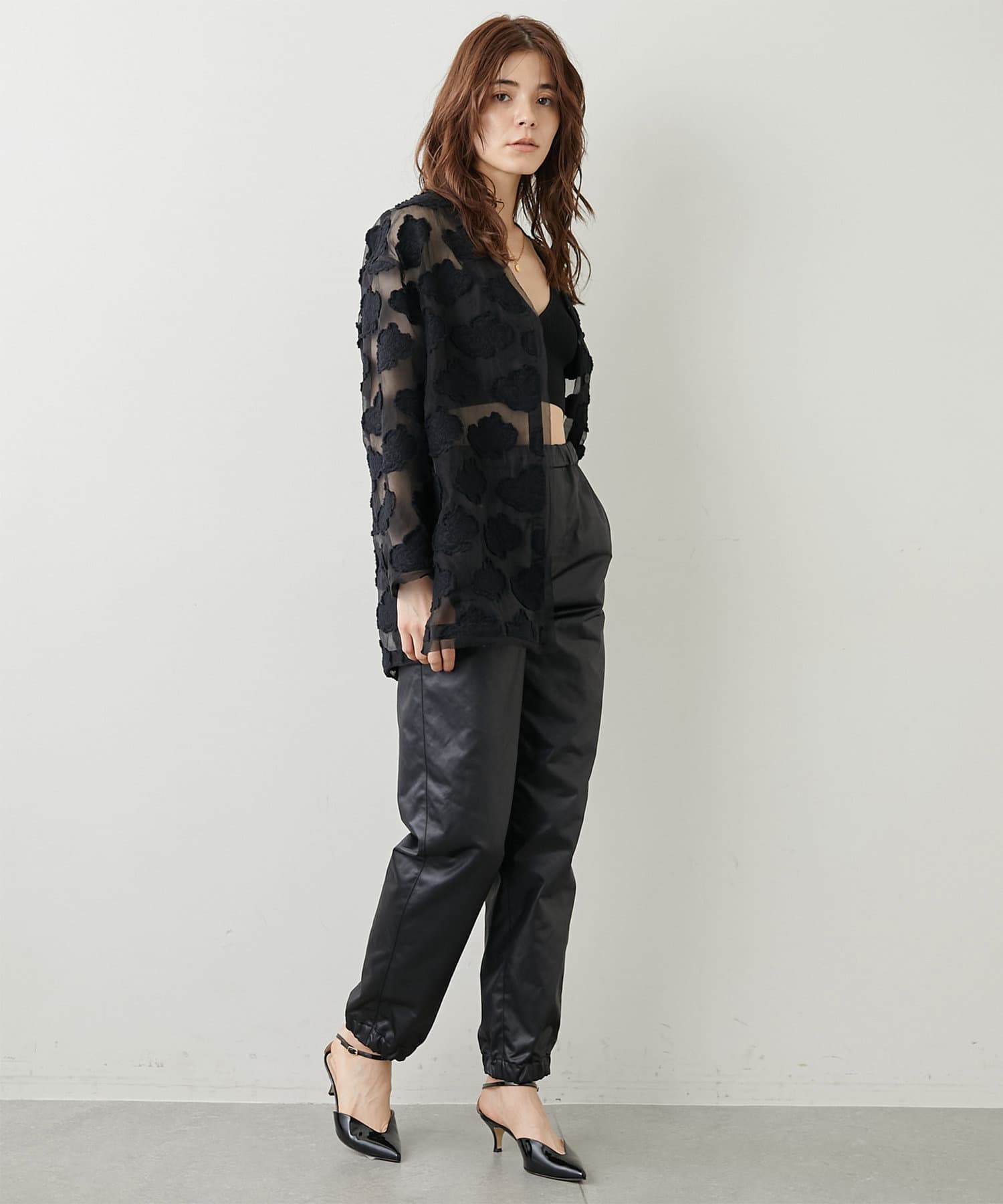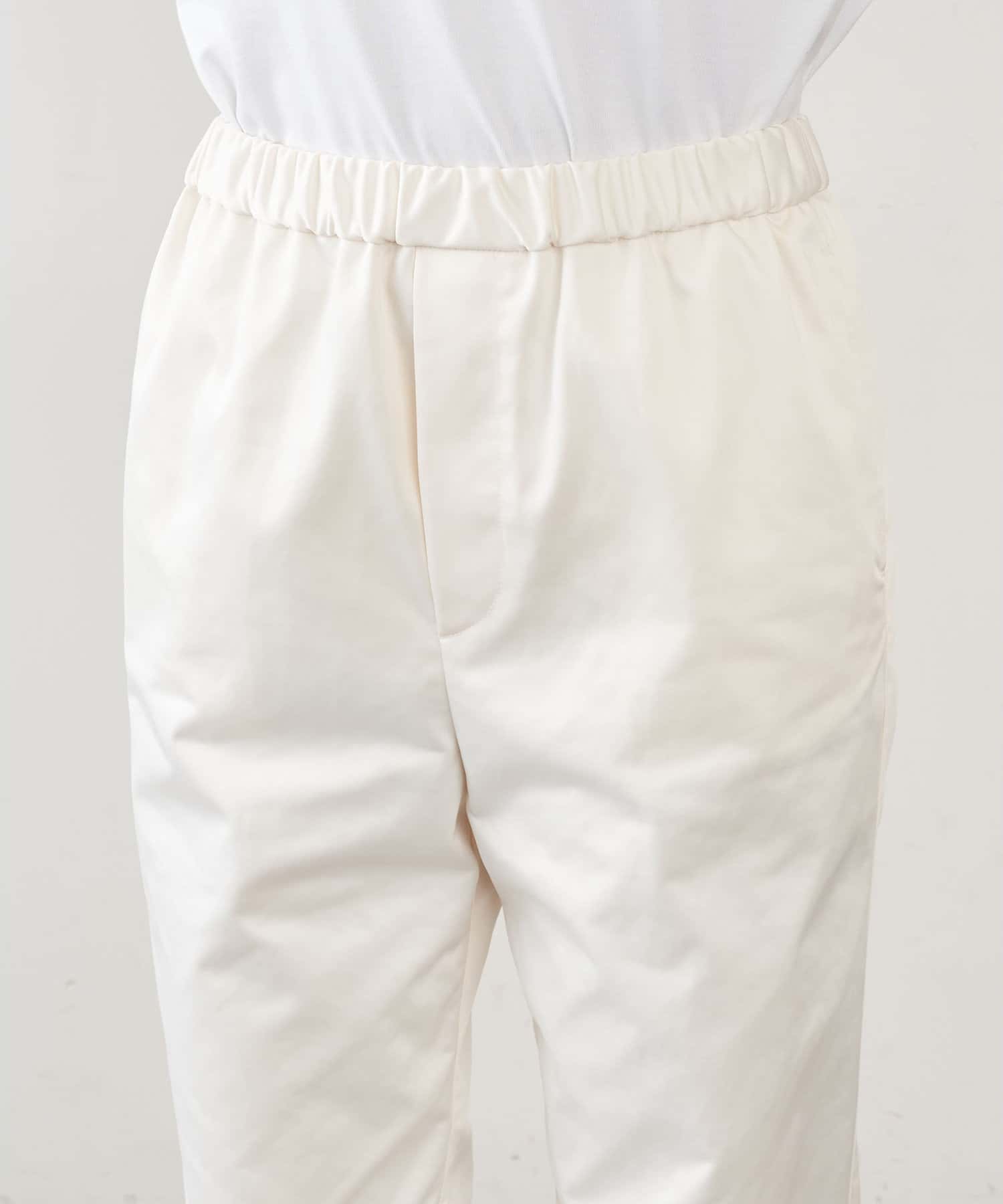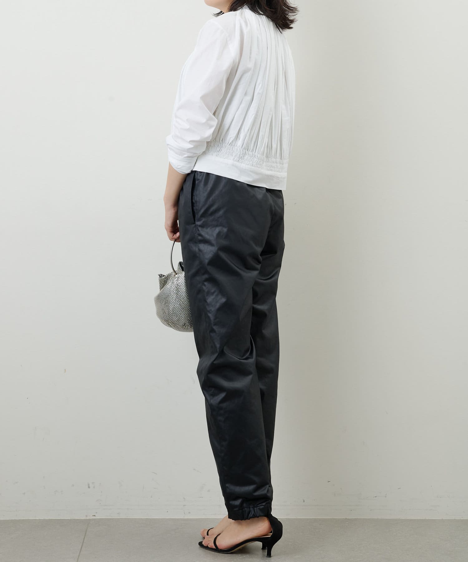 ■ツヤ感のある風合いがシーズンコーデに抜け感をプラスしてくれる、大人のイージーパンツ。