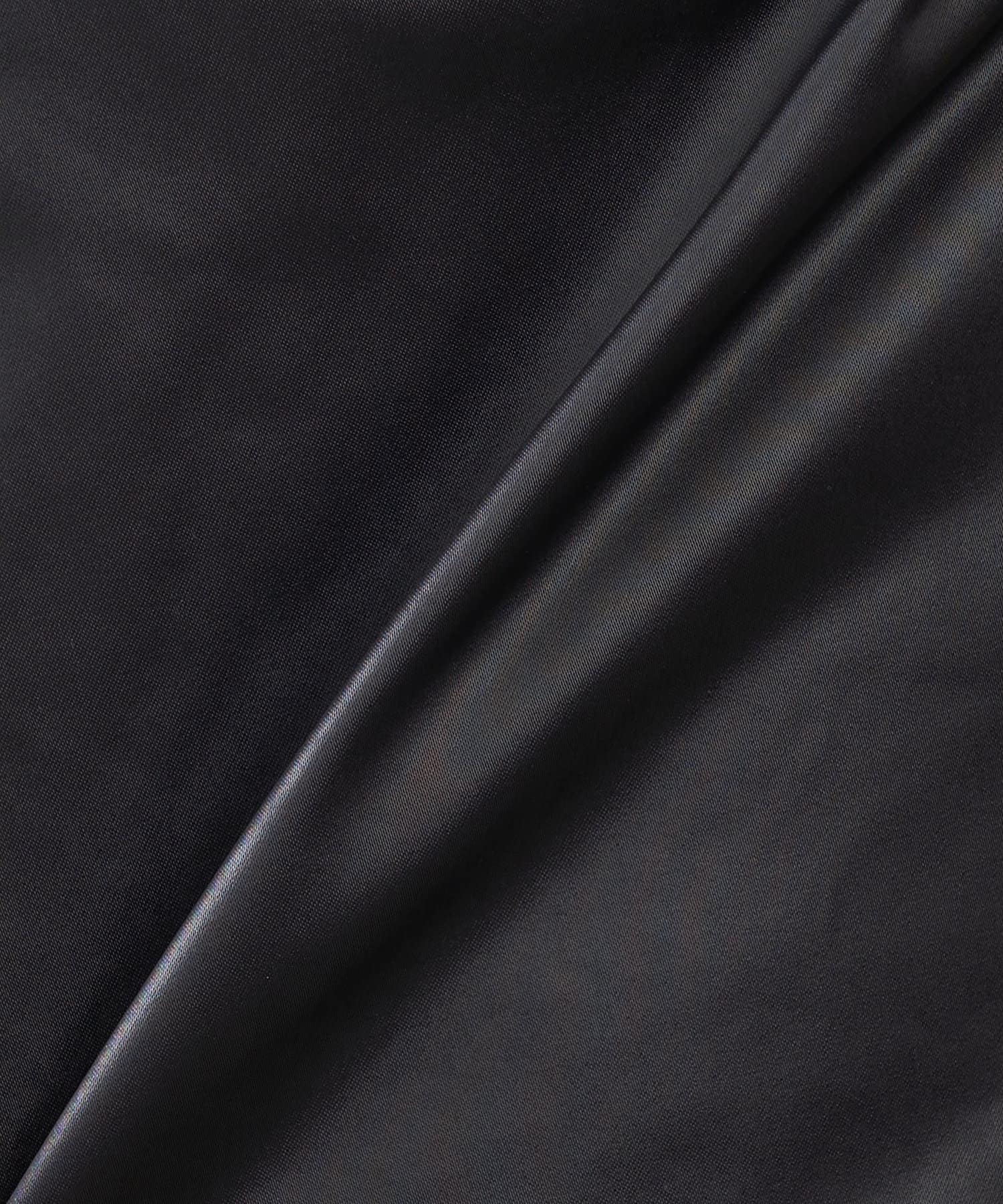 合皮の中でも希少な中肉素材の、撥水加工を施したサテンのフェイクレザー生地。