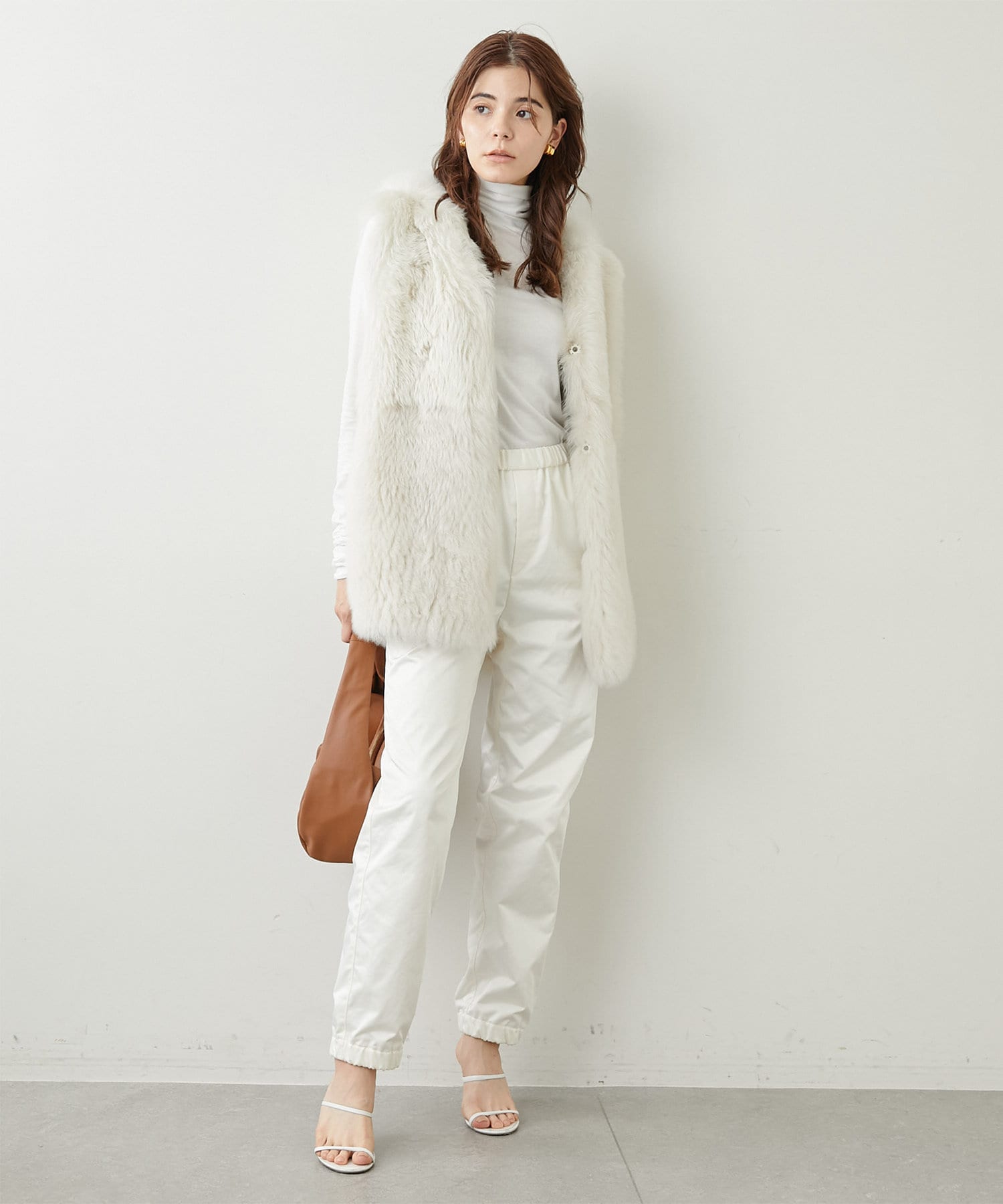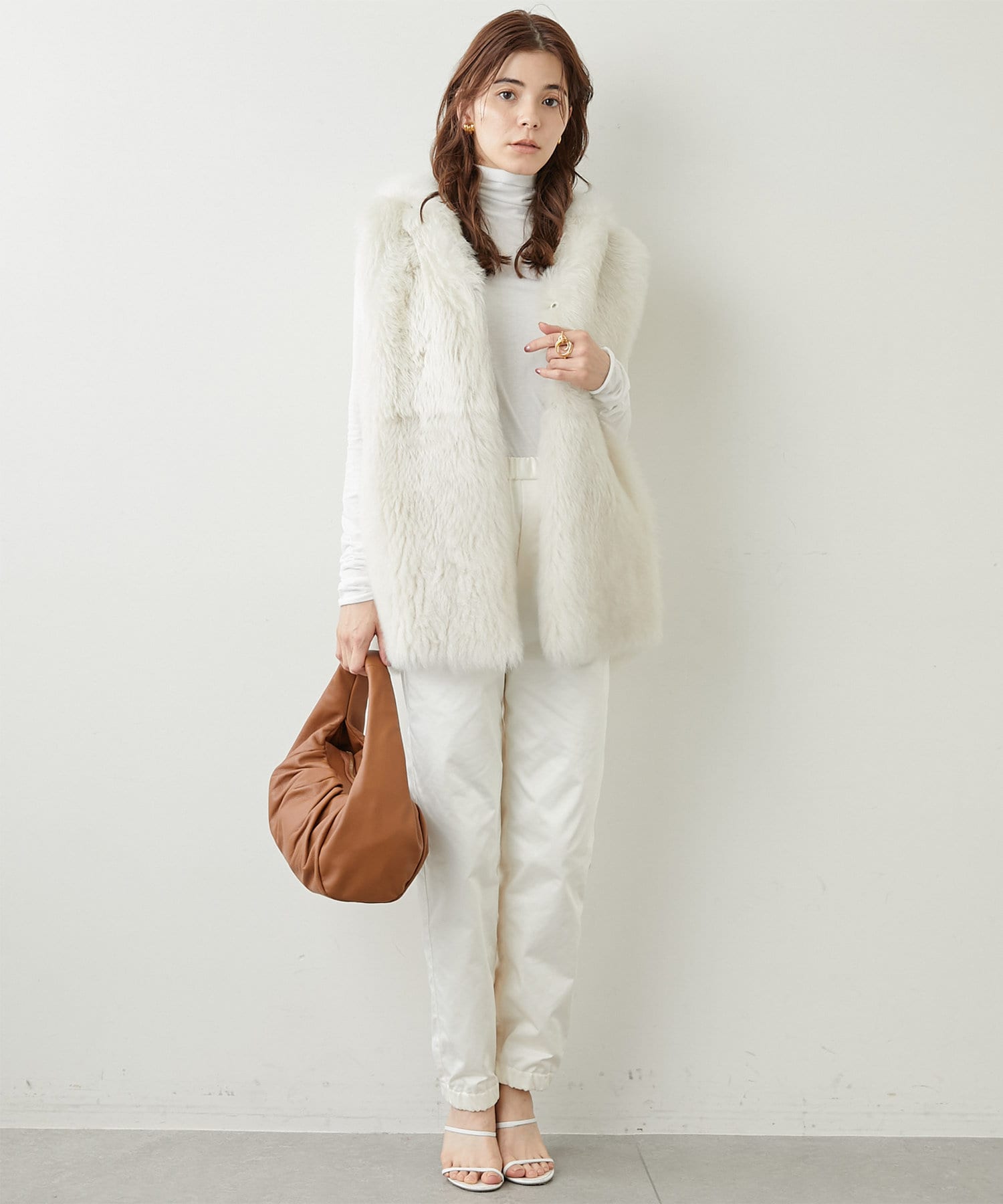 ■セルフケアも可能で気兼ねなく着用でき、毛玉や埃も付きにくくウール系アウターやニットに合わせやすいのもうれしいポイント。