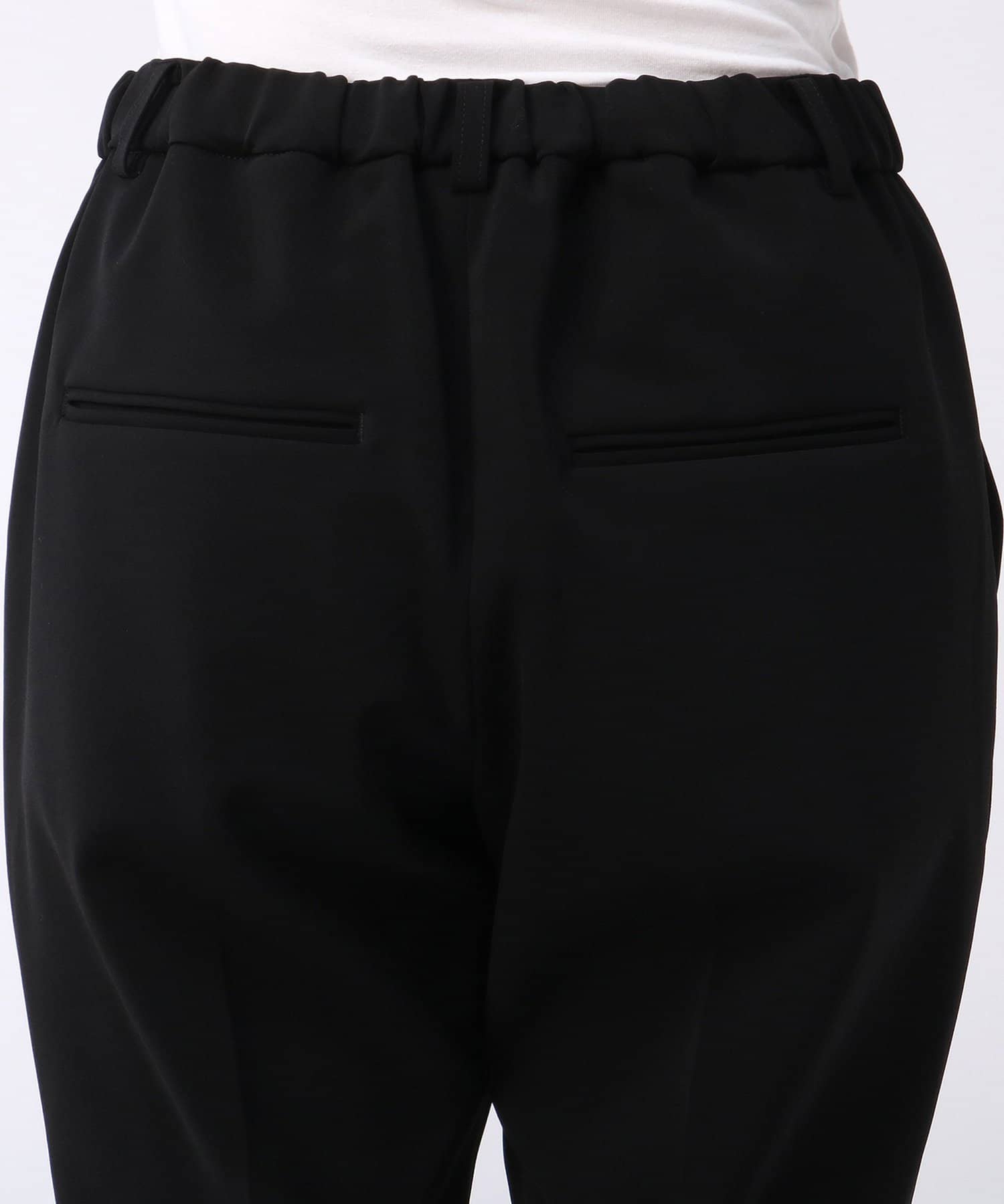 が、腿周りやお尻はモデル画像の様に余裕はなくて、ピッタリ!て感じです。でも決して醜くはないですよ。それがこのパンツの優秀なところでしょうか。お尻隠れる丈のブラウスなどと合わせるつもりだったので問題なしです。