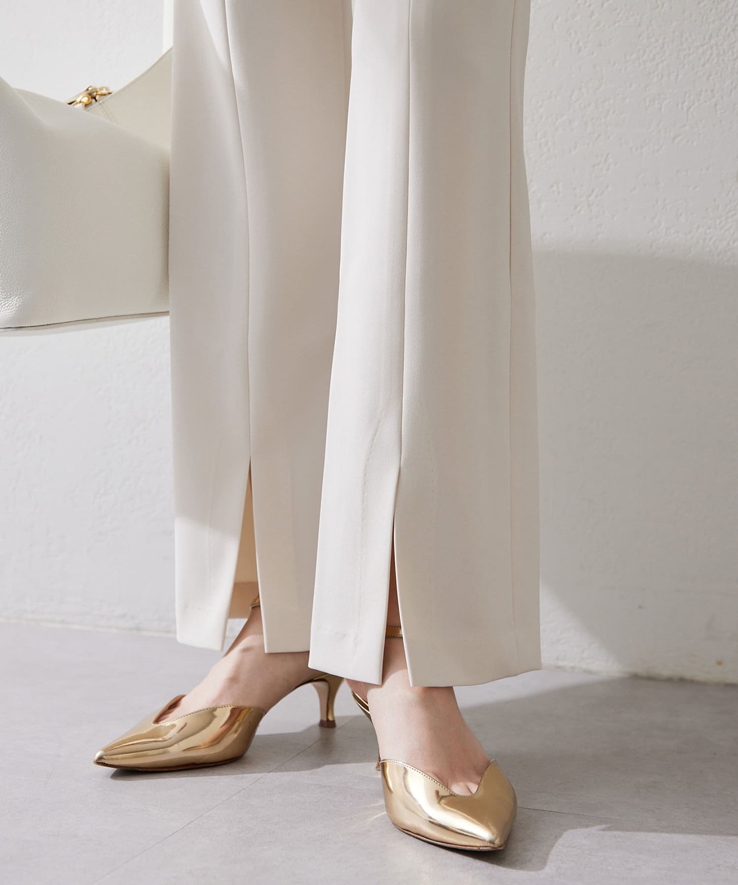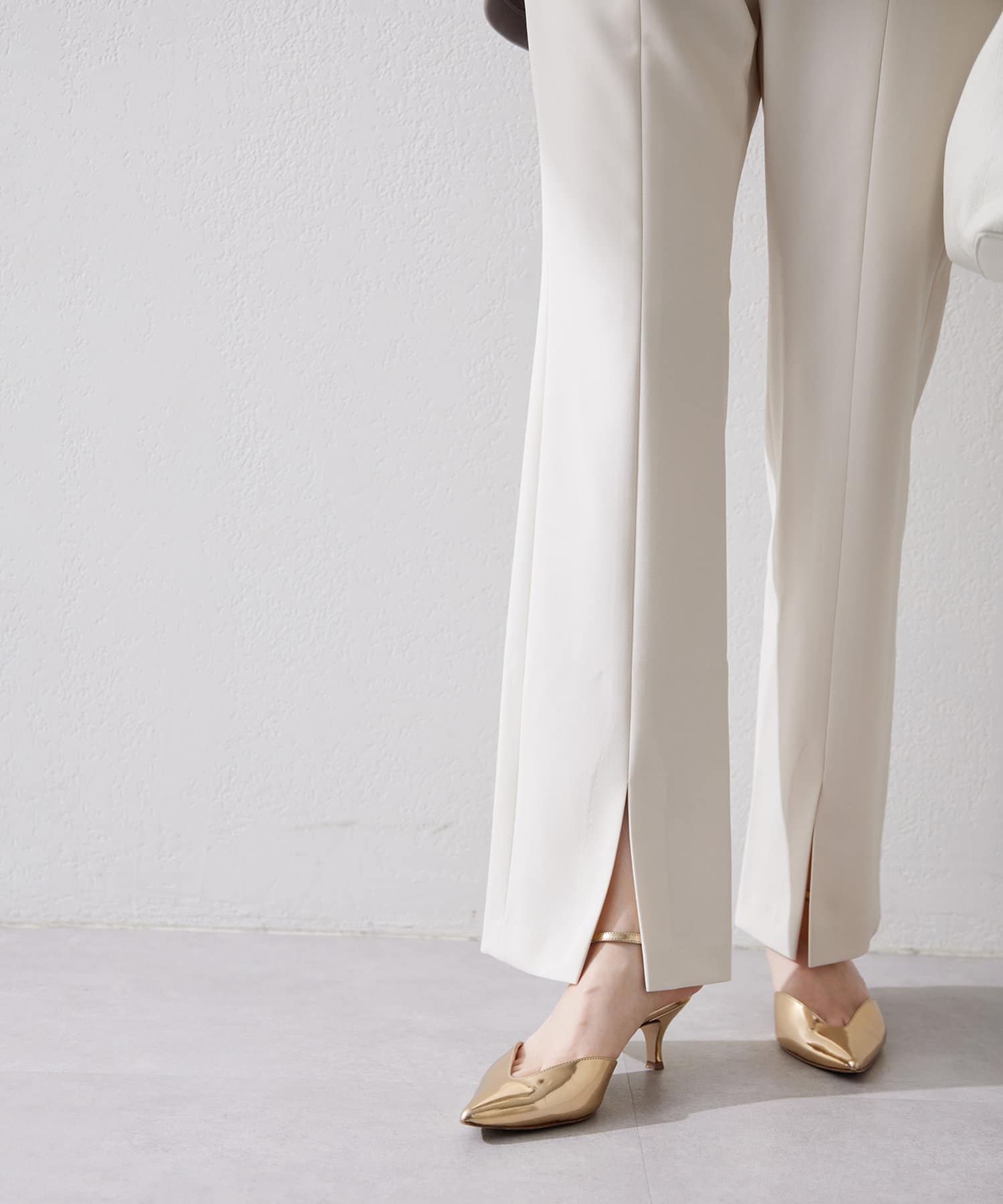 ■スリット部分から素足が覗くことで足元に軽さと抜け感をプラス。