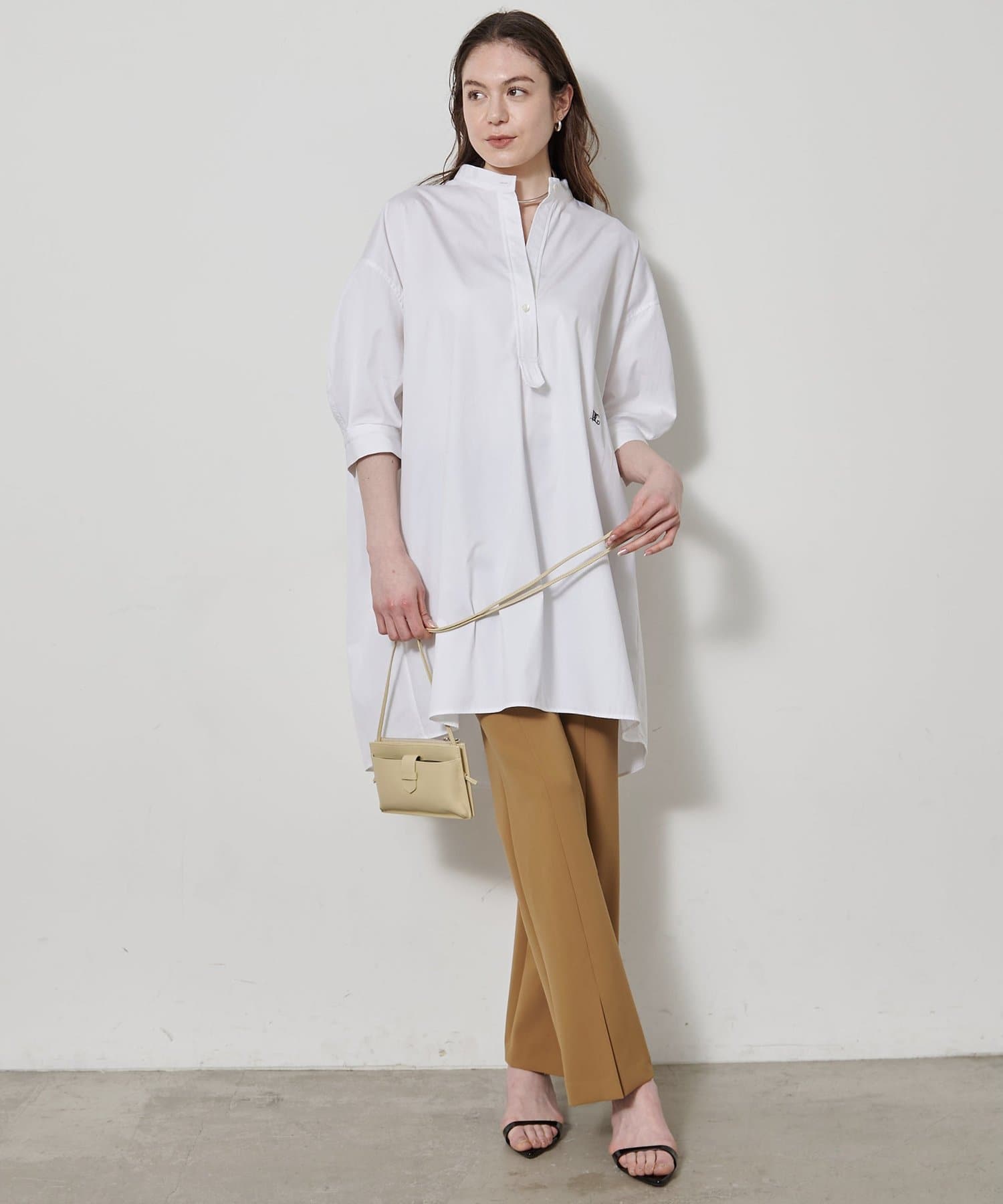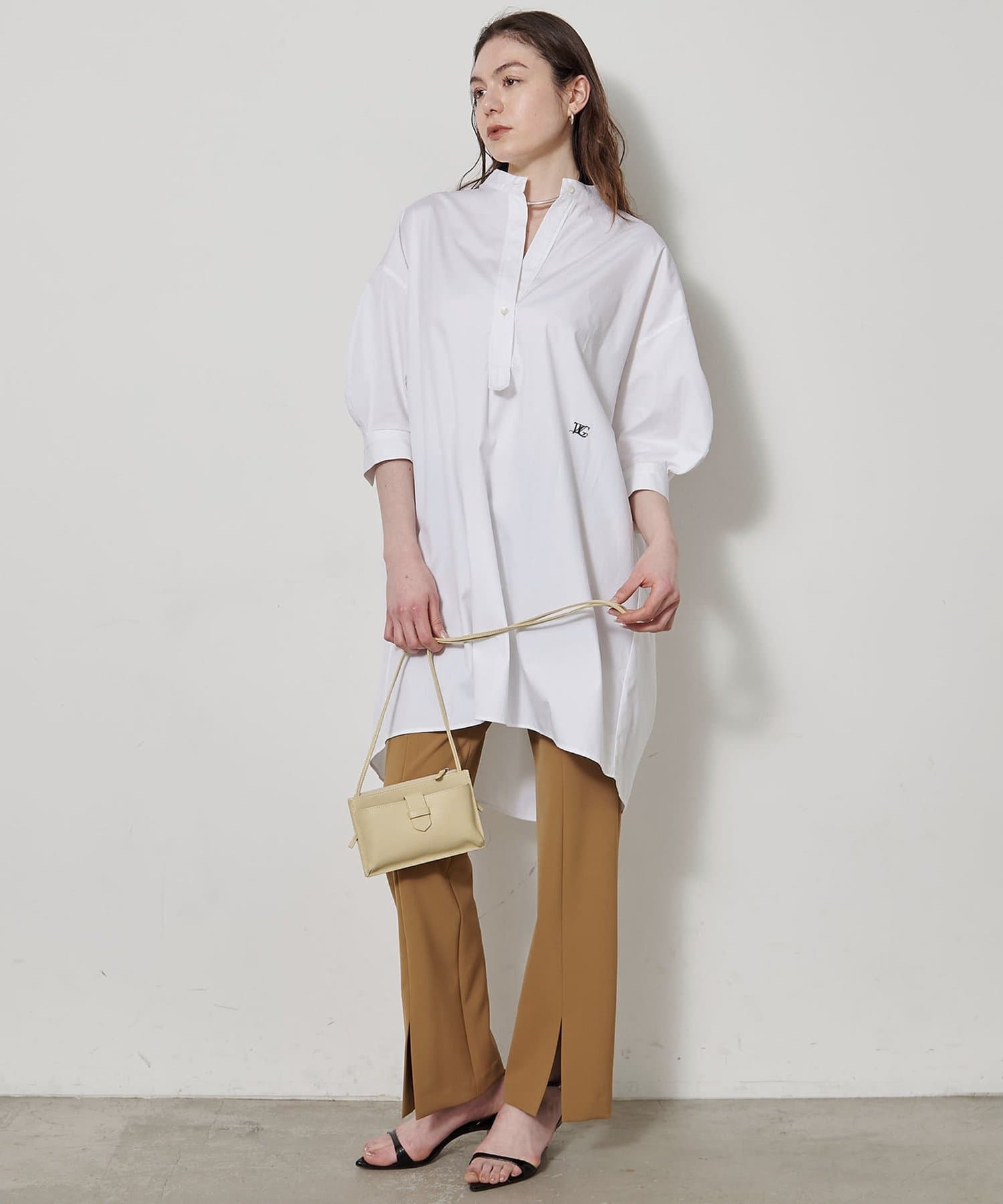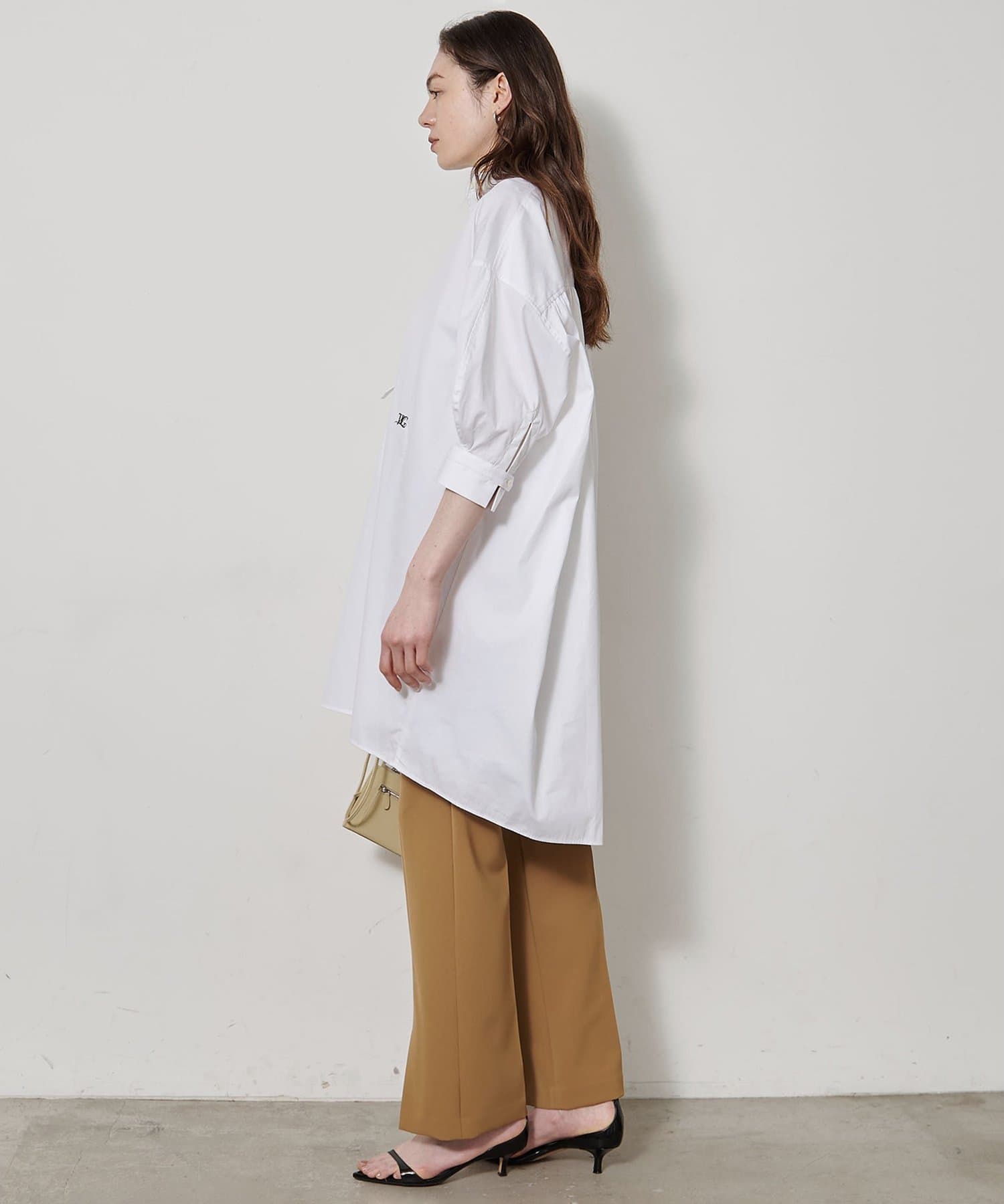 購入場所:店舗ボトムスは黒が多いので、今回は白を選びました。いつもはワイドパンツを好んではきますが、これはとても足が細く見えるので、久々にこのタイプを買いました。尚、店舗で丈上げをお願いしましたが、お代は2600円(税込み)でした。157cmで裾上げ(4.5cmほど)&スリット調整もしました。