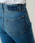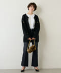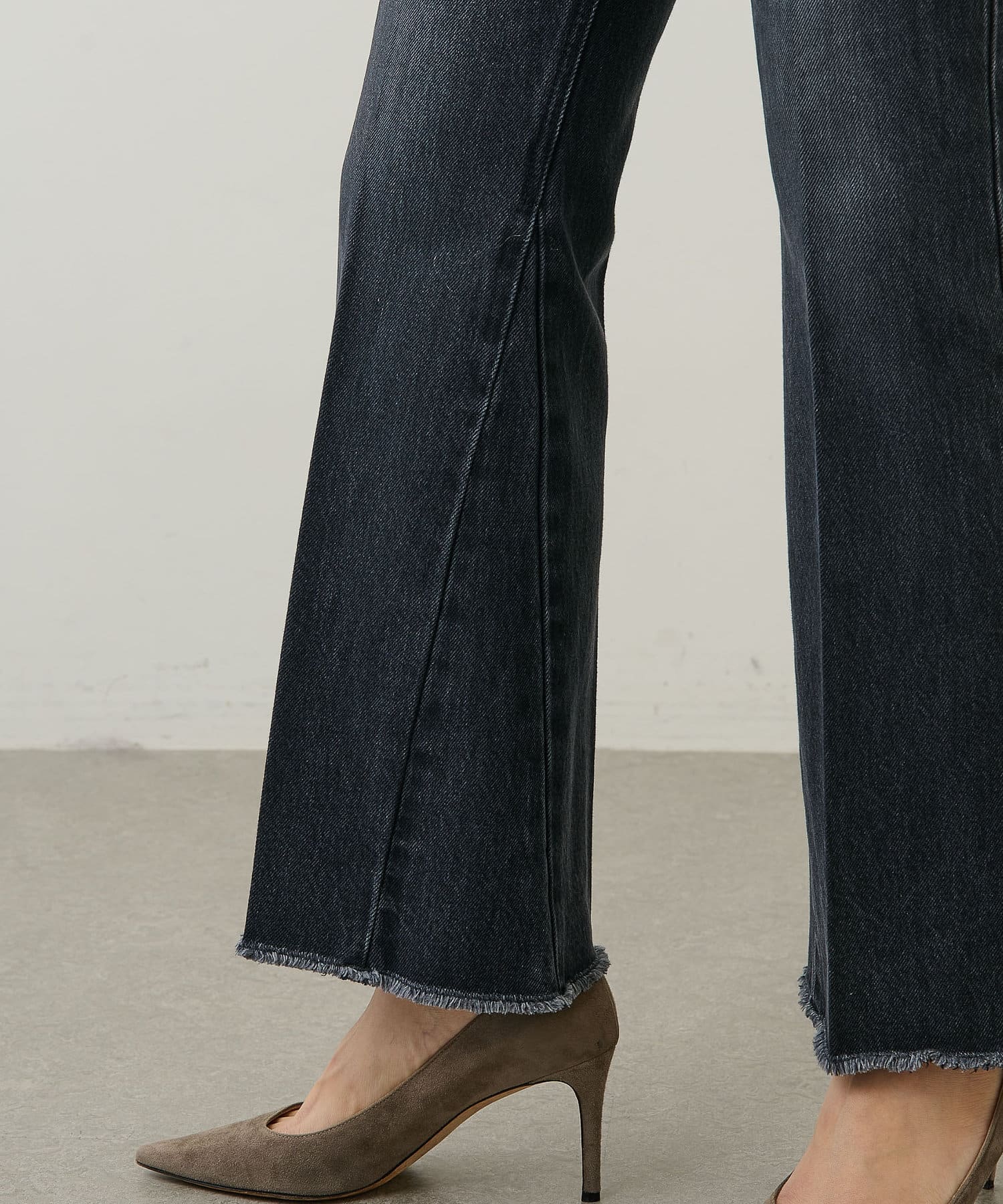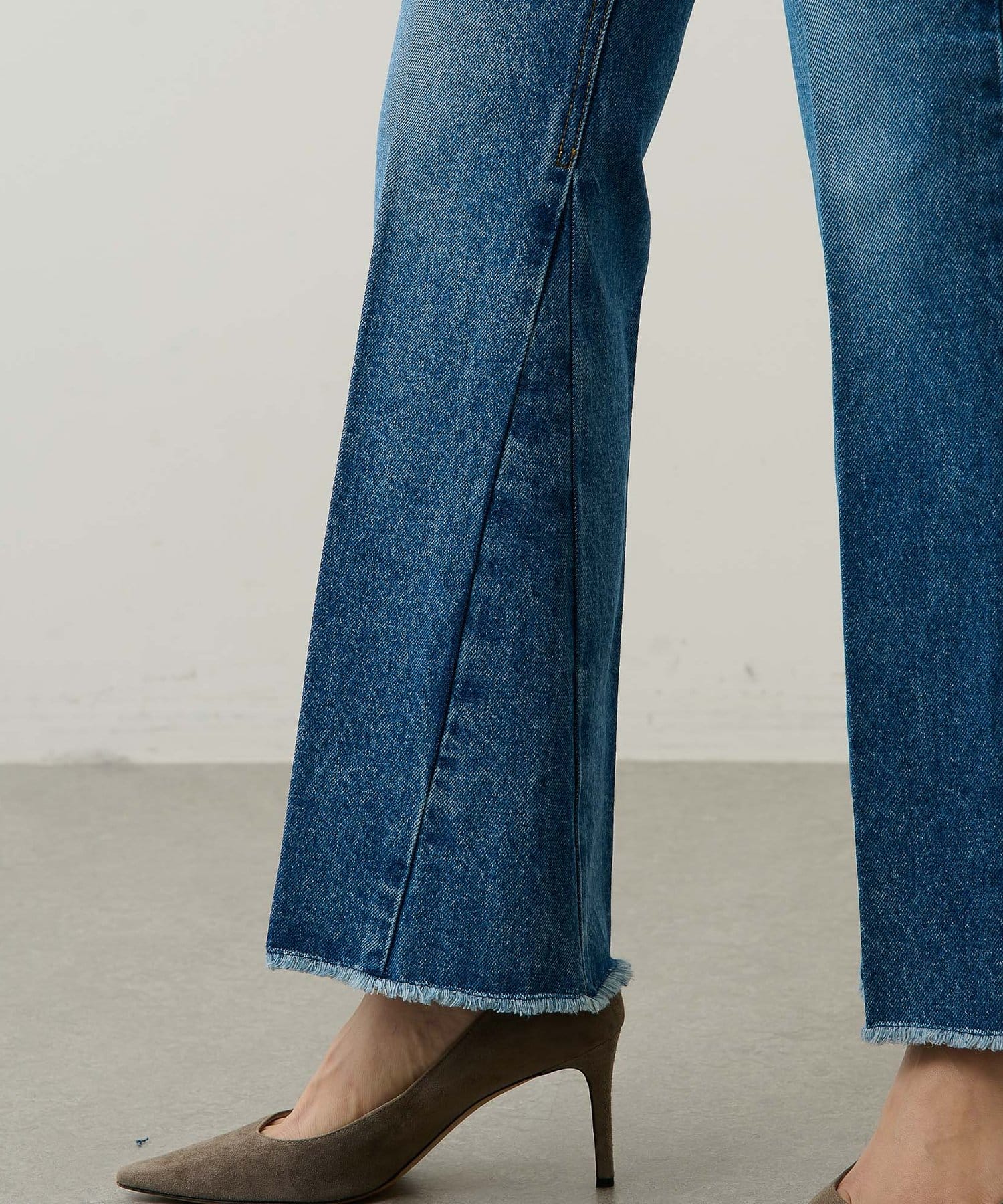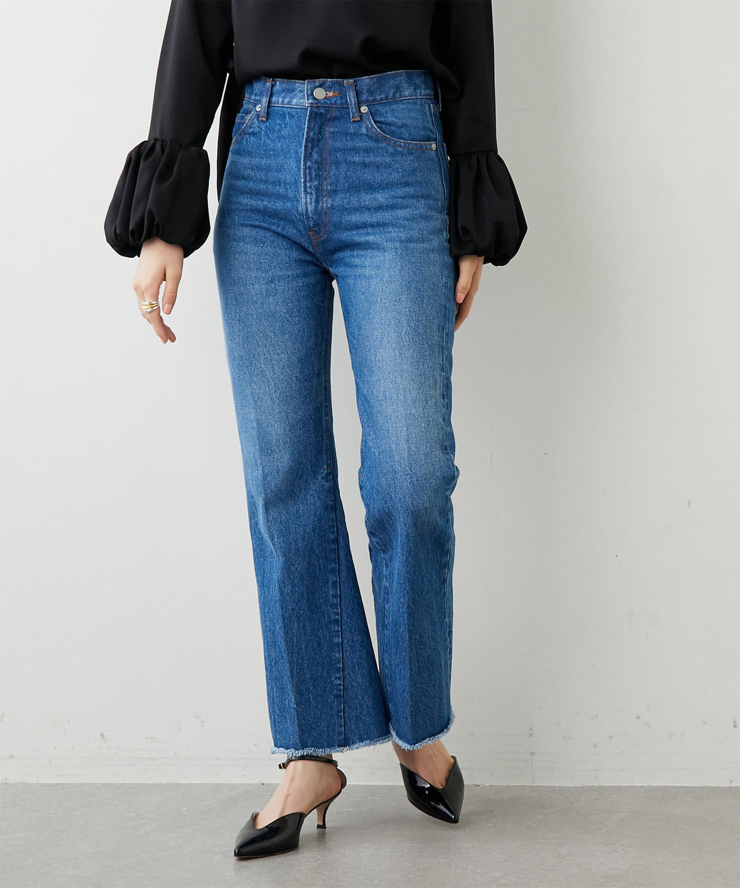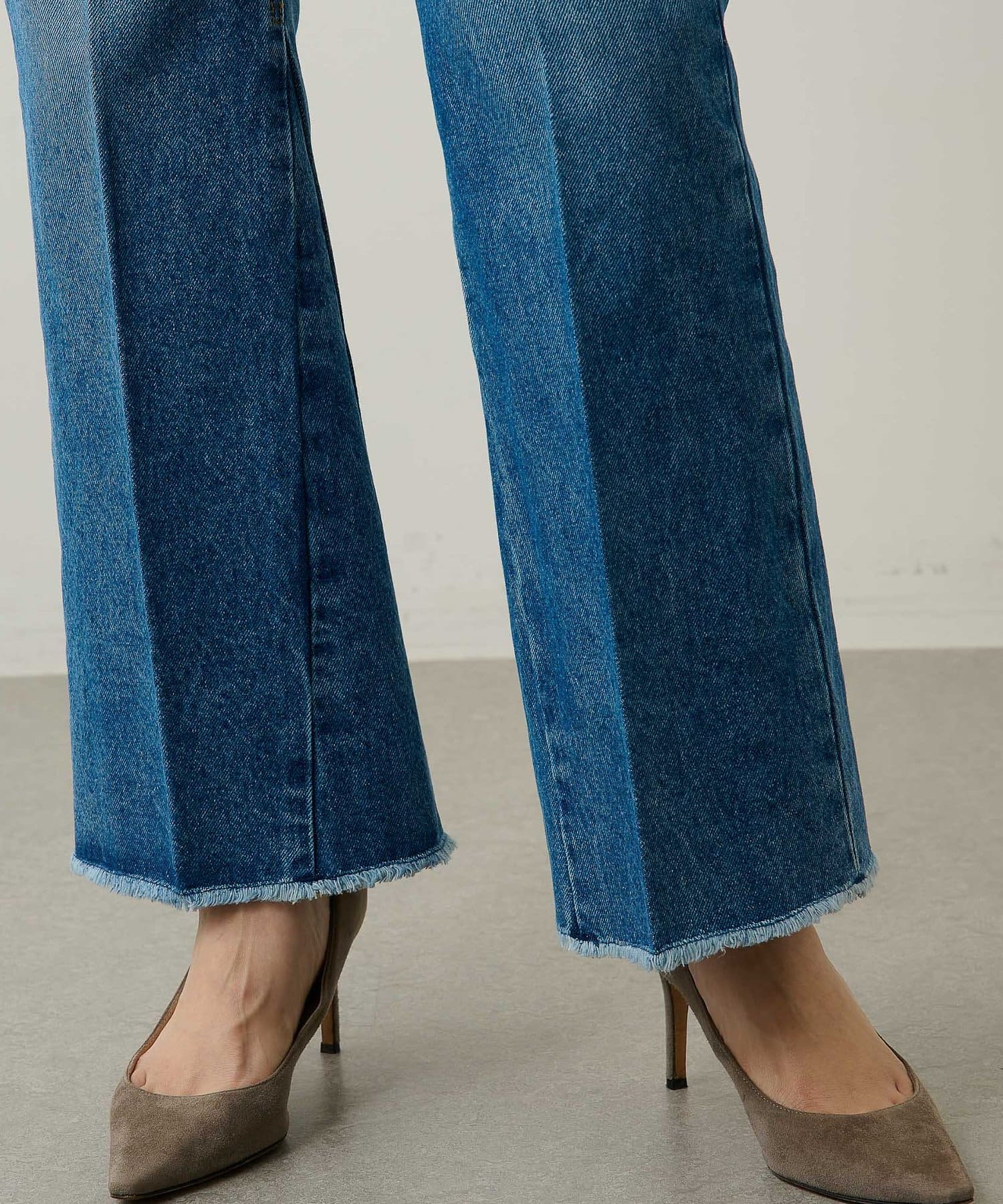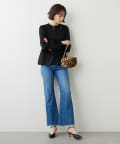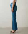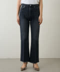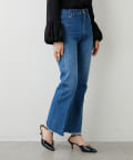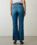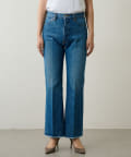 ■足元にワンポイントの切替を施したフレアシルエットのデニムパンツ。